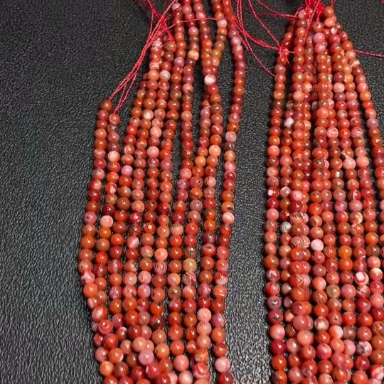 South Red Agate Bead Necklace with Visible Organic Matter, Total Weight Approx. 106.61g, Sell as a Lot