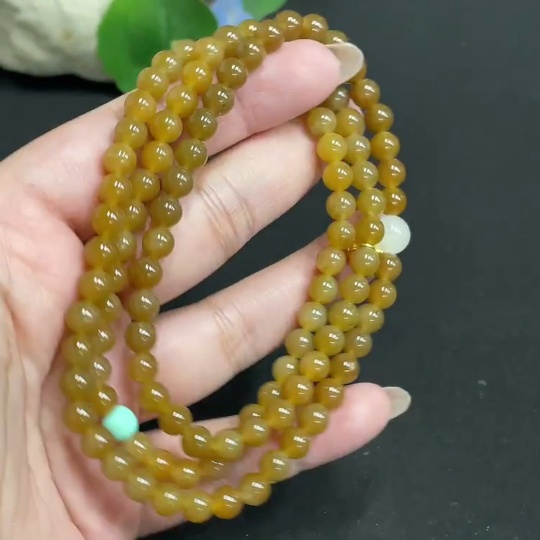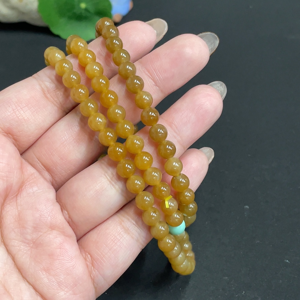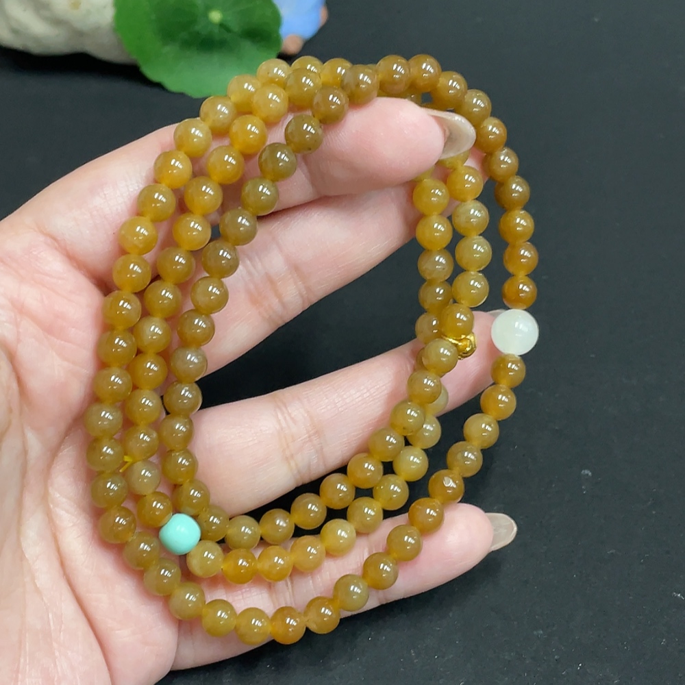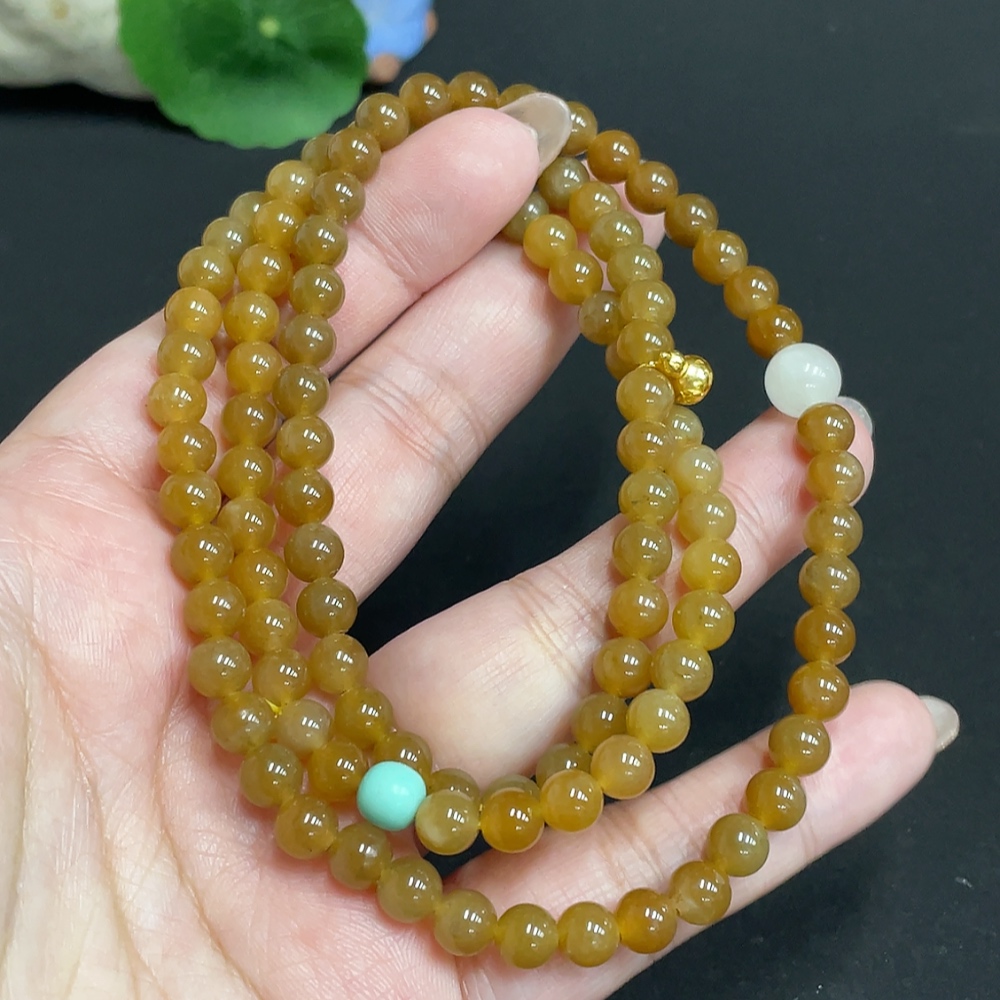 Hetian Jade Bead Necklace, Approx. 6mm, Total Weight About 39.6g, Gold Content 99%, Non-Hetian Jade Beads Included