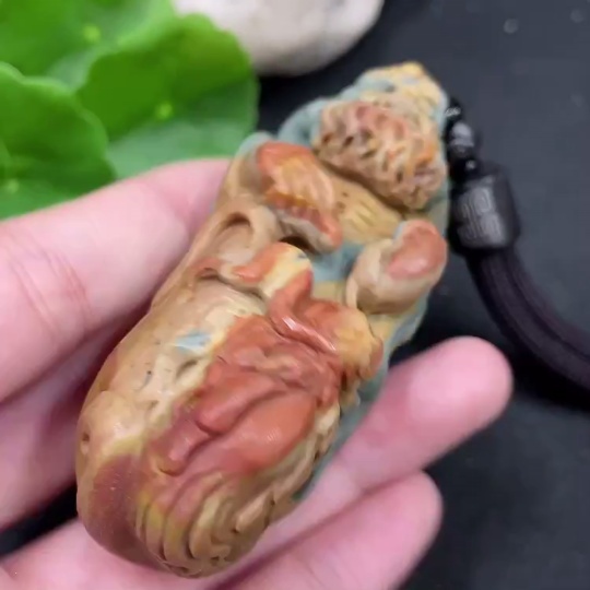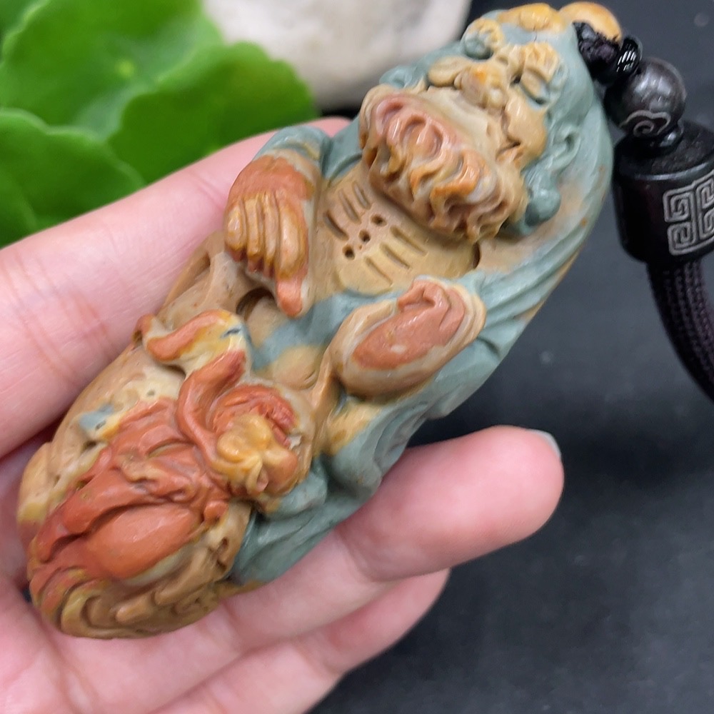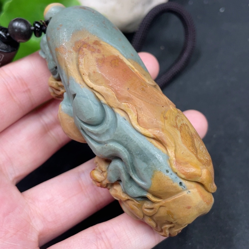 Alashan Agate Handheld Piece, Dharma, with Other Mineral Components, Total Weight Approximately (Including Rope) 115g