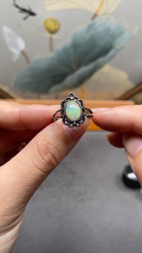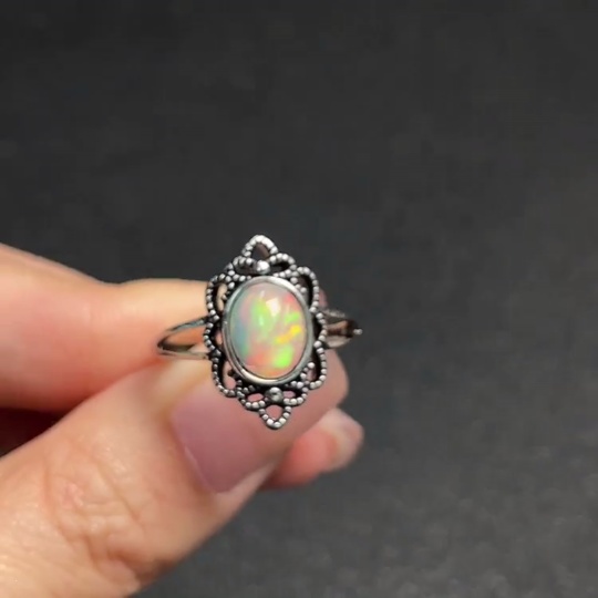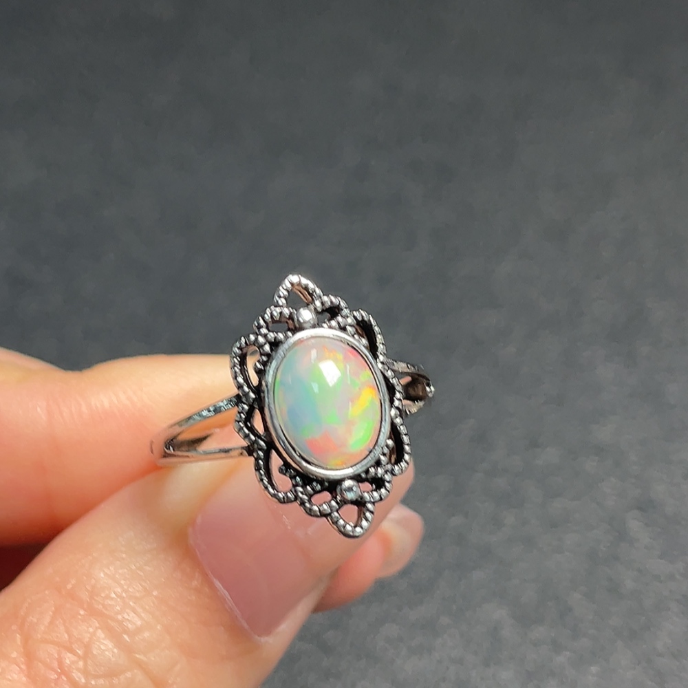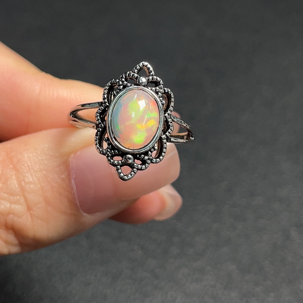 Opal ring, adjustable non-gold, total weight approximately 2.41g