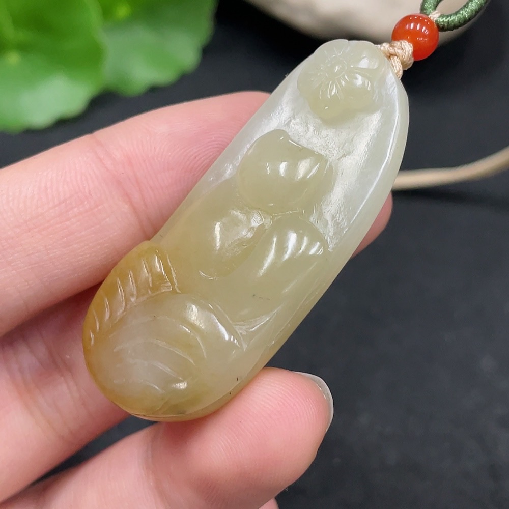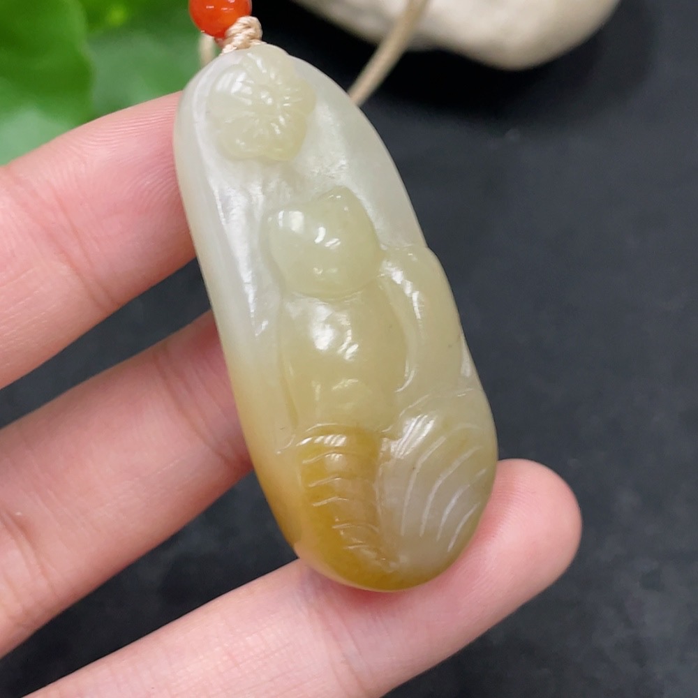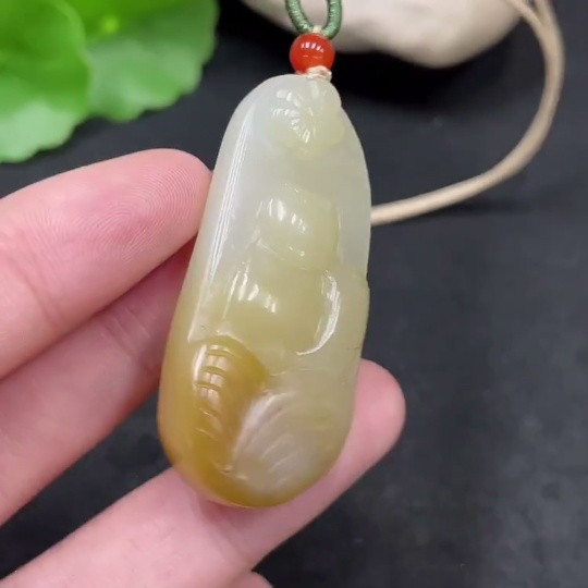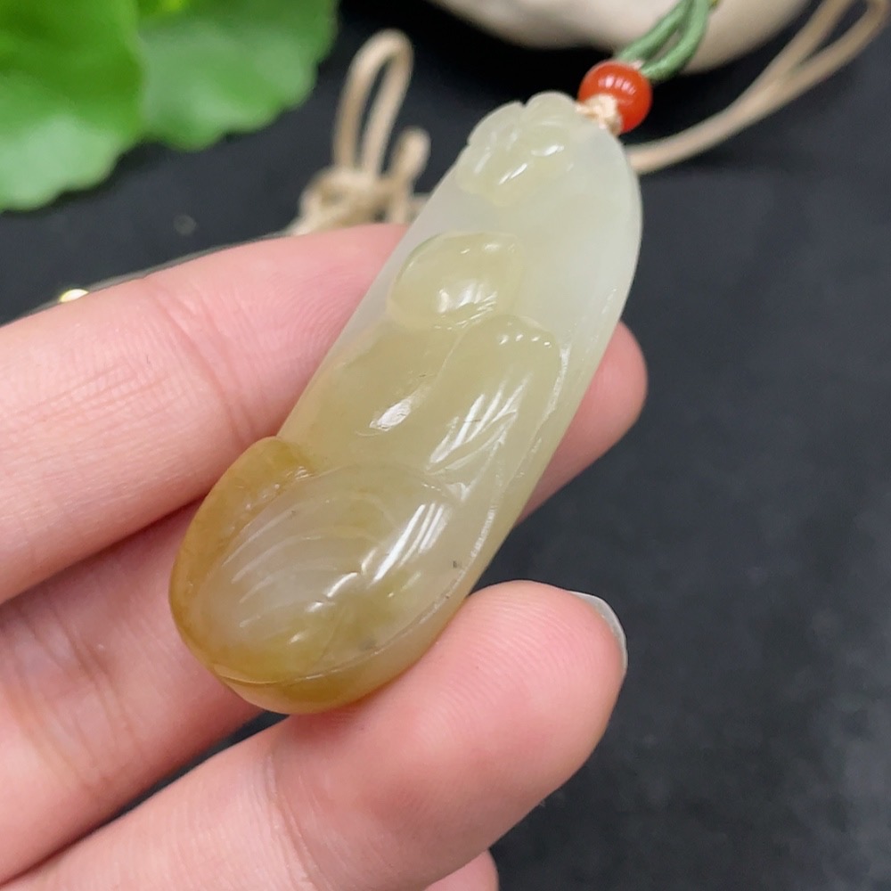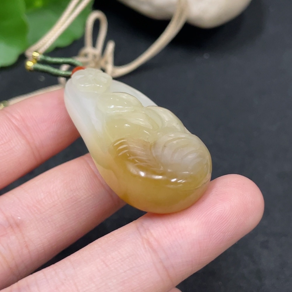 Hetian Jade Pendant Cat with Non-Hetian Jade Beads Total Weight Approx. 17.6g (Including Rope)