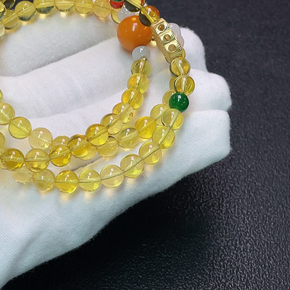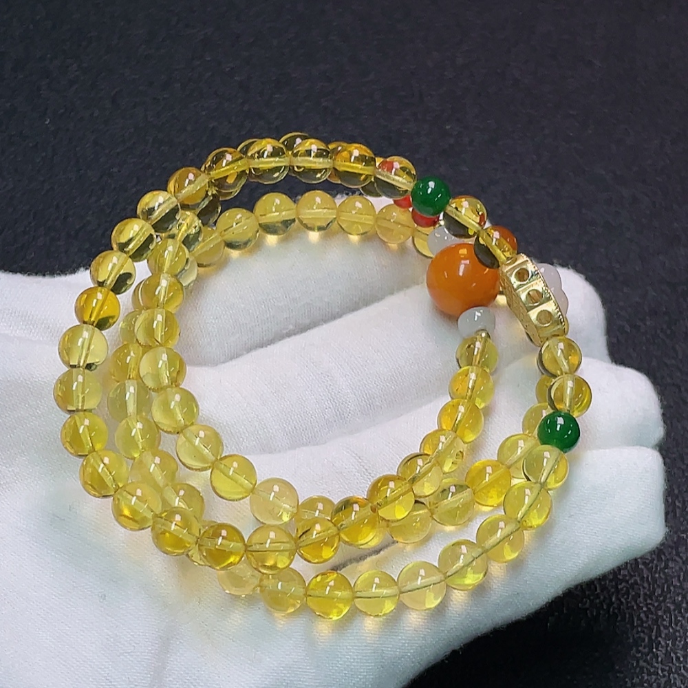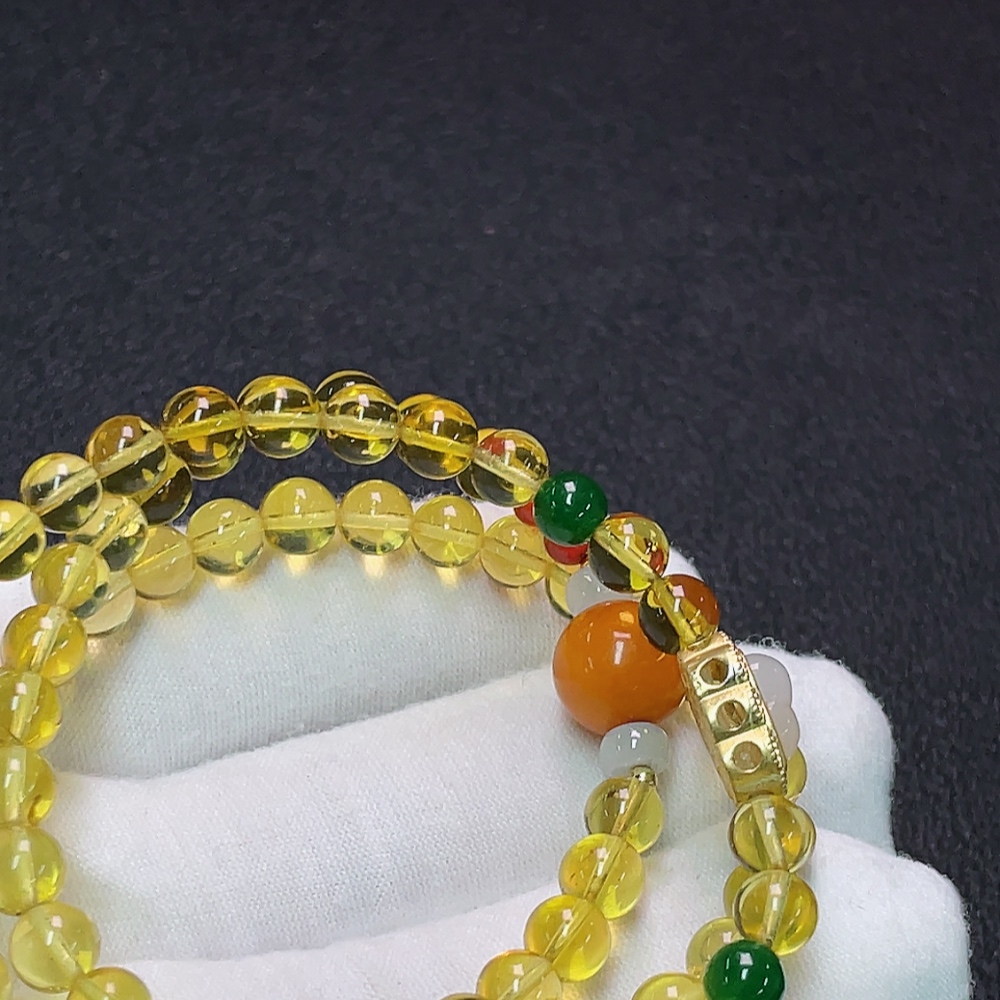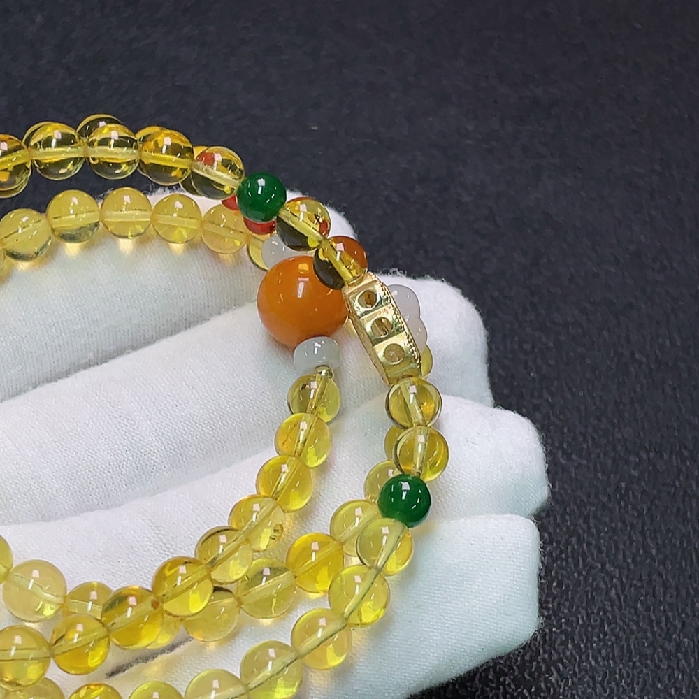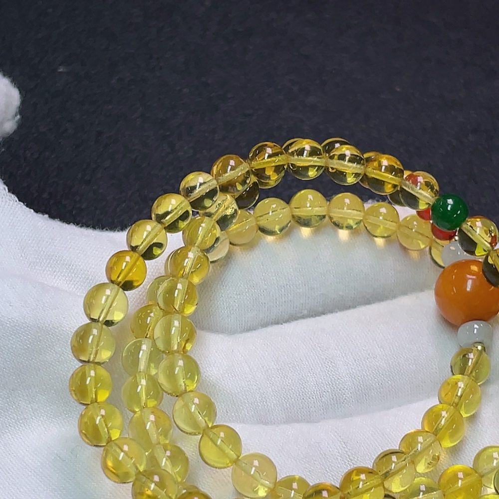 Amber Beeswax Bead Strand Non-Gold, Stones May Be Non-Natural, Total Weight Approx. 13.87g, Size About 6mm