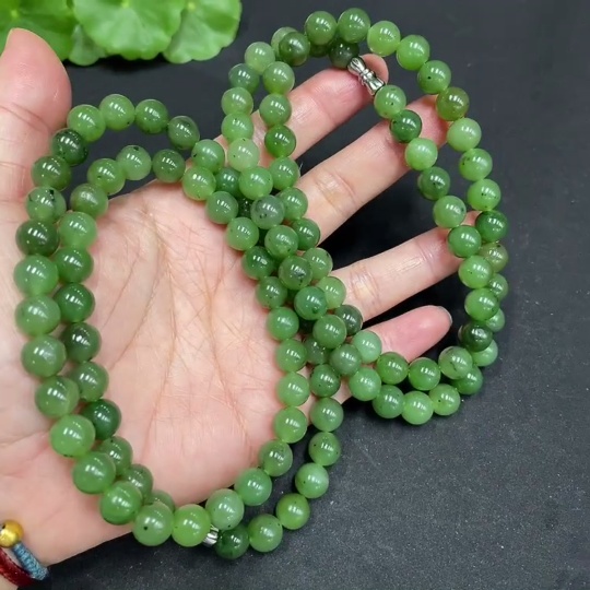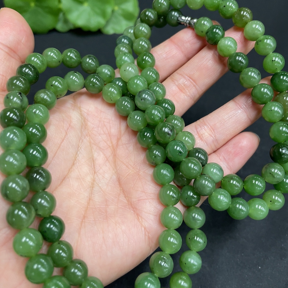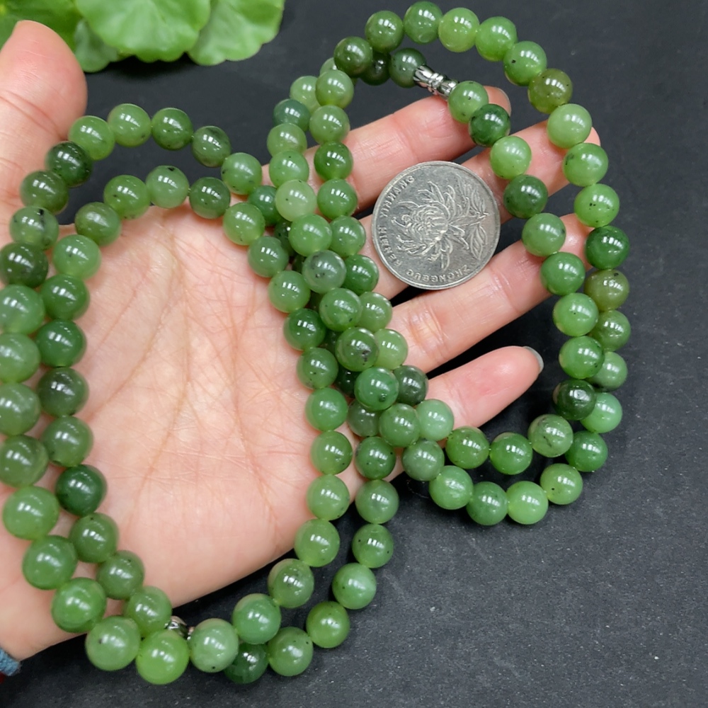 Hetian Jade Jasper Beaded Necklace, Approx. 7.8/7.8mm, Total Weight Approx. 94.7g