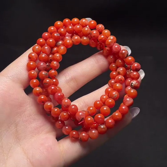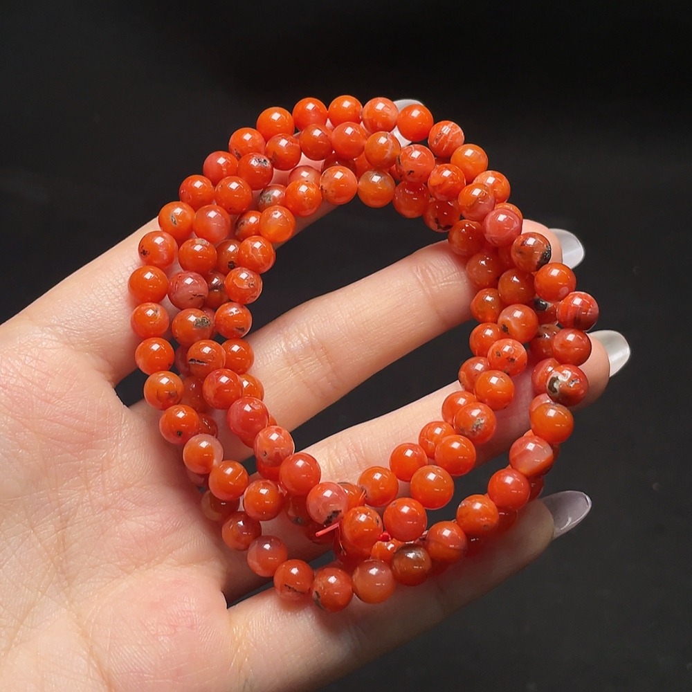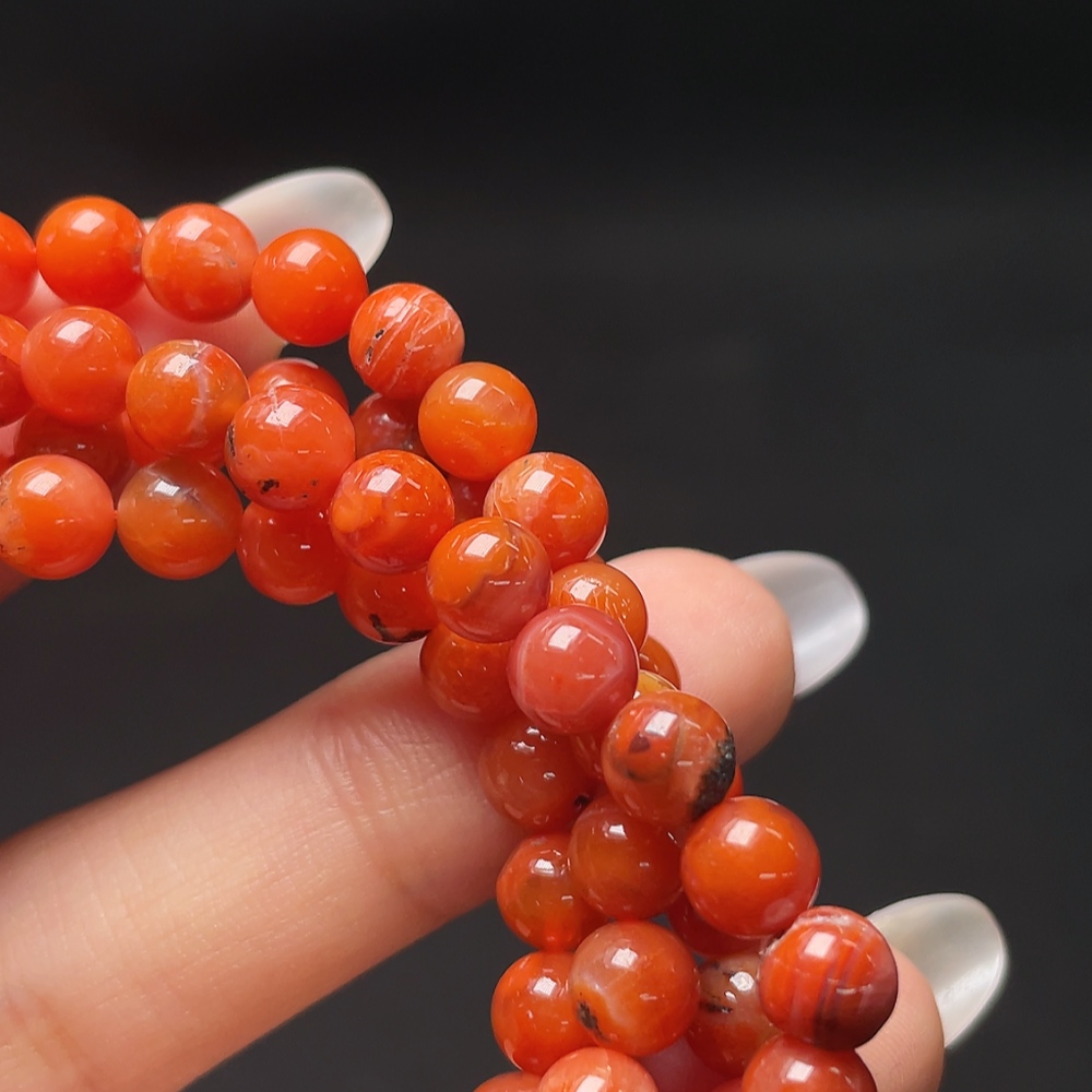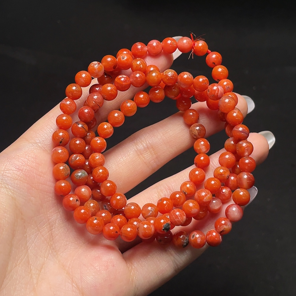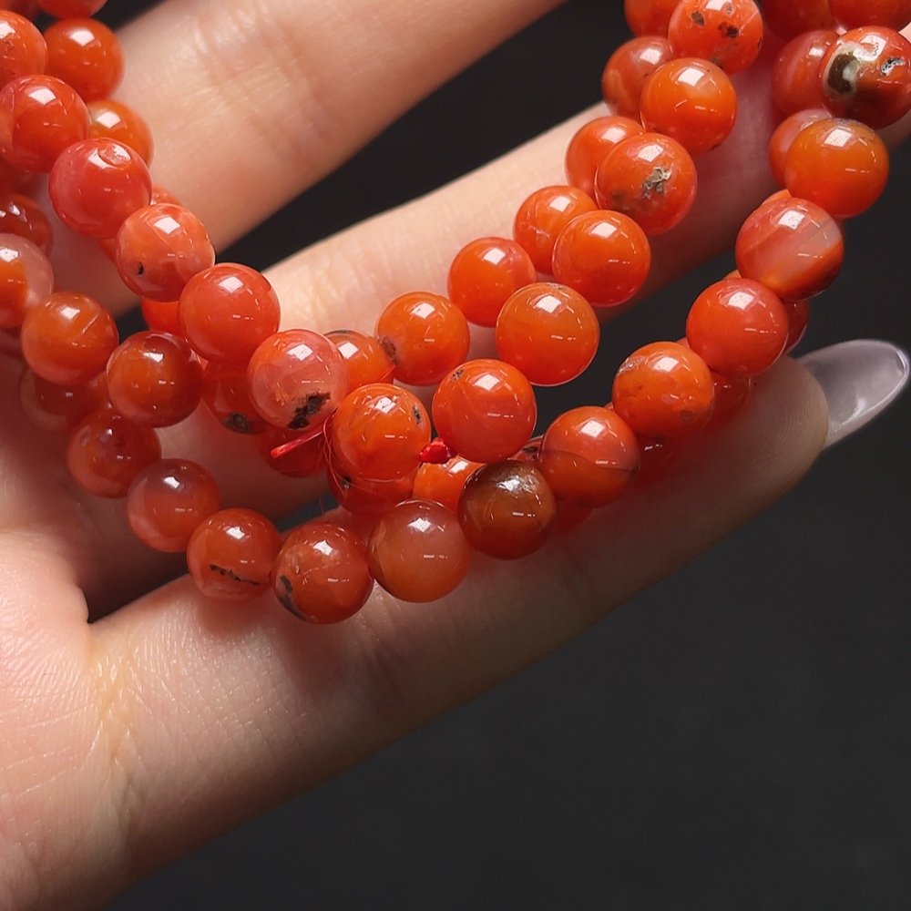 South Red Agate Bead Strand with Visible Organic Matter, Total Weight Approx. 38.21g, Size About 6mm