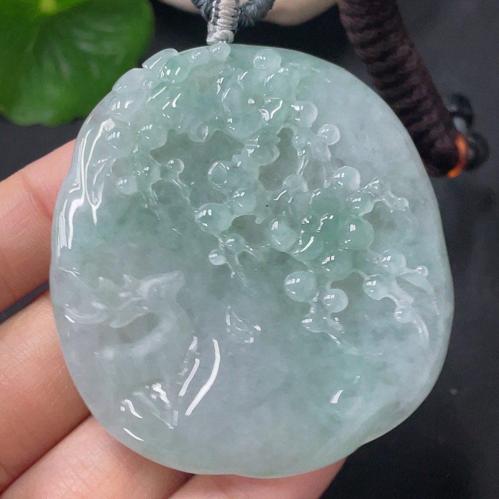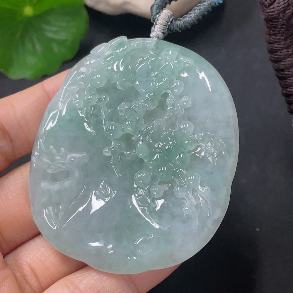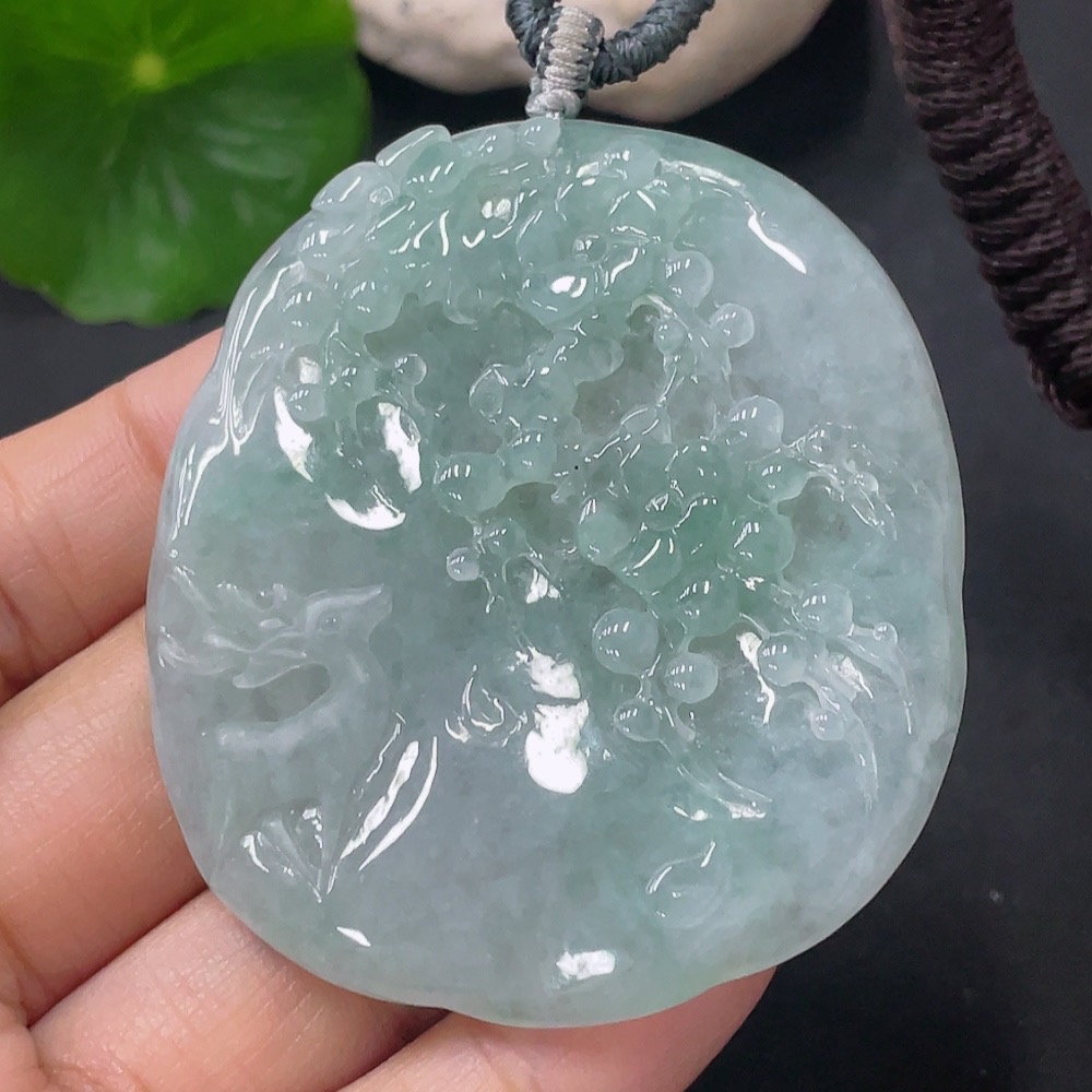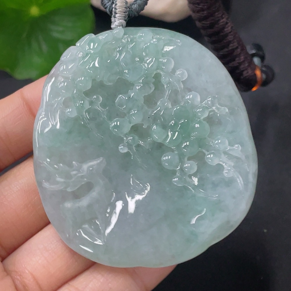 Jadeite pendant sika deer, total weight approx. 35g including rope