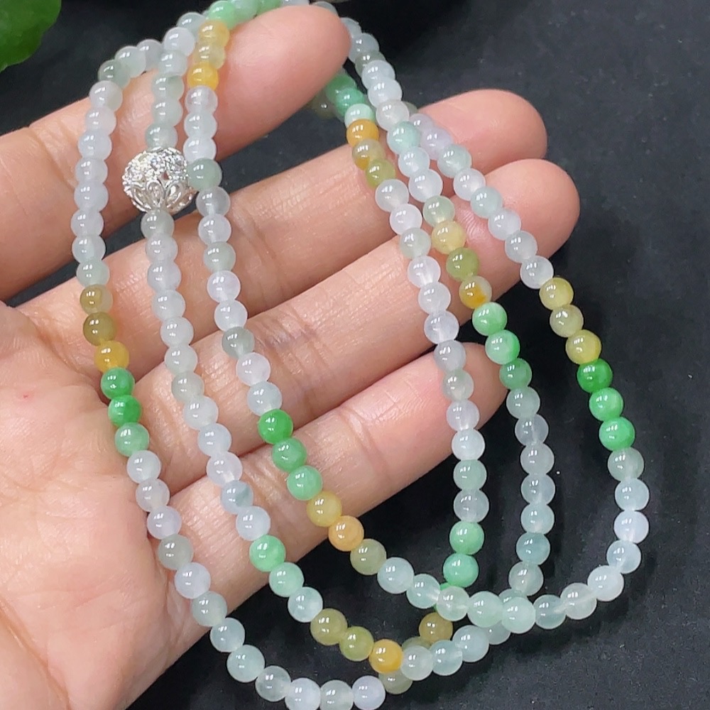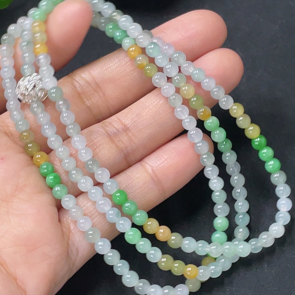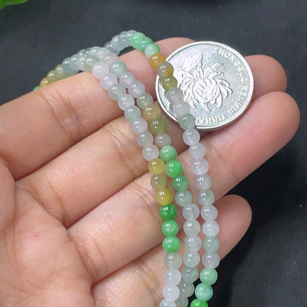 Jadeite Beaded Necklace Approx. 3.8mm Non-Gold Total Weight Approx. 16.57g