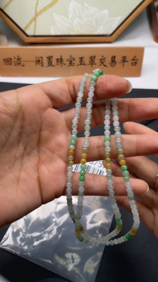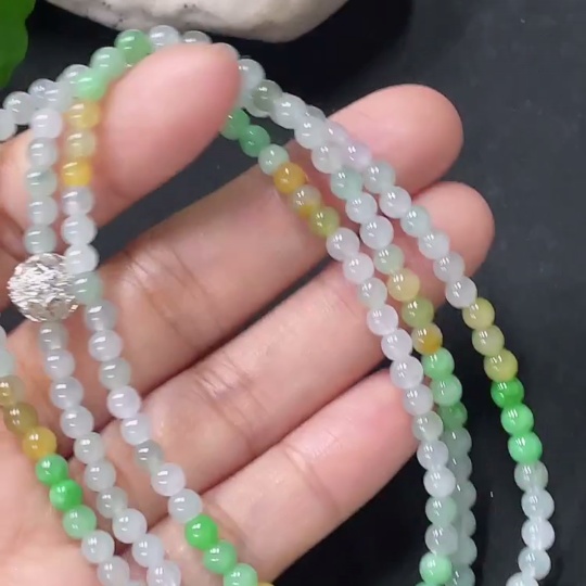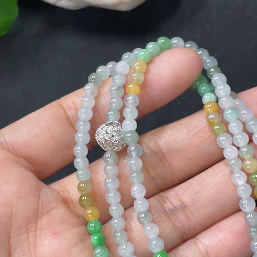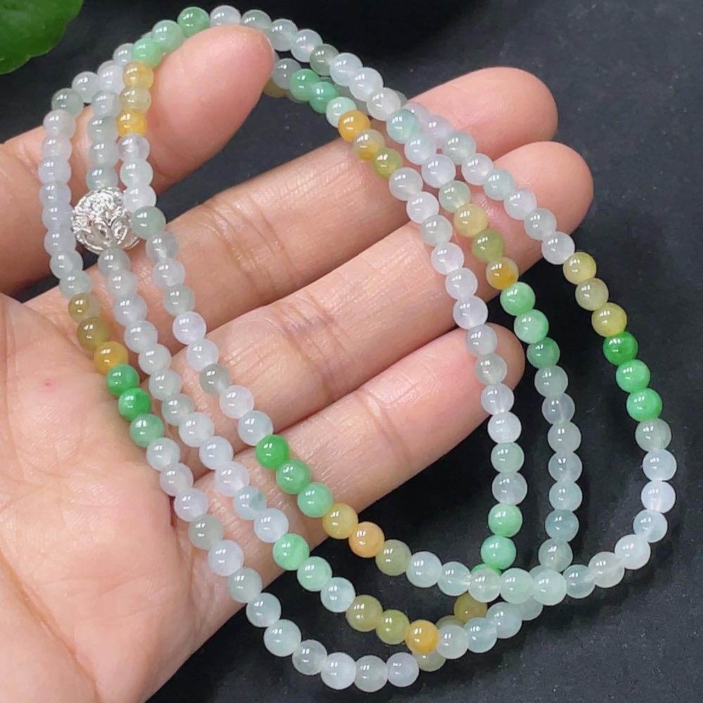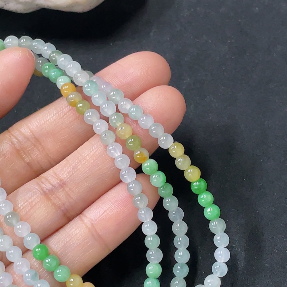 Jadeite Beaded Necklace Approx. 3.8mm Non-Gold Total Weight Approx. 16.57g
