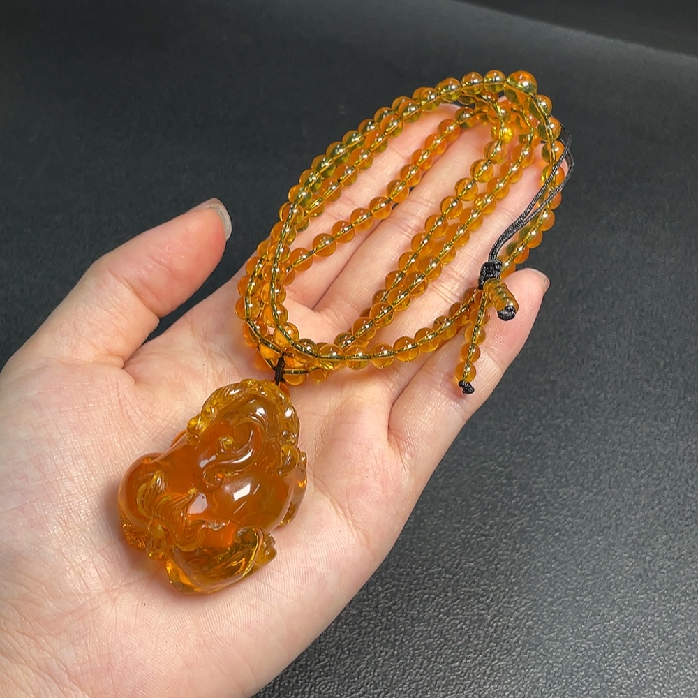 Amber Beeswax Pendant Total Weight Approx. 27.5g Including Chain