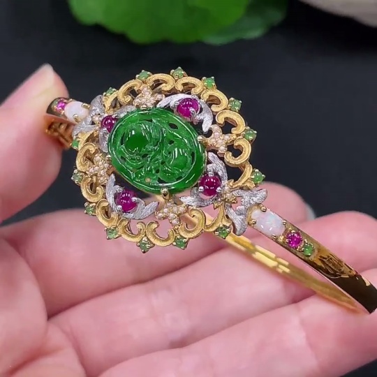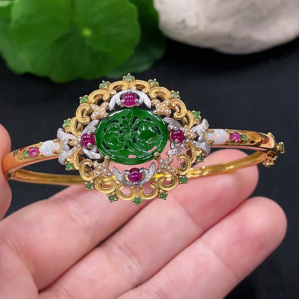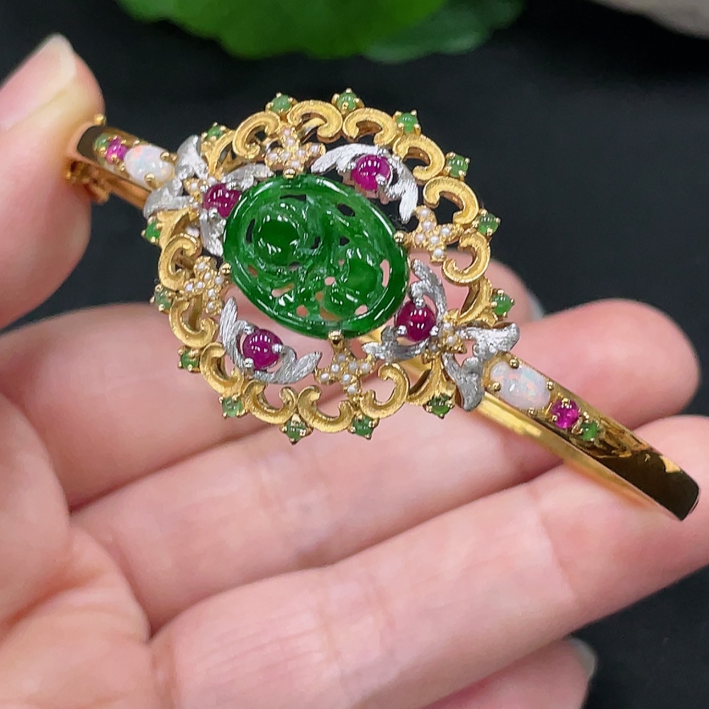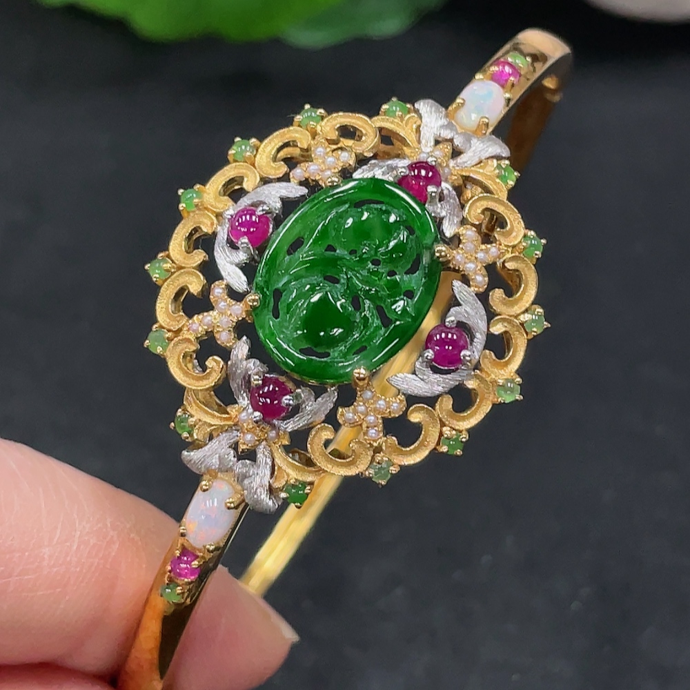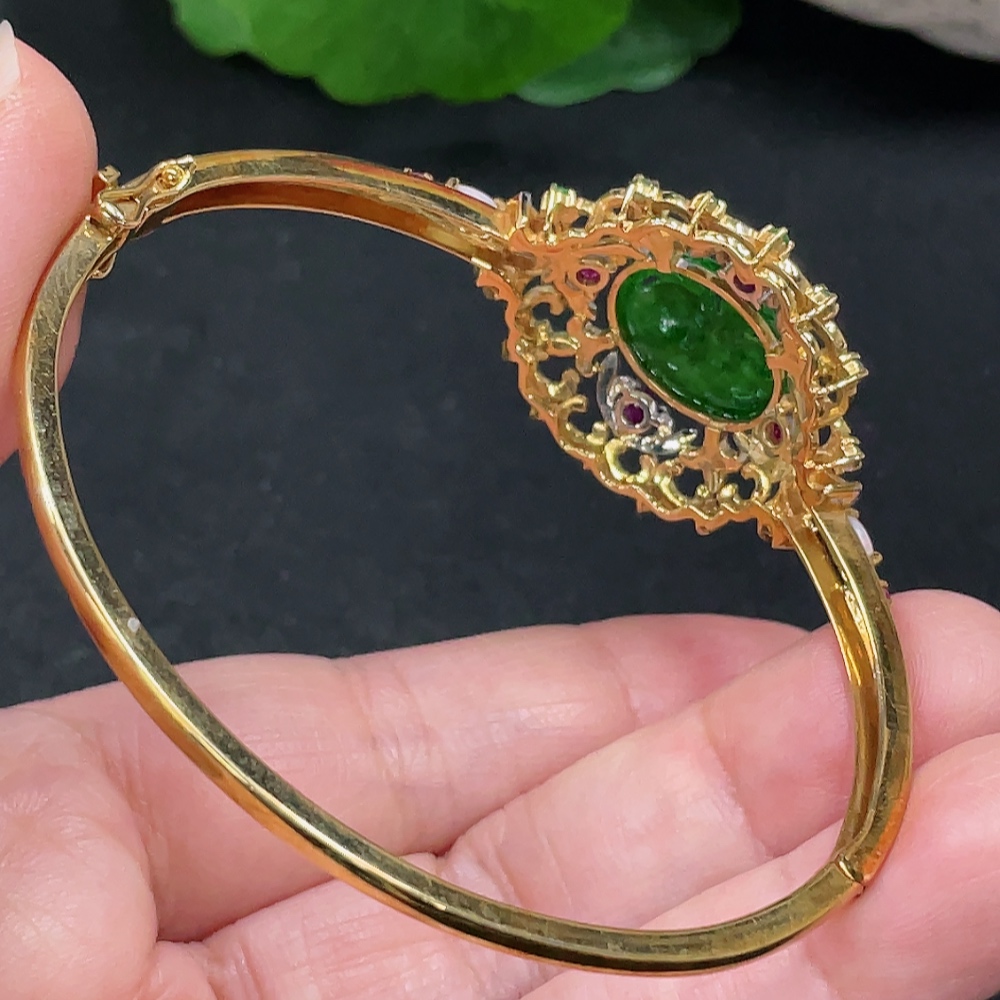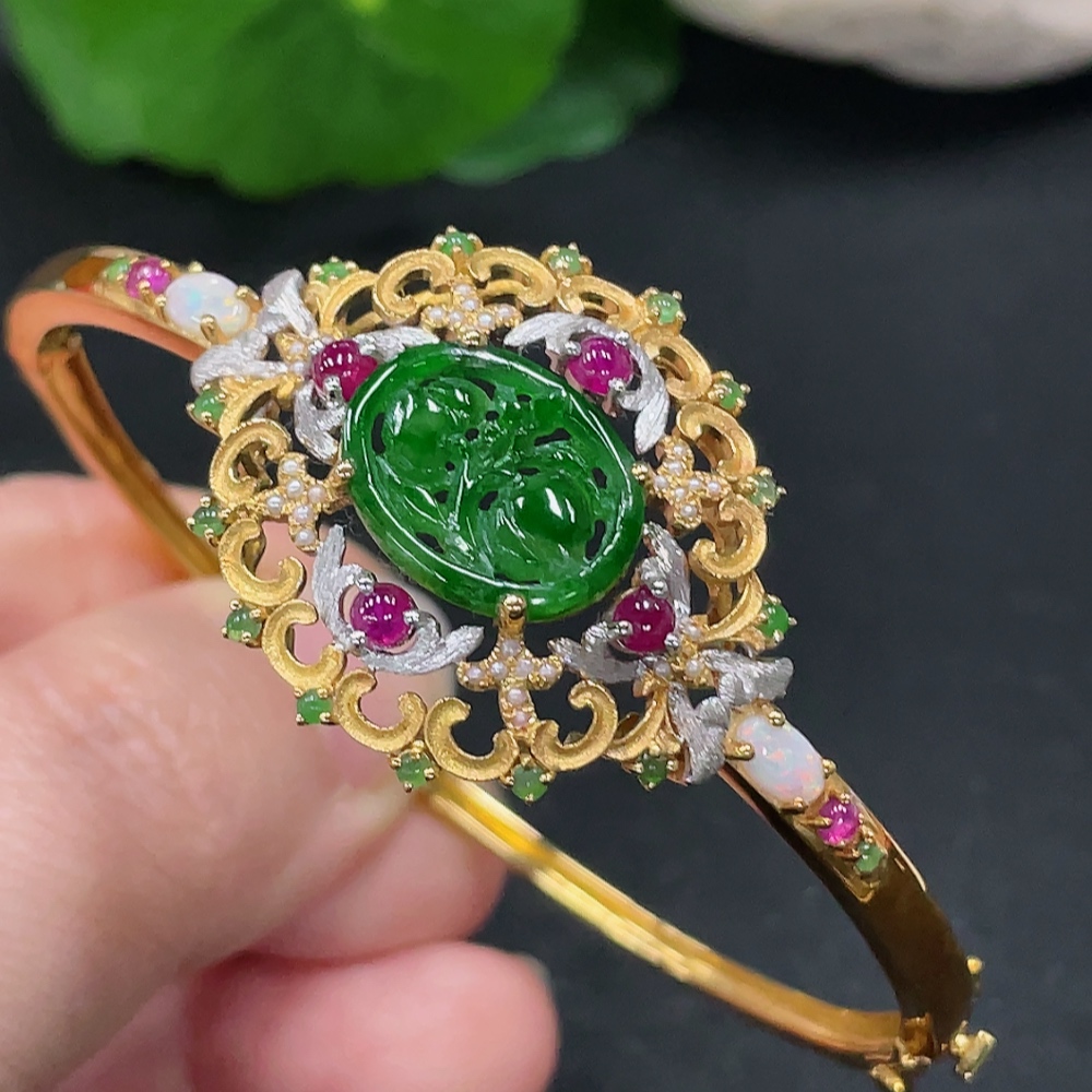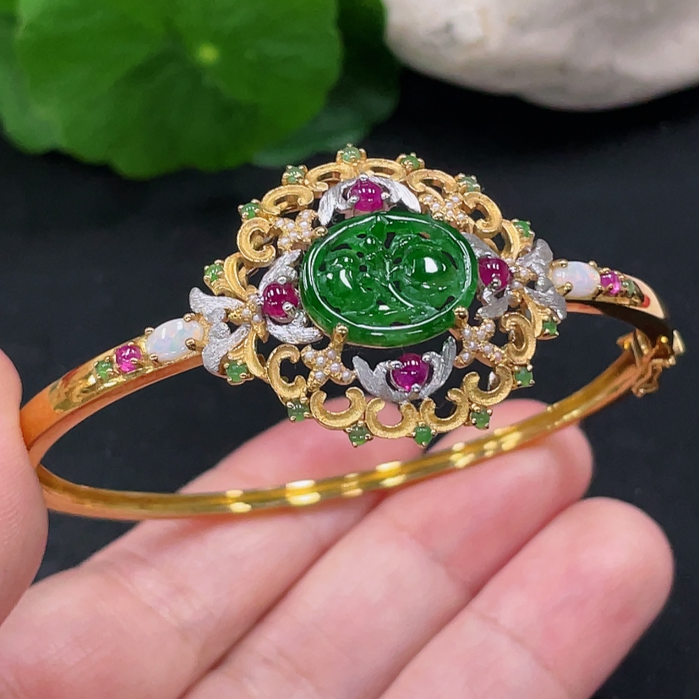 Jadeite inlaid bracelet 18K gold Total product weight approx. 14.4g (with non-A beads)