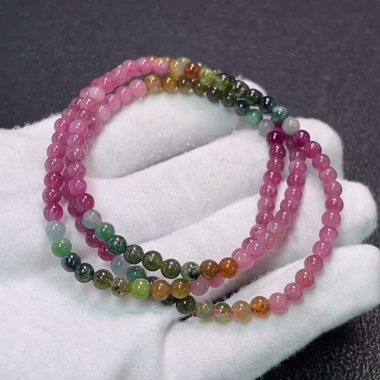 Tourmaline bead strand with visible organic matter, total weight approximately 15.75g, about 4.2mm in size