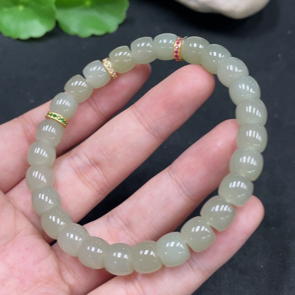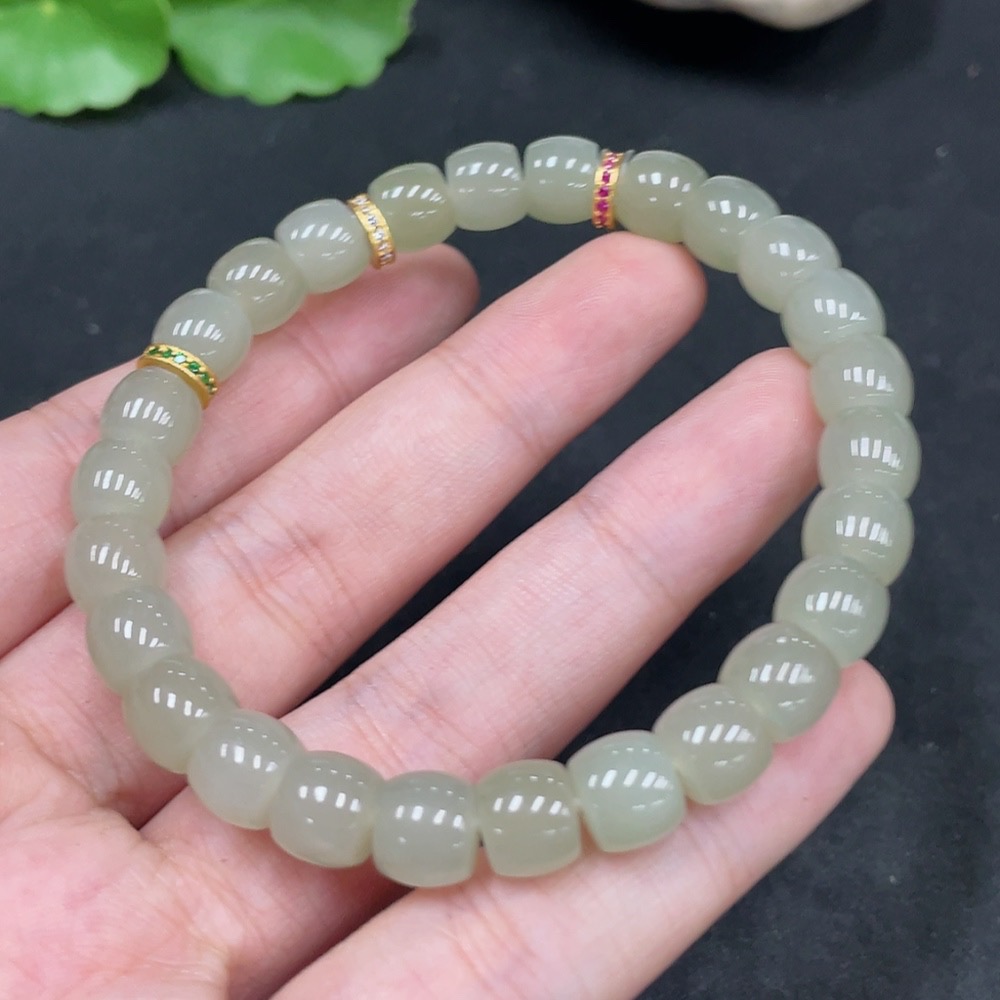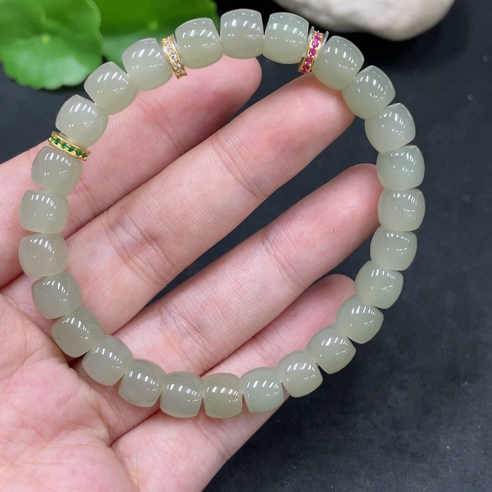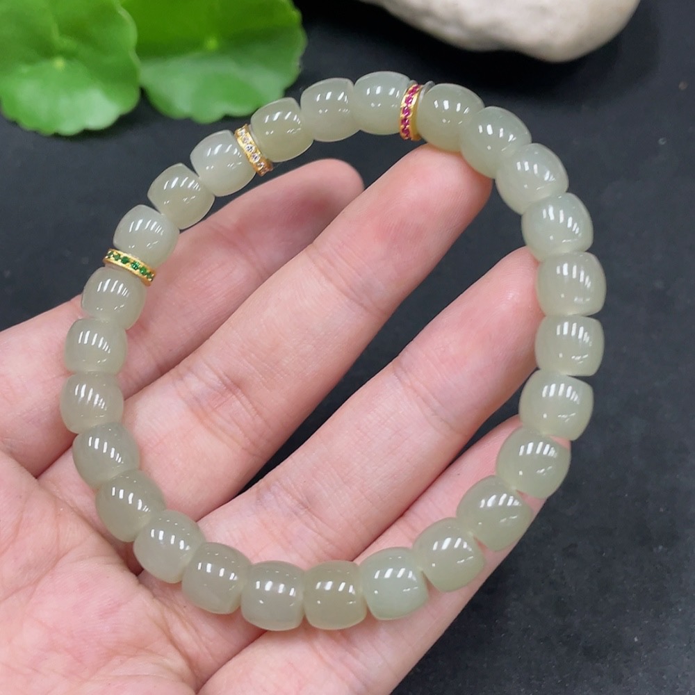 Hetian Jade Bracelet, approx. 7.7mm, total weight approx. 23.1g, non-gold