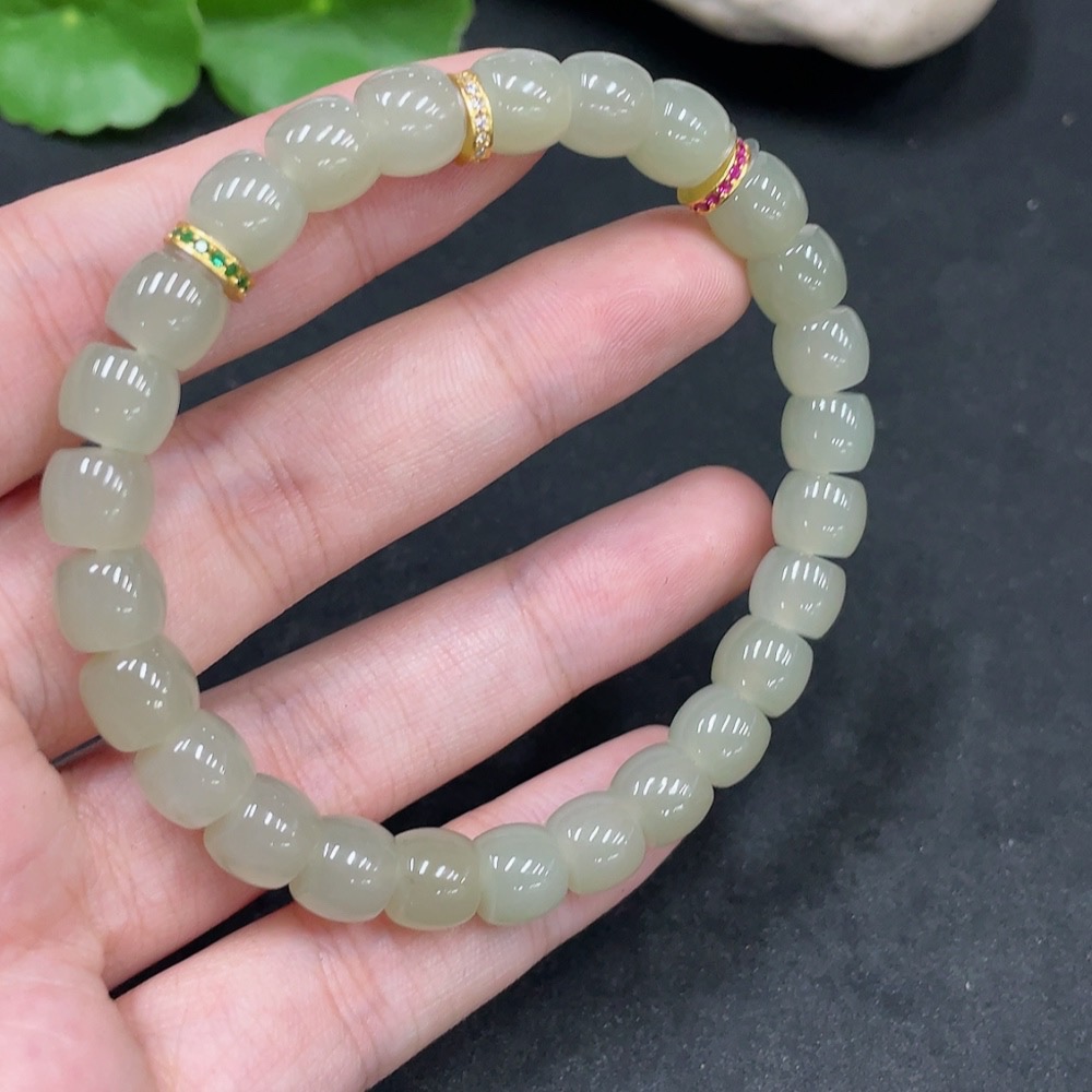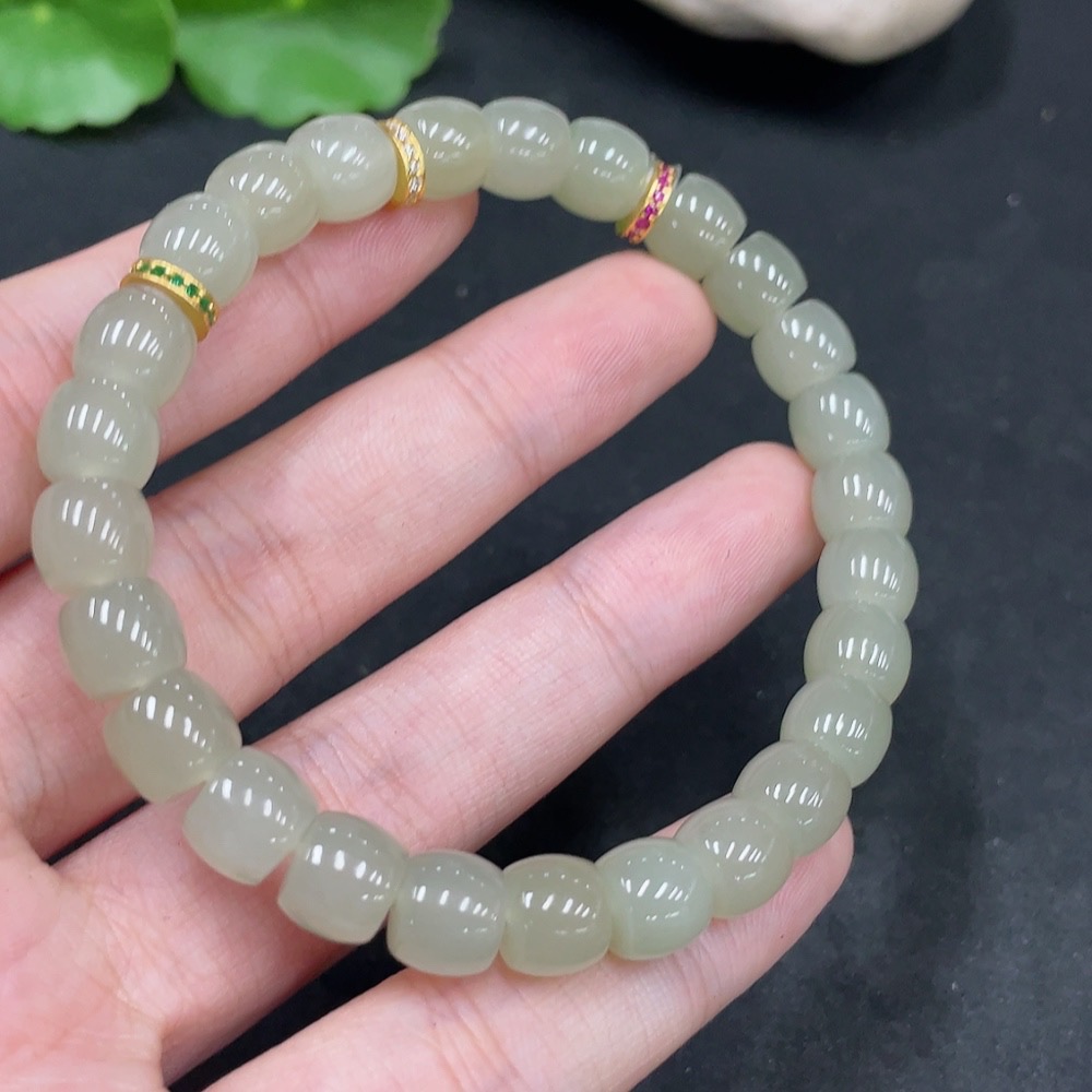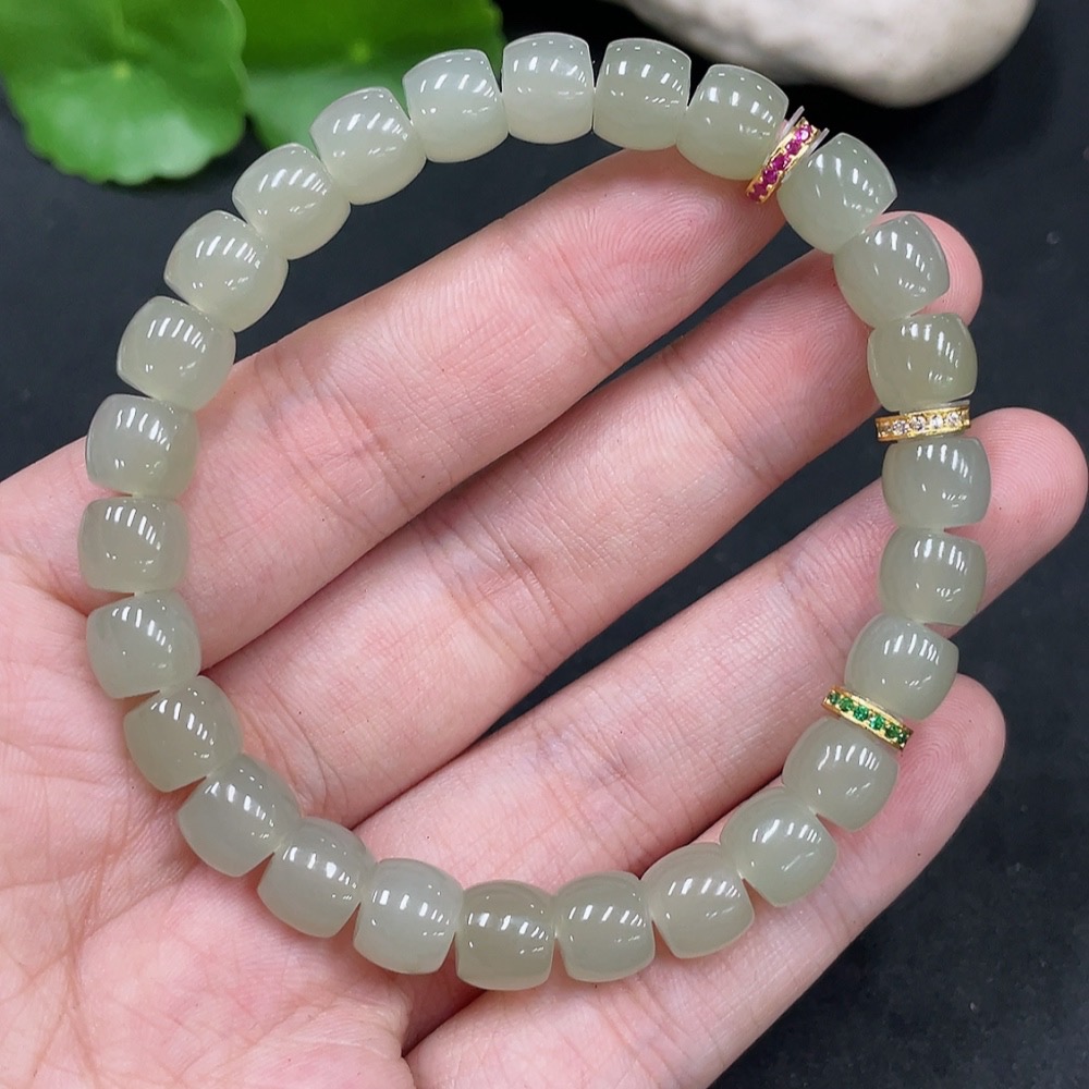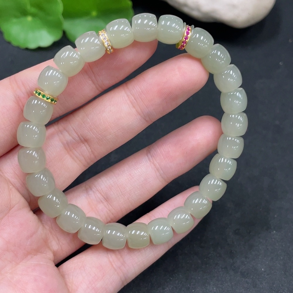 Hetian Jade Bracelet, approx. 7.7mm, total weight approx. 23.1g, non-gold