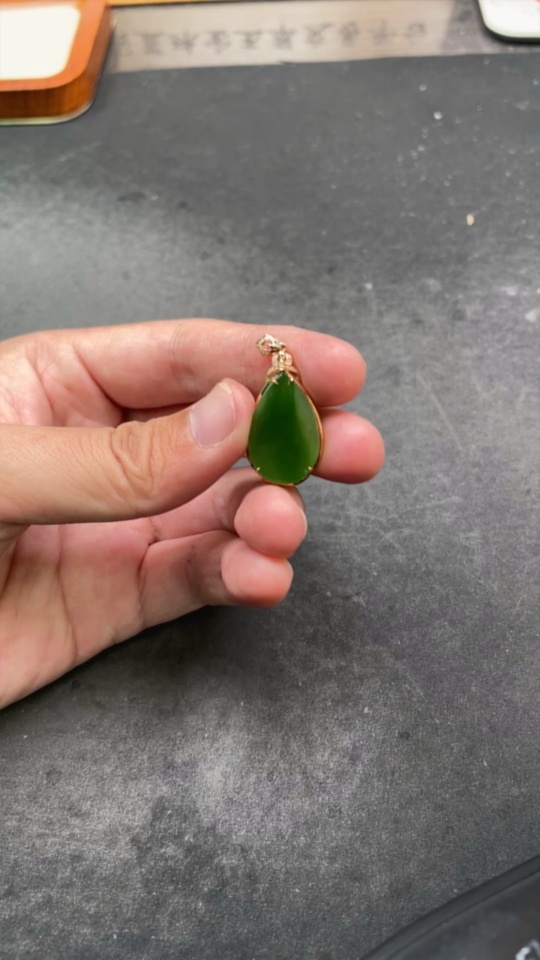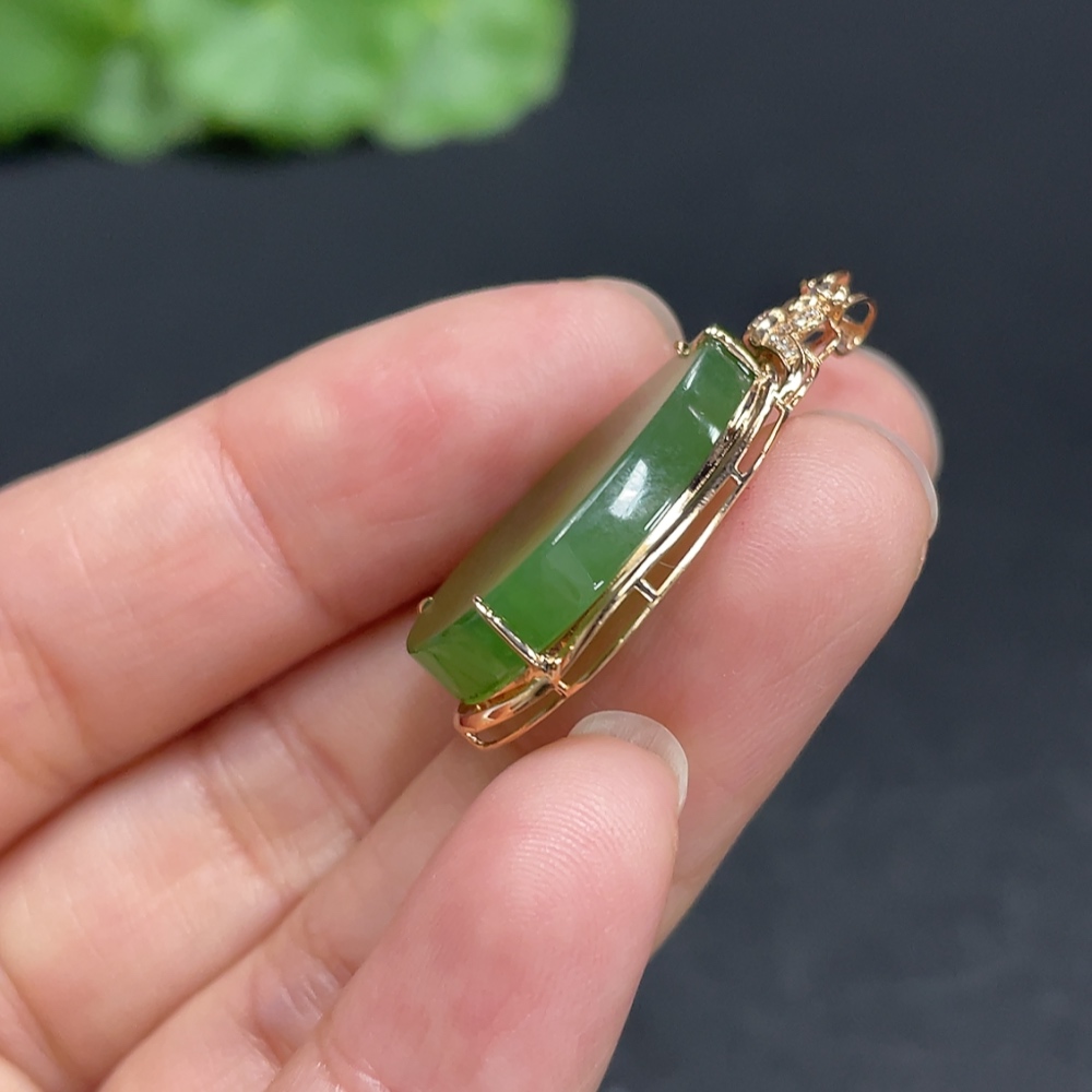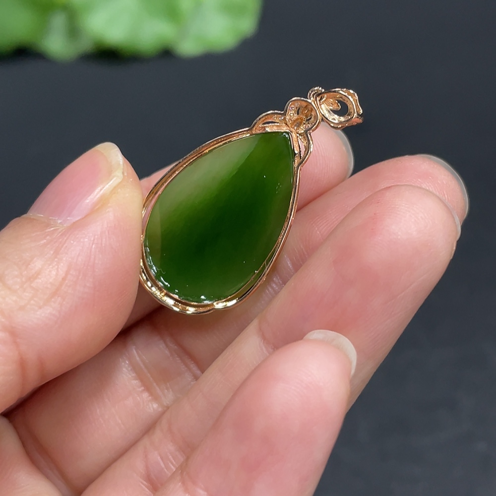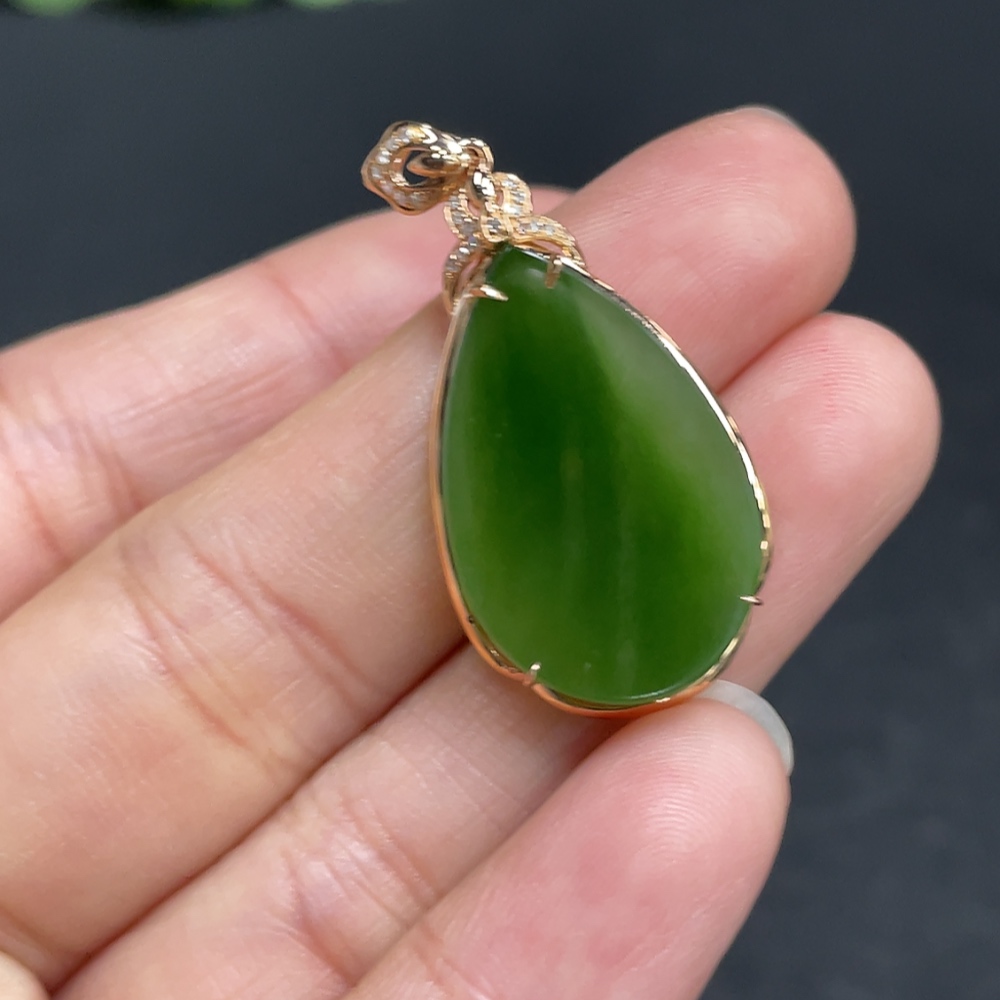 Hetian Jade Water Drop Pendant with 18K Gold and Diamond Accents, Total Weight Approx. 3.1g