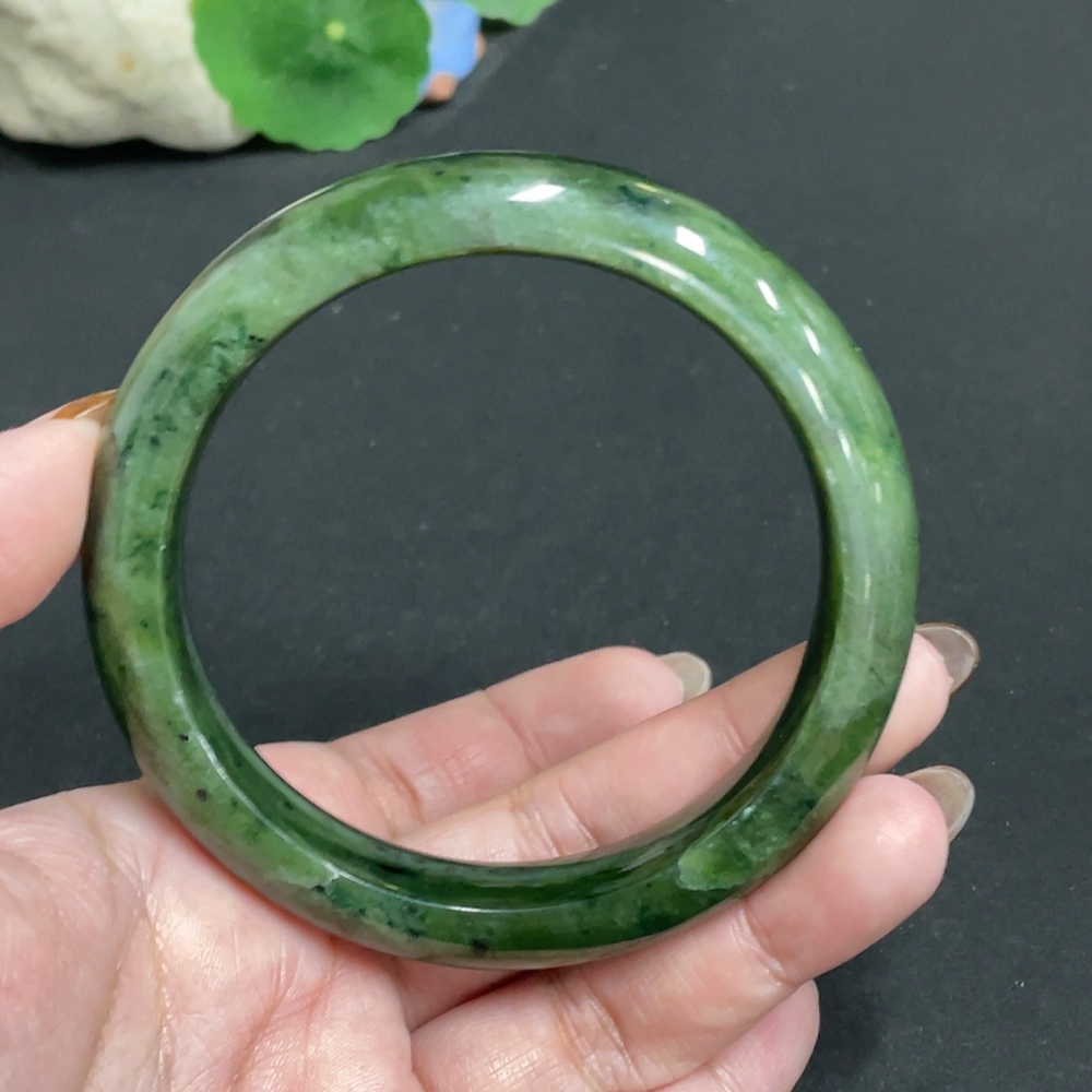 Hetian Jade Round Bracelet Size 65 with Crack Total Weight Approx. 73.3g