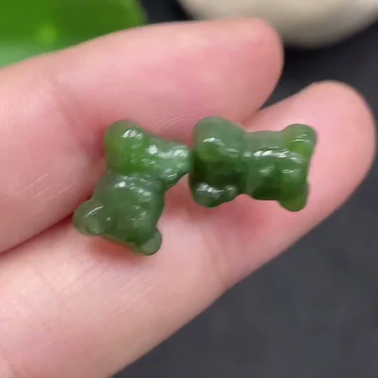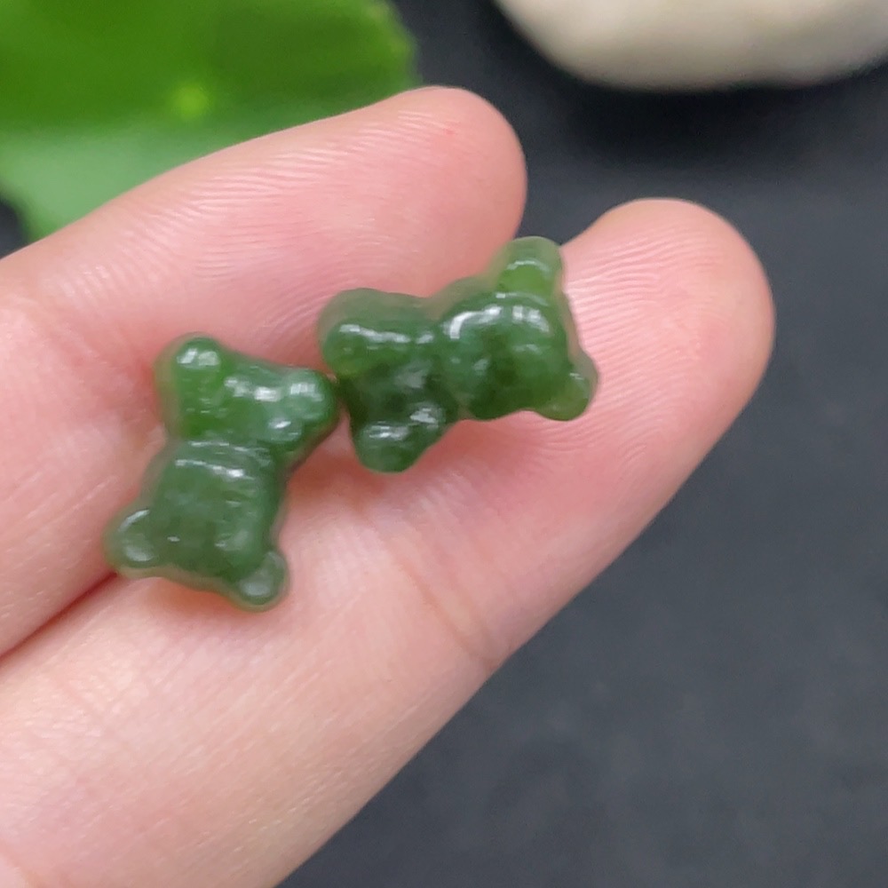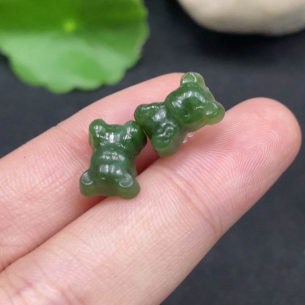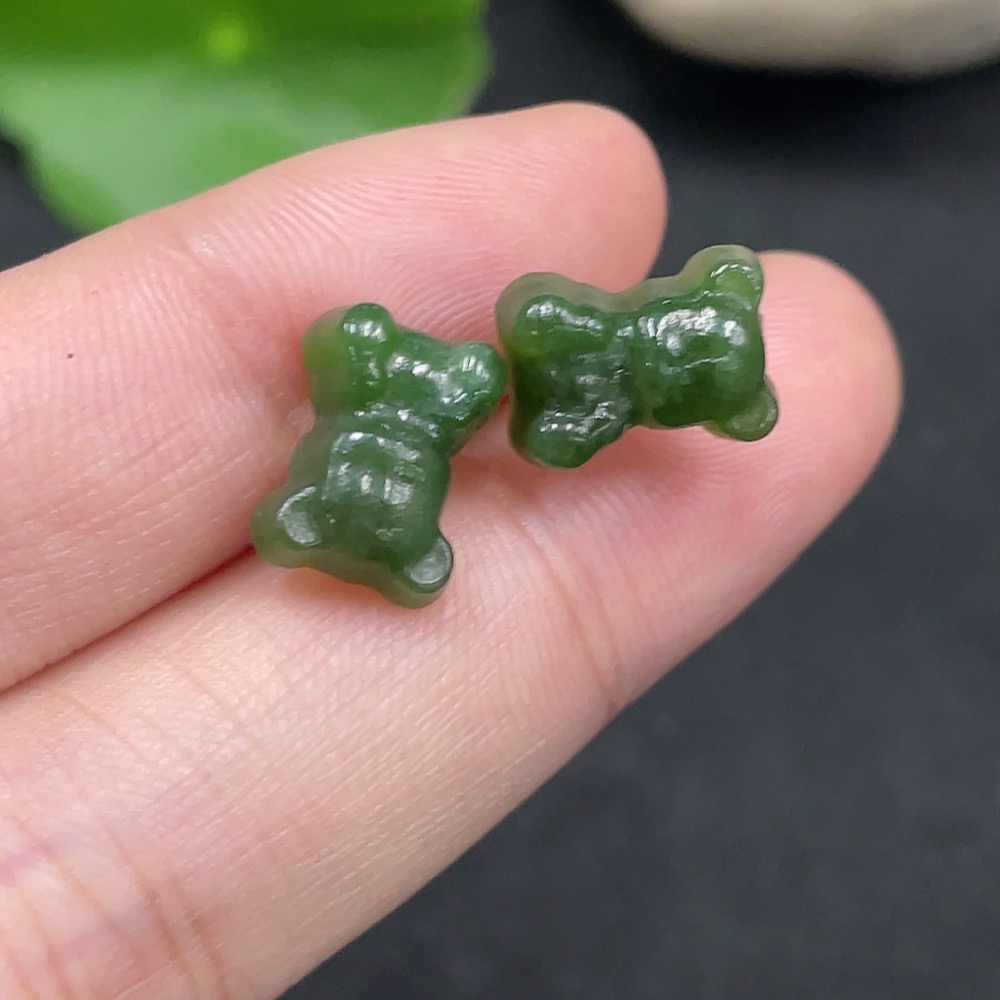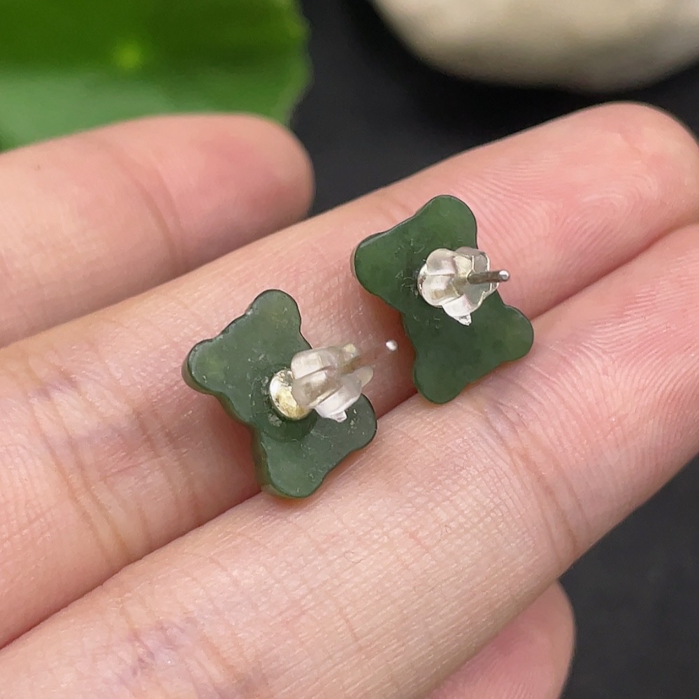 Hetian Jade Inlaid Earrings Non-Gold Total Weight Approx. (Including Ear Stoppers) 1.6g