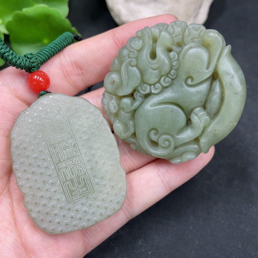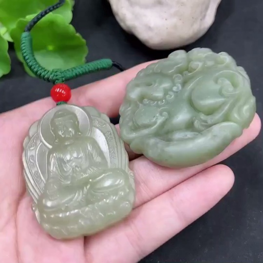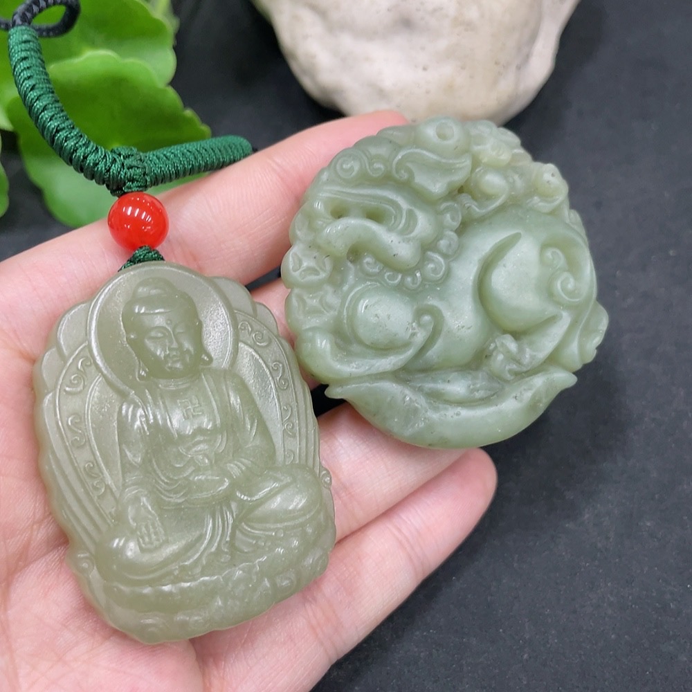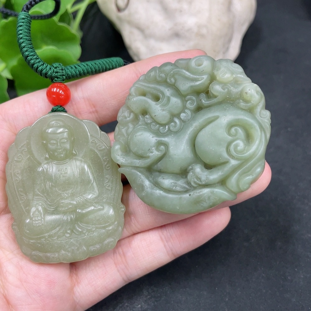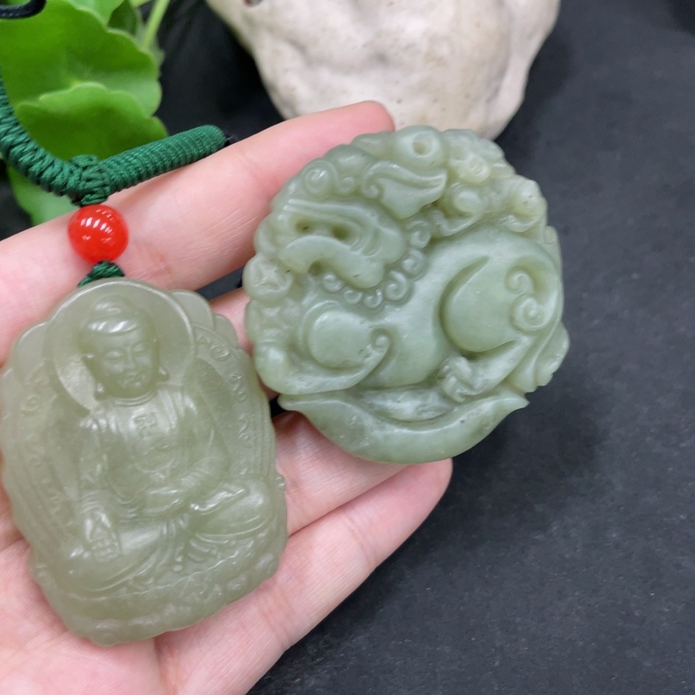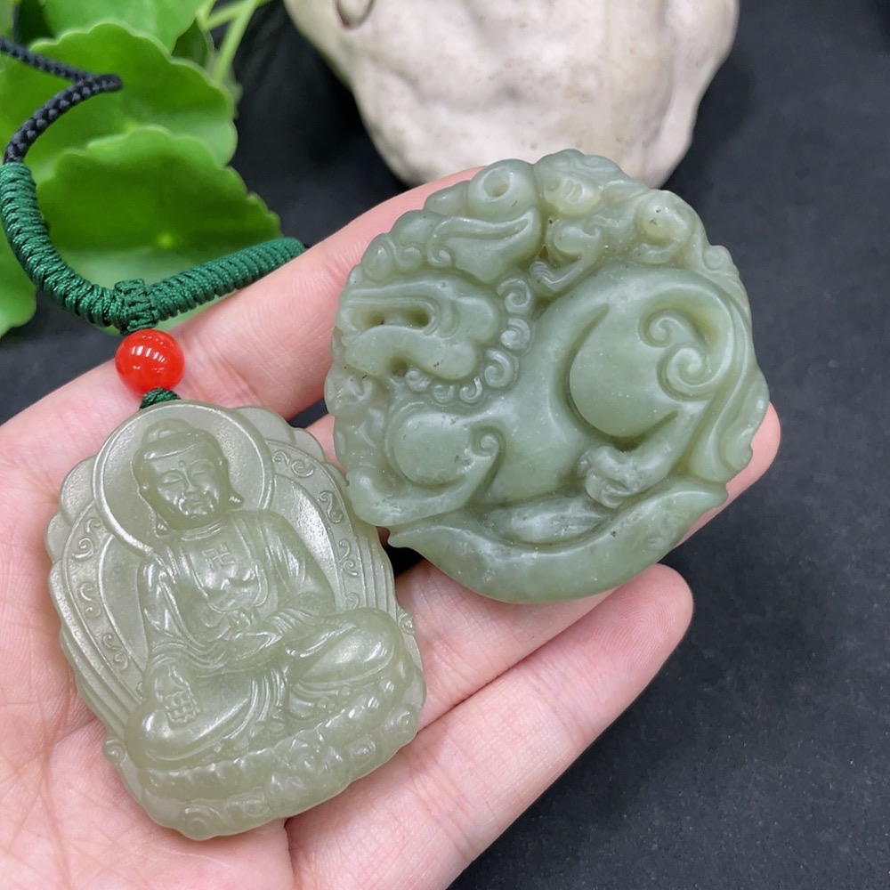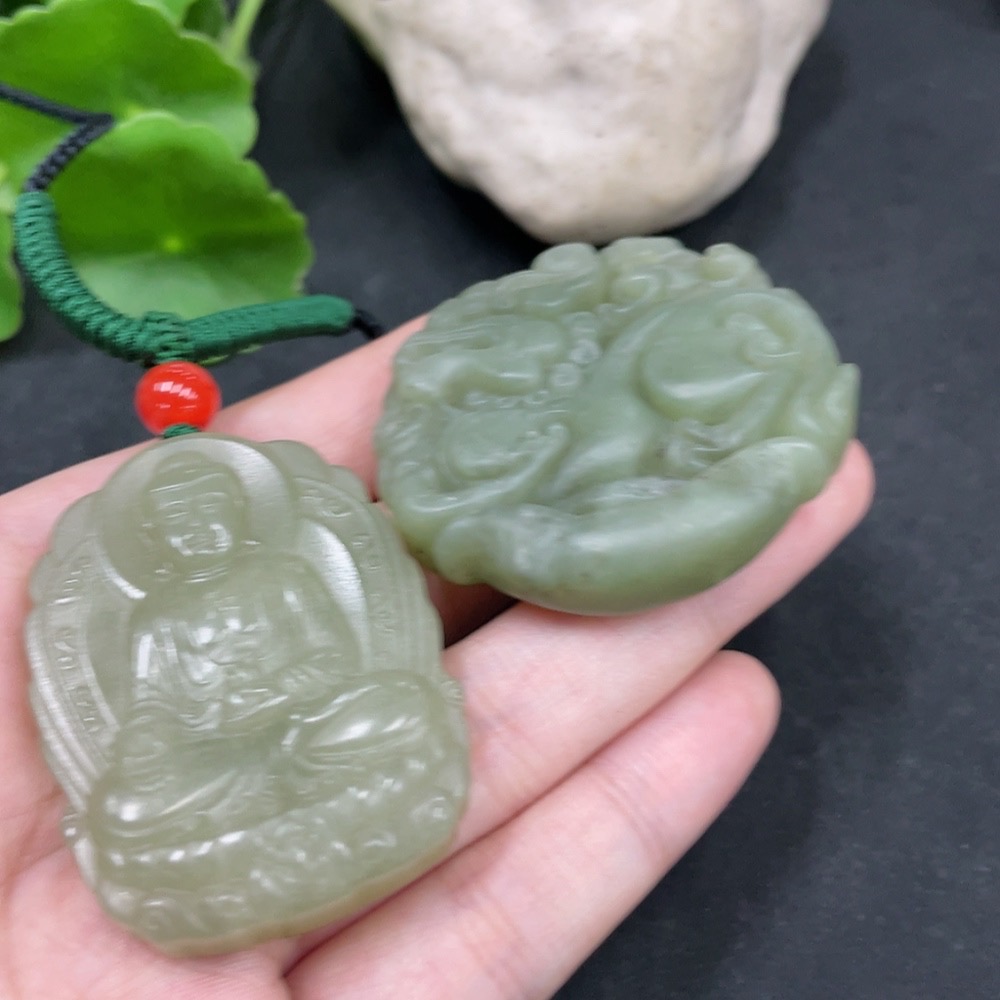 Hetian Jade Pendant Amitabha Buddha + Auspicious Beast