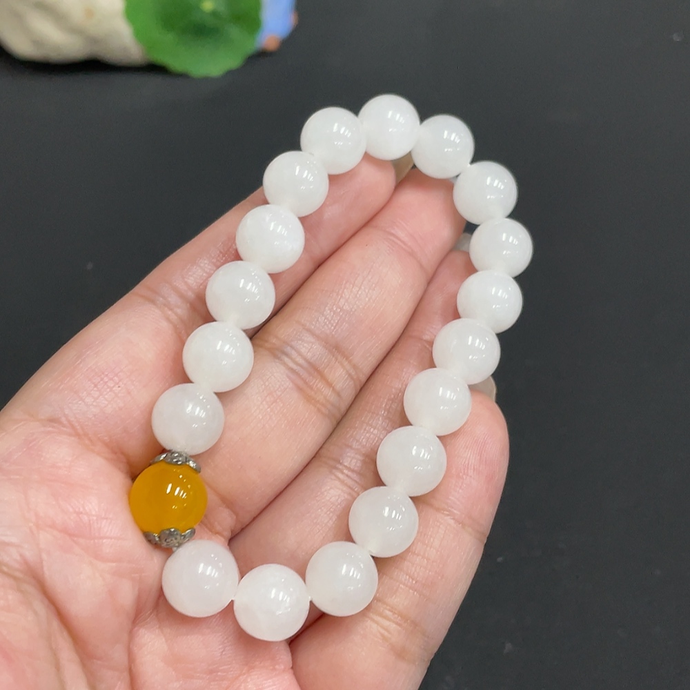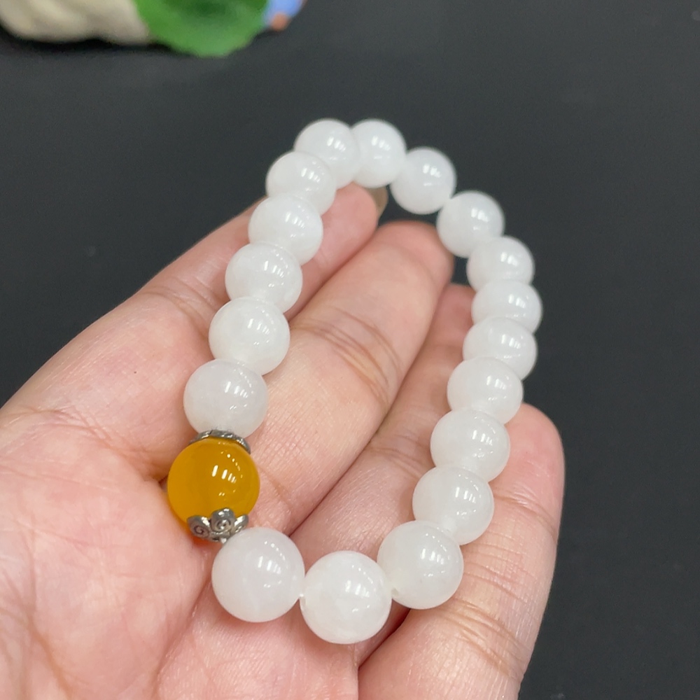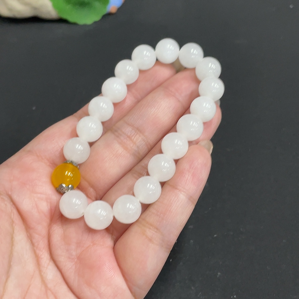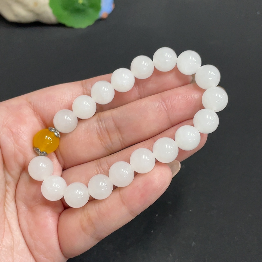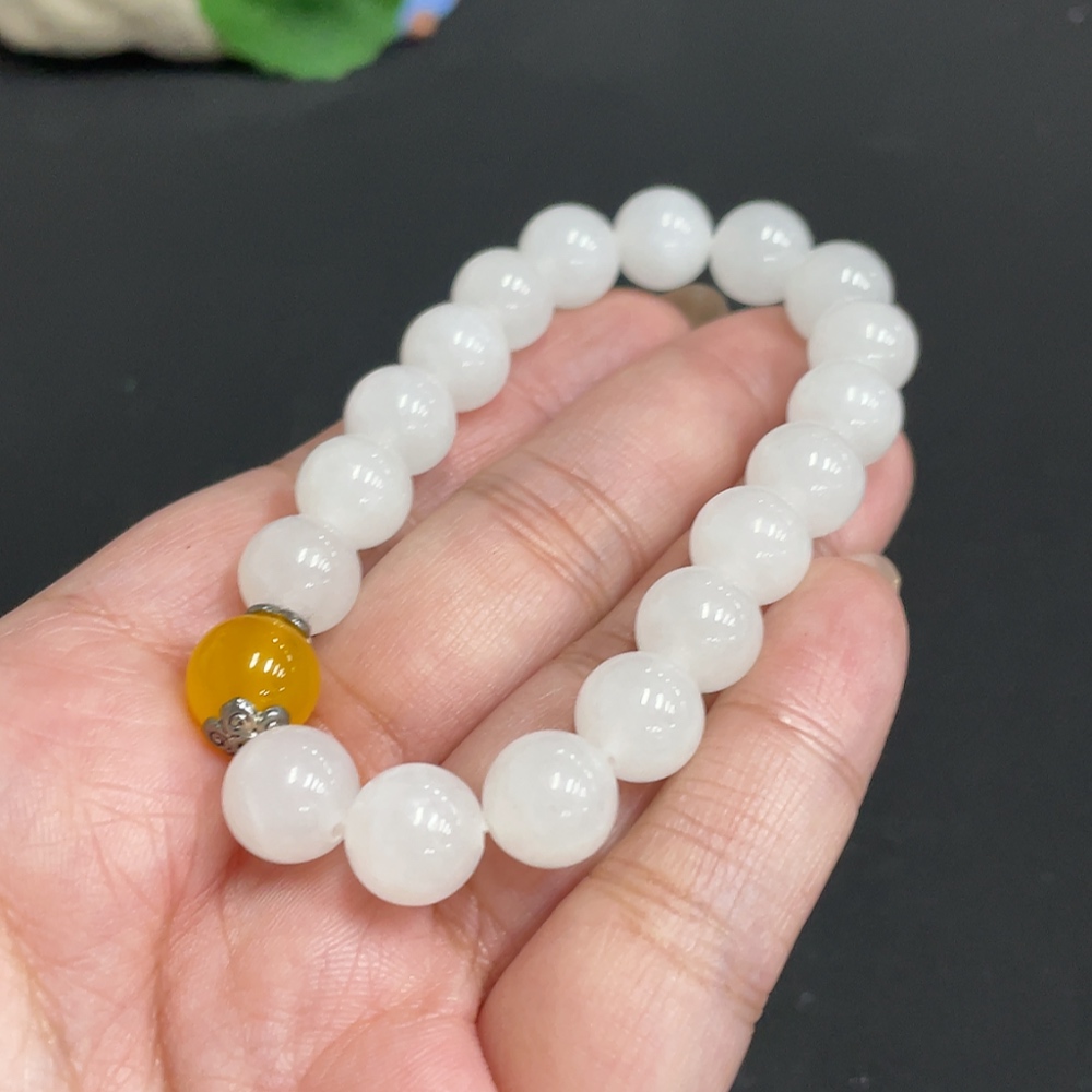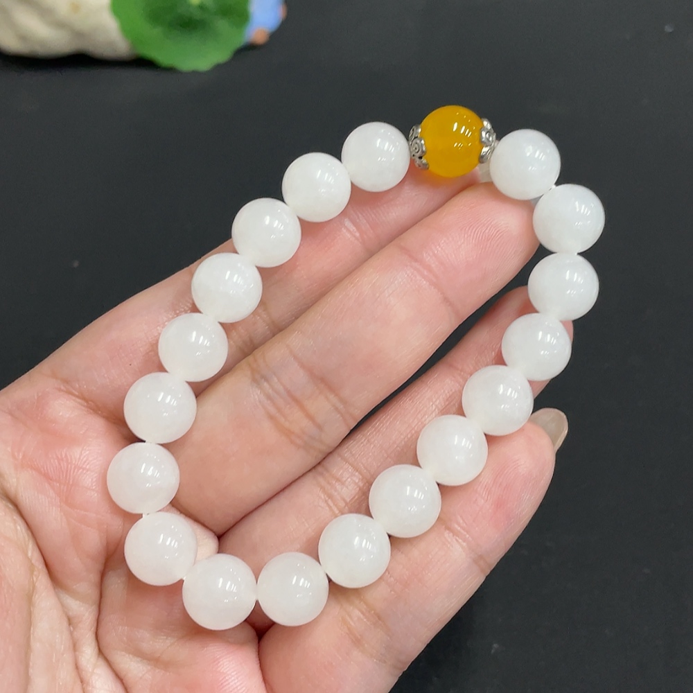 Hetian Jade Bracelet, approx. 9.6mm, total weight approx. 29.8g, contains other mineral components, accessory beads not Hetian Jade