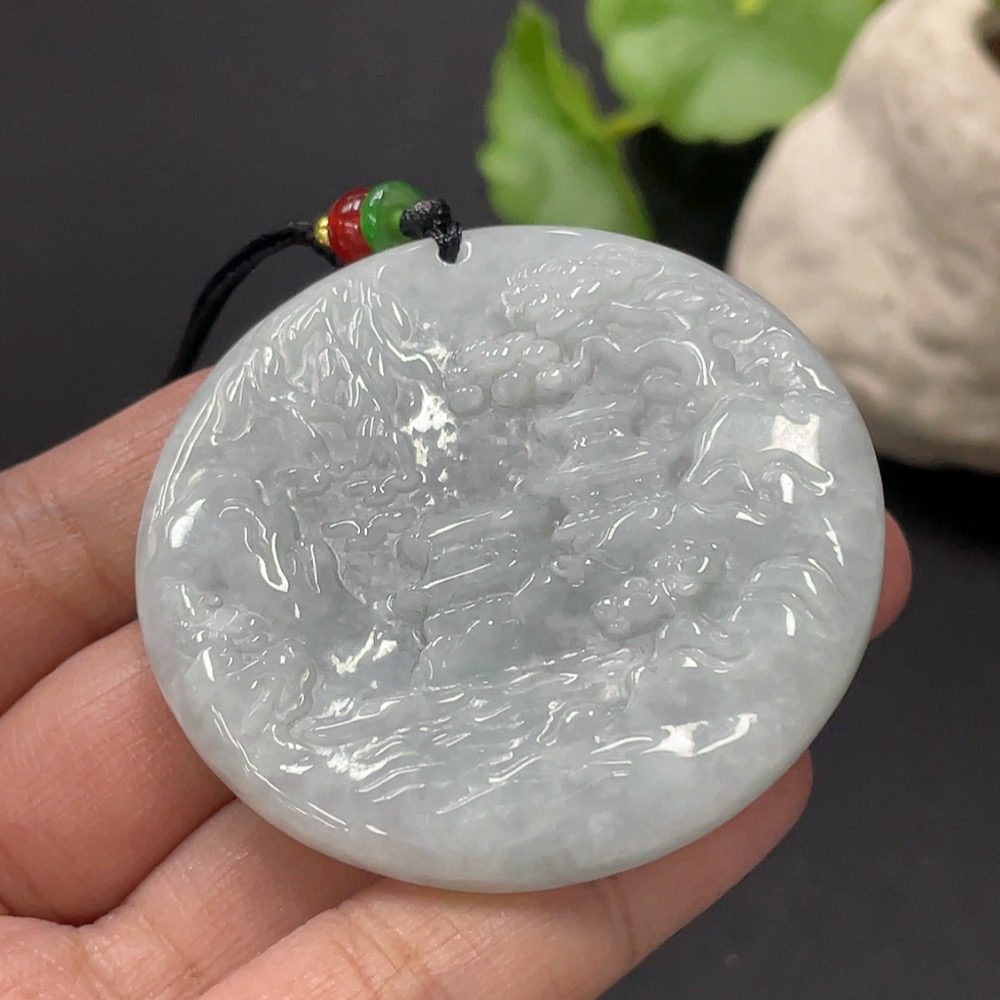 Jadeite Pendant Landscape Plaque Total Weight Approx. 32.83g Including Cord With Non-Grade A Beads