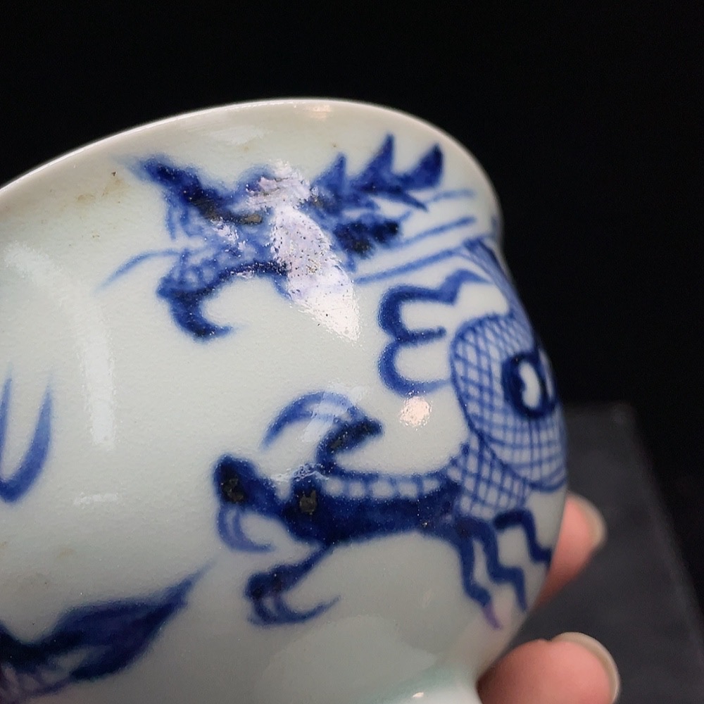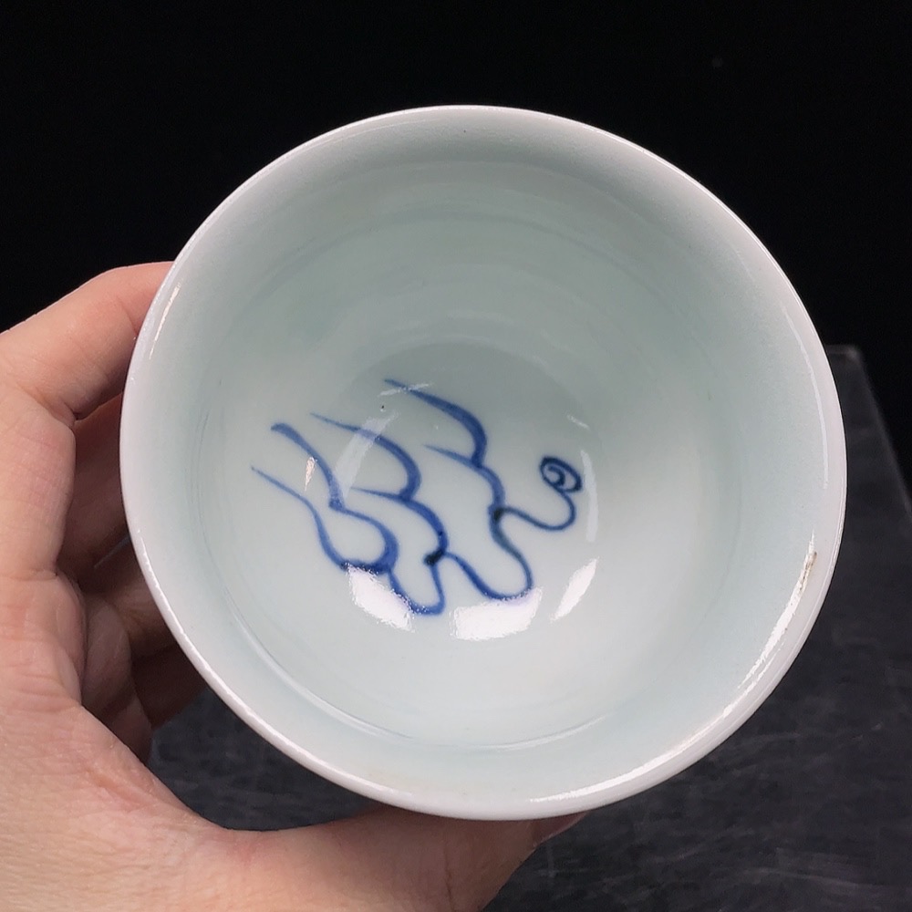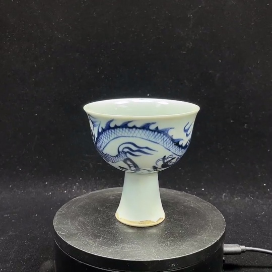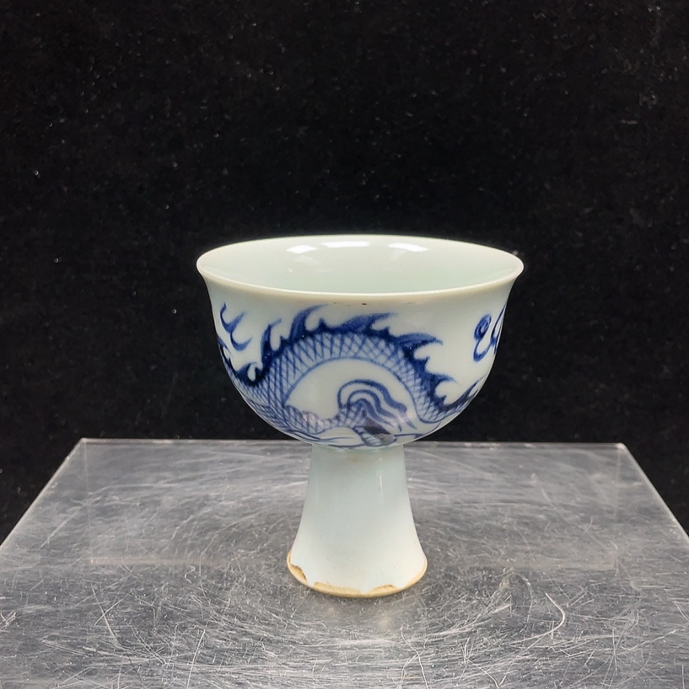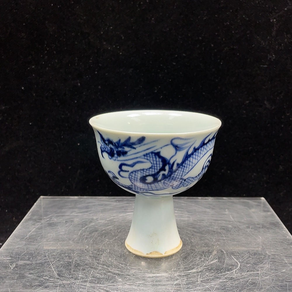 Porcelain, Mint Condition, Blue and White Stem Cup