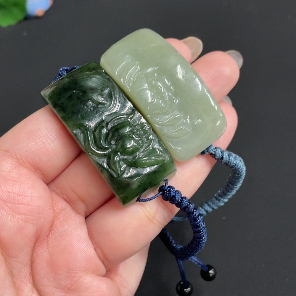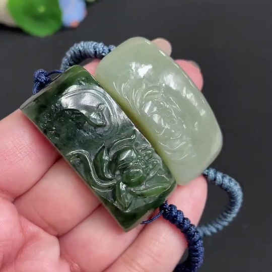 Hetian Jade Hand Plaque - Prosperity in Full Bloom