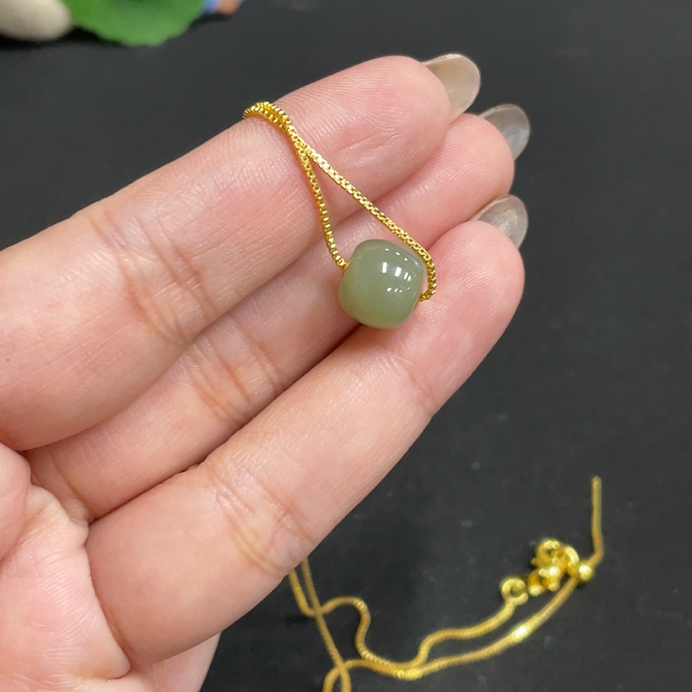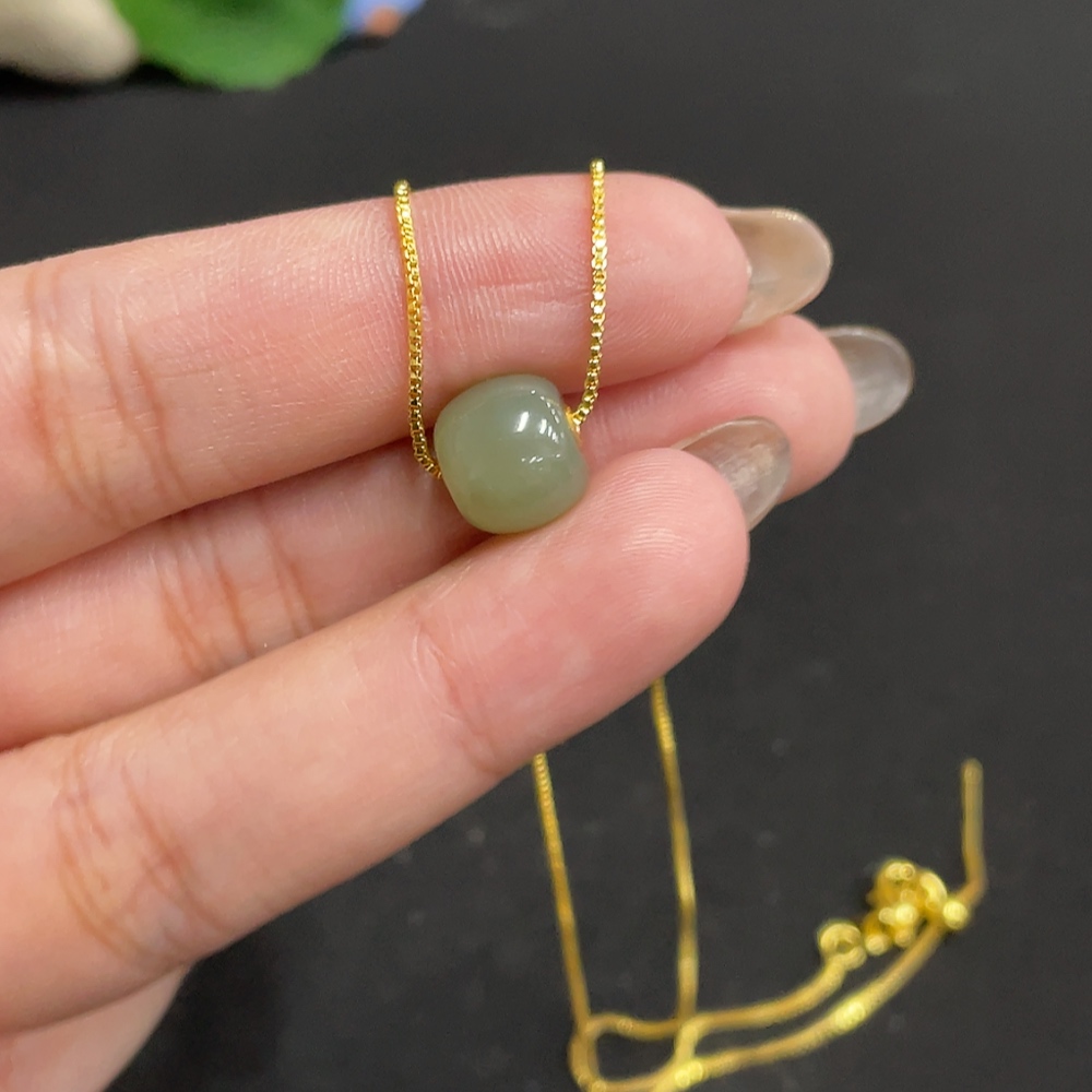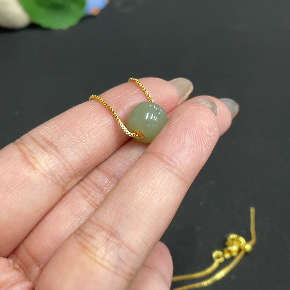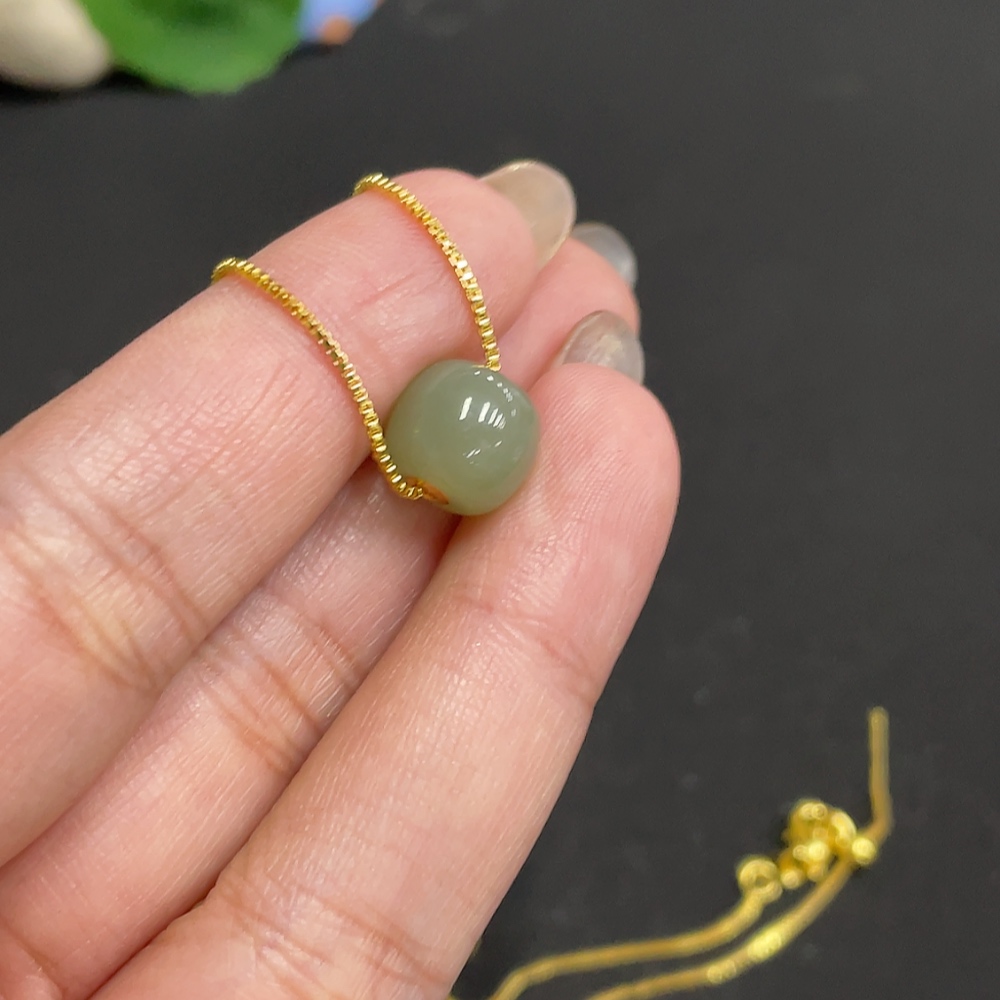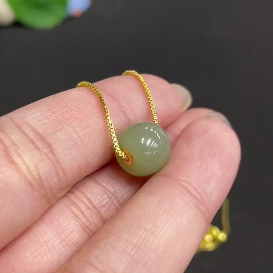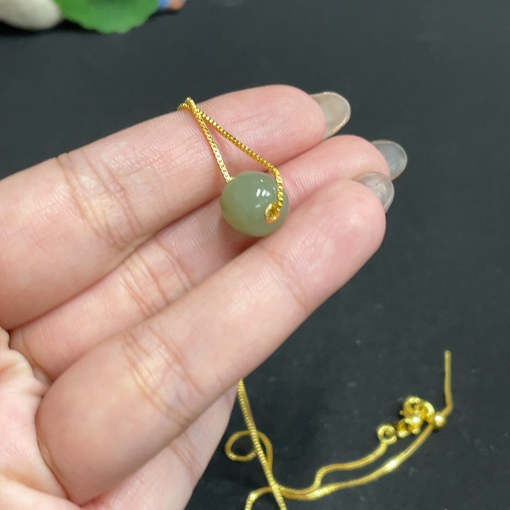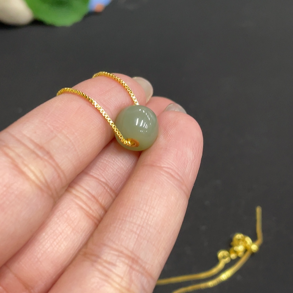 Hetian Jade Inlaid Pendant Single Bead Approx. 10mm Total Weight [Including Chain] 3.8g Pendant Gold Content 58% Rest Non-Gold