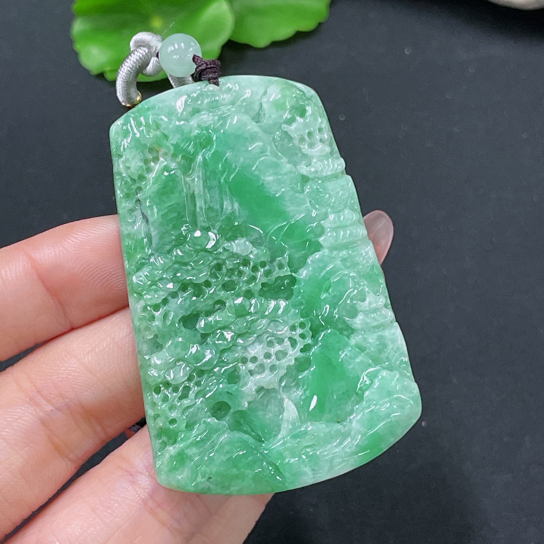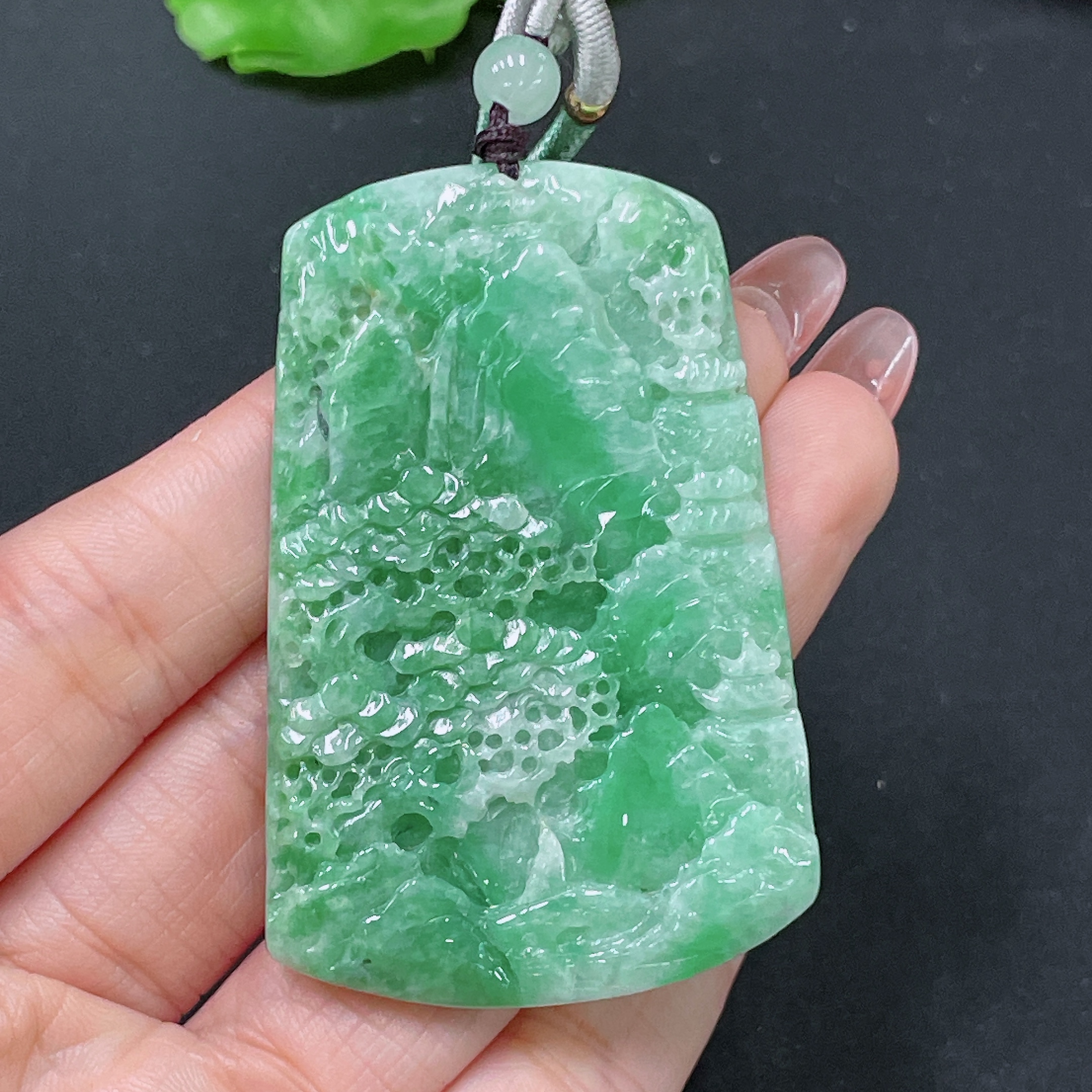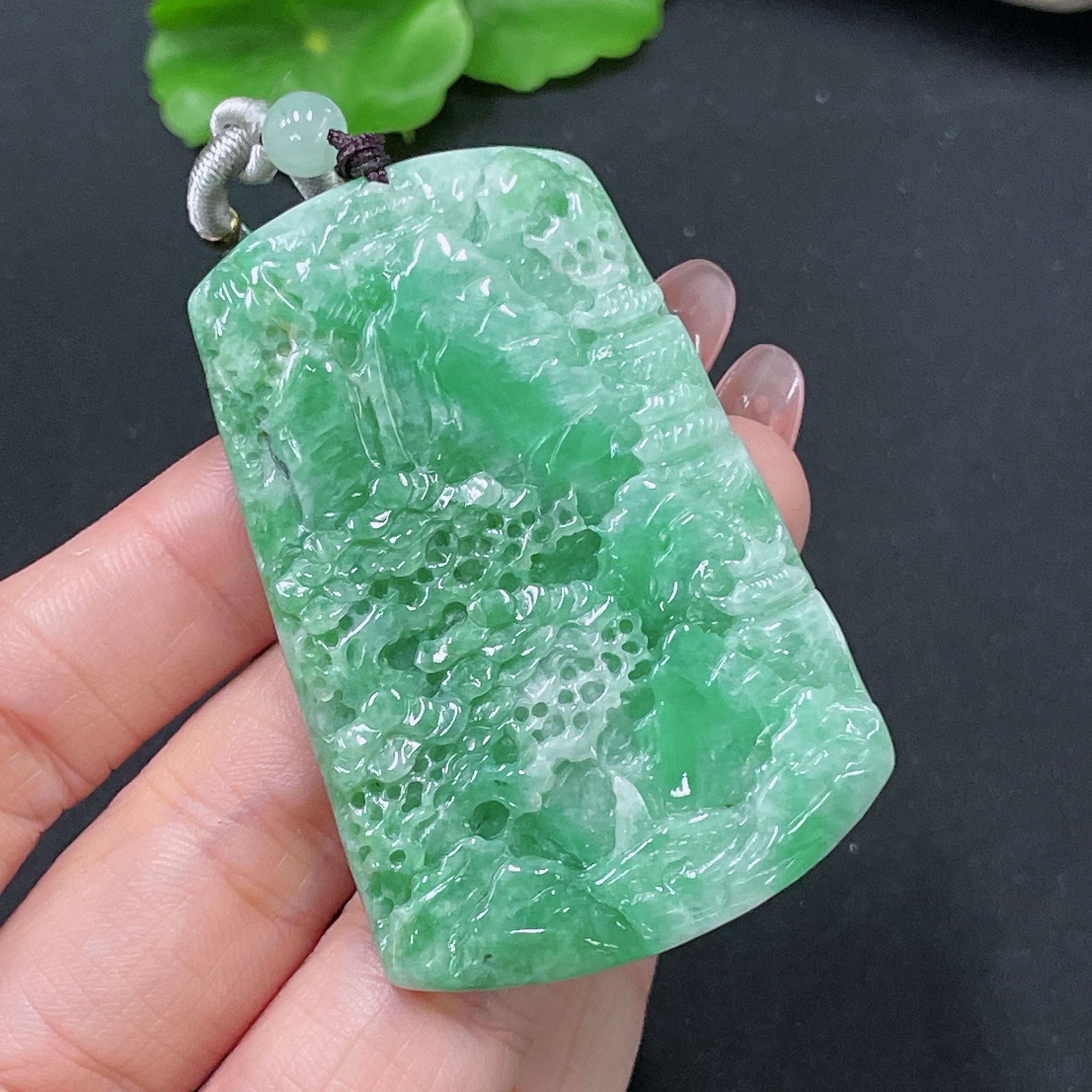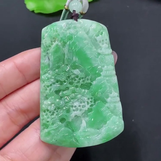 Jadeite Pendant Landscape with Non-A Beads Total Weight Approx. 31.31g