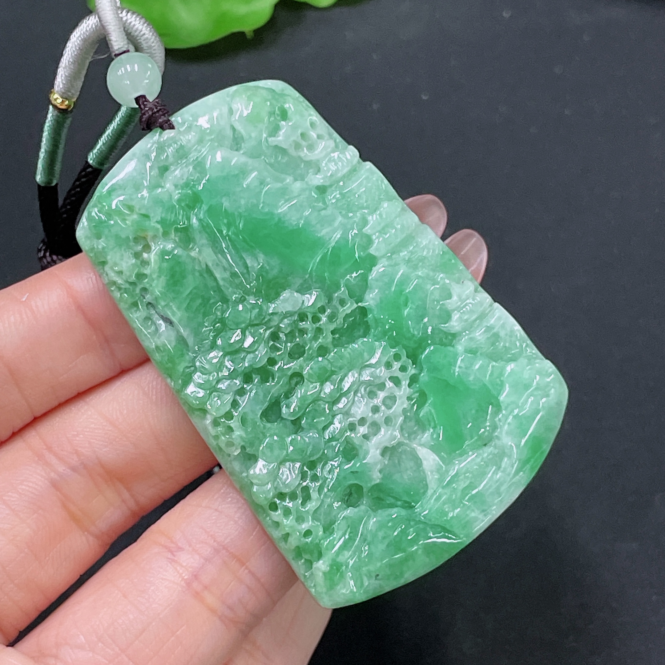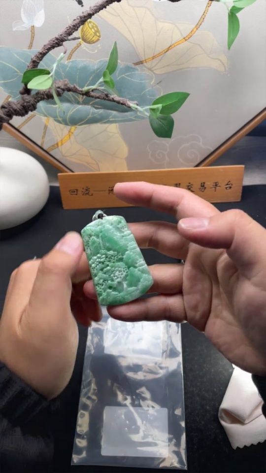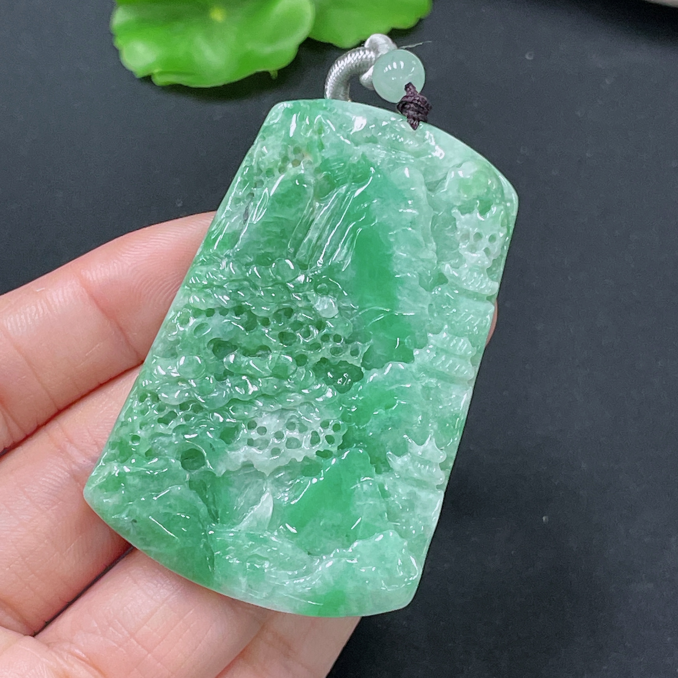 Jadeite Pendant Landscape with Non-A Beads Total Weight Approx. 31.31g