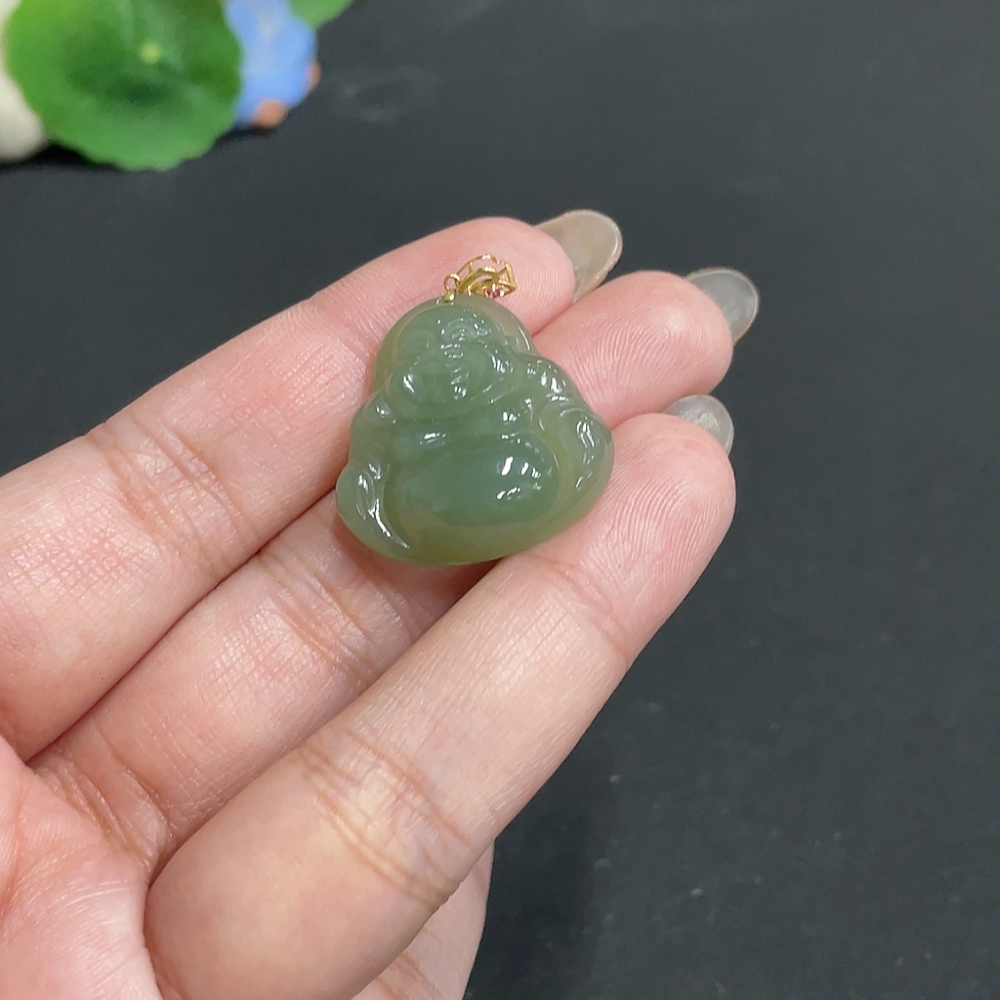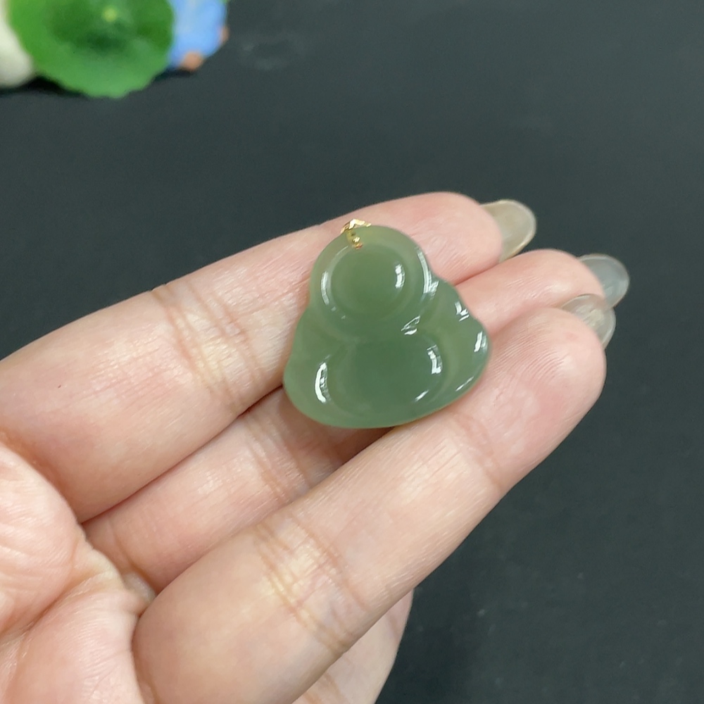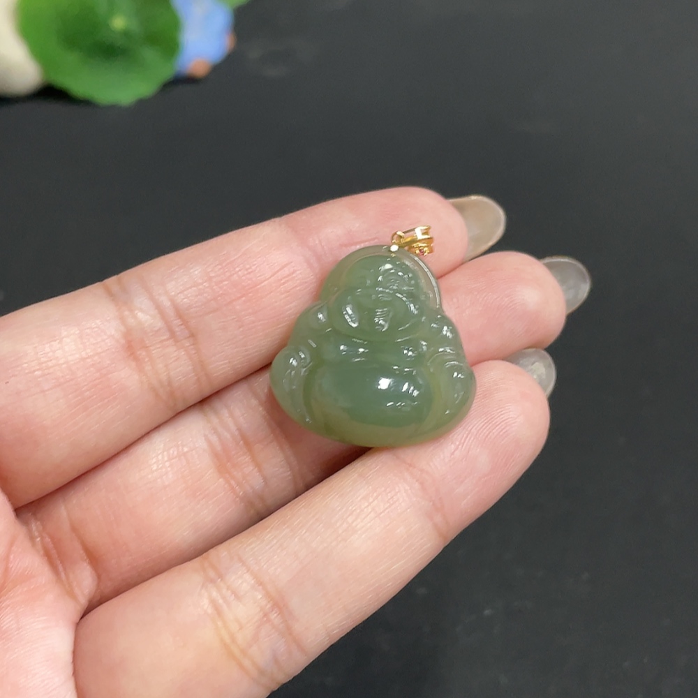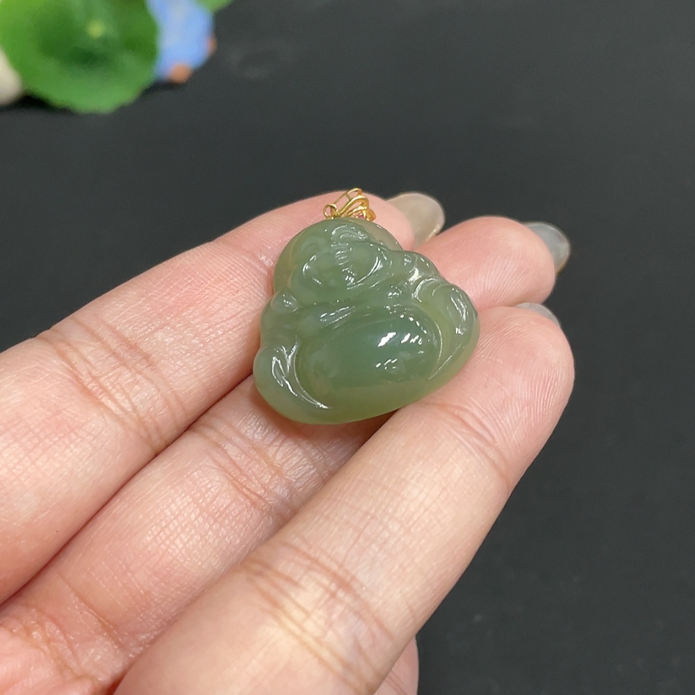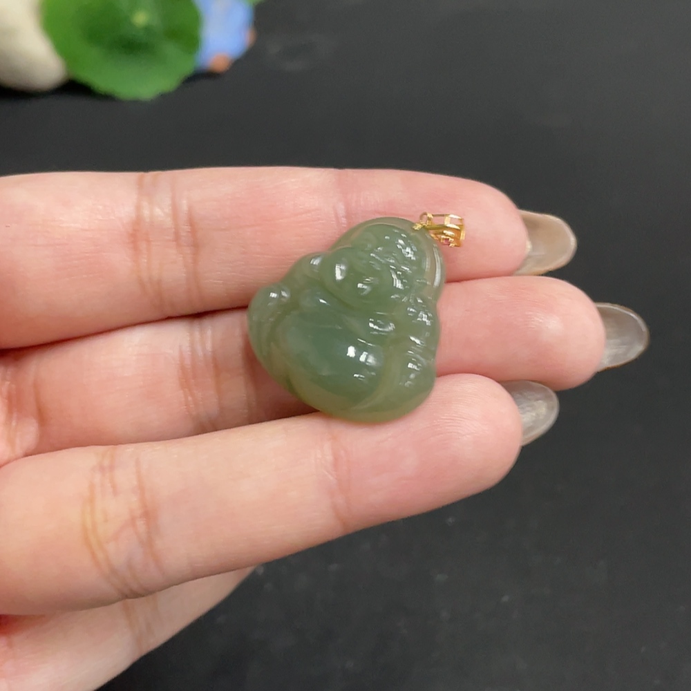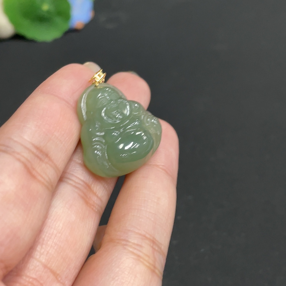 Hetian Jade Inlaid Pendant Buddha 18k Total Weight Approx. 6.3g