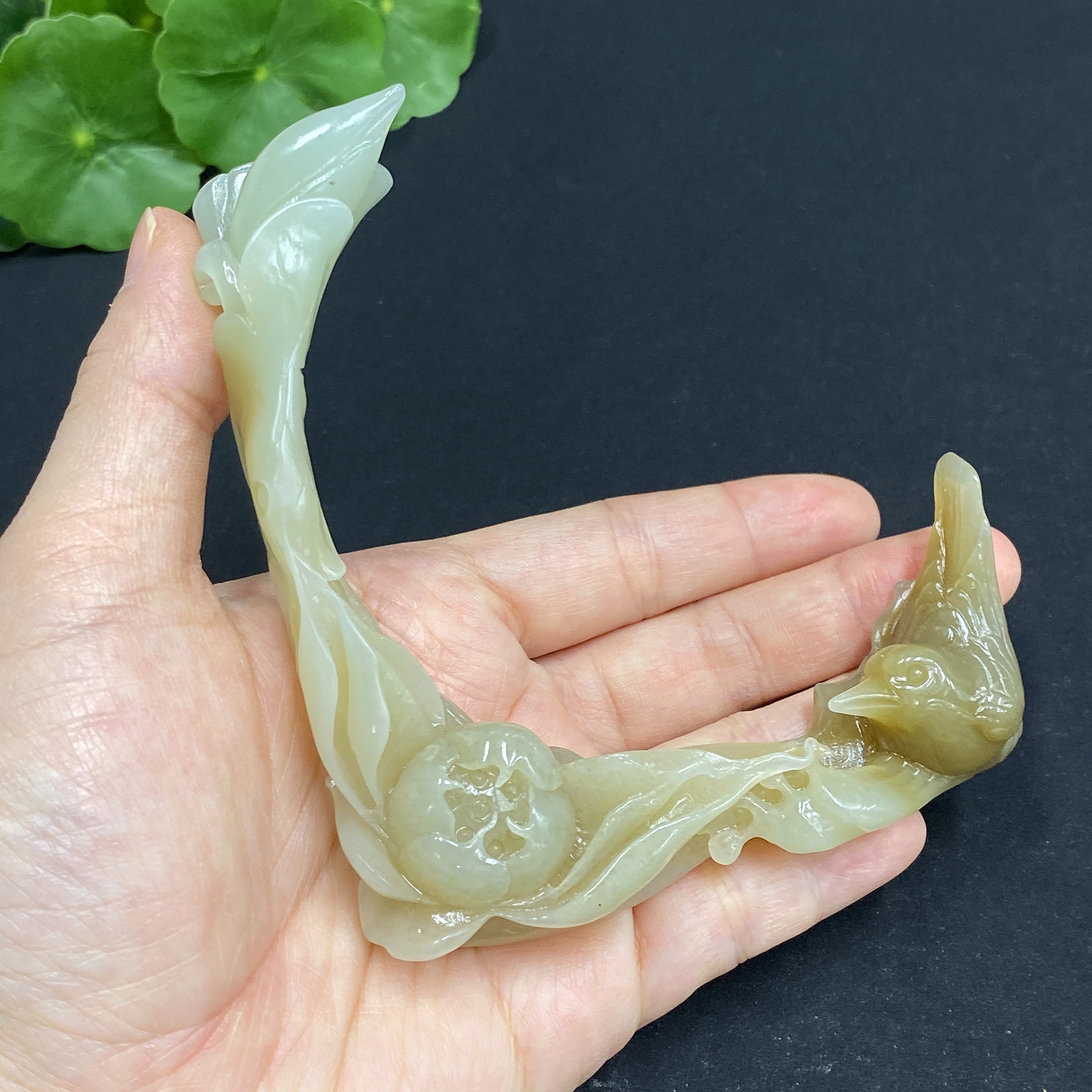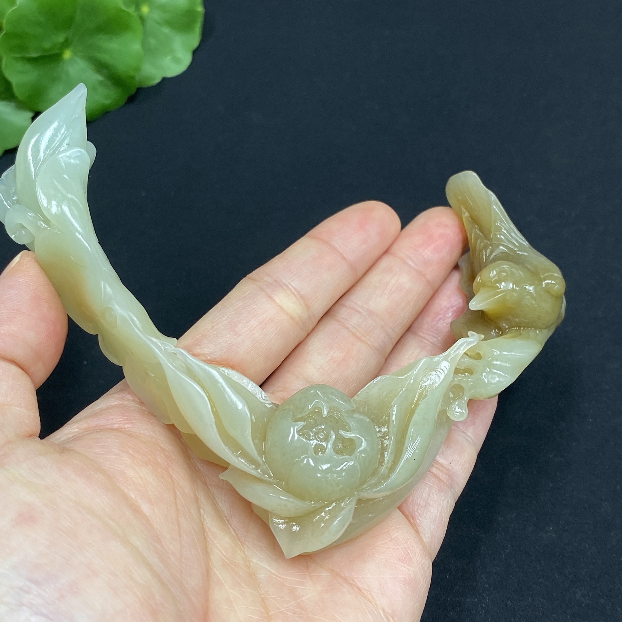 Hetian Jade Ornament Lotus Total Weight Approx. 84.9g