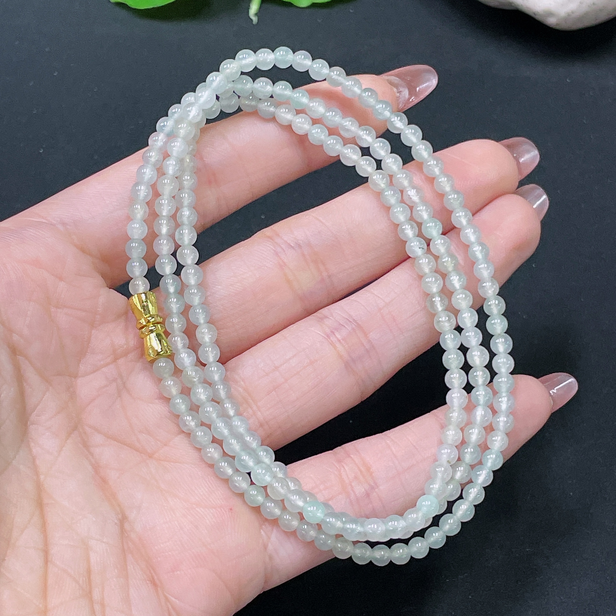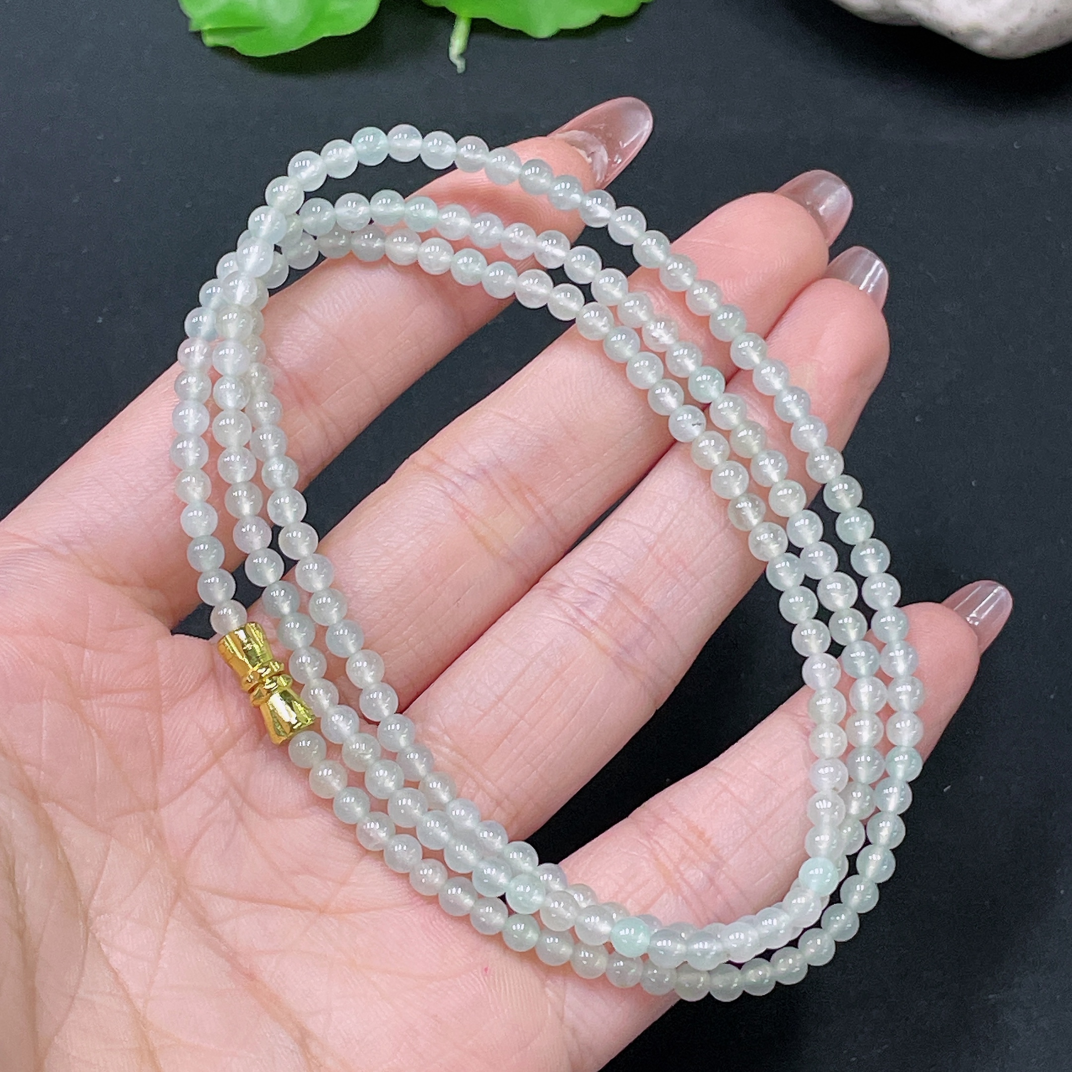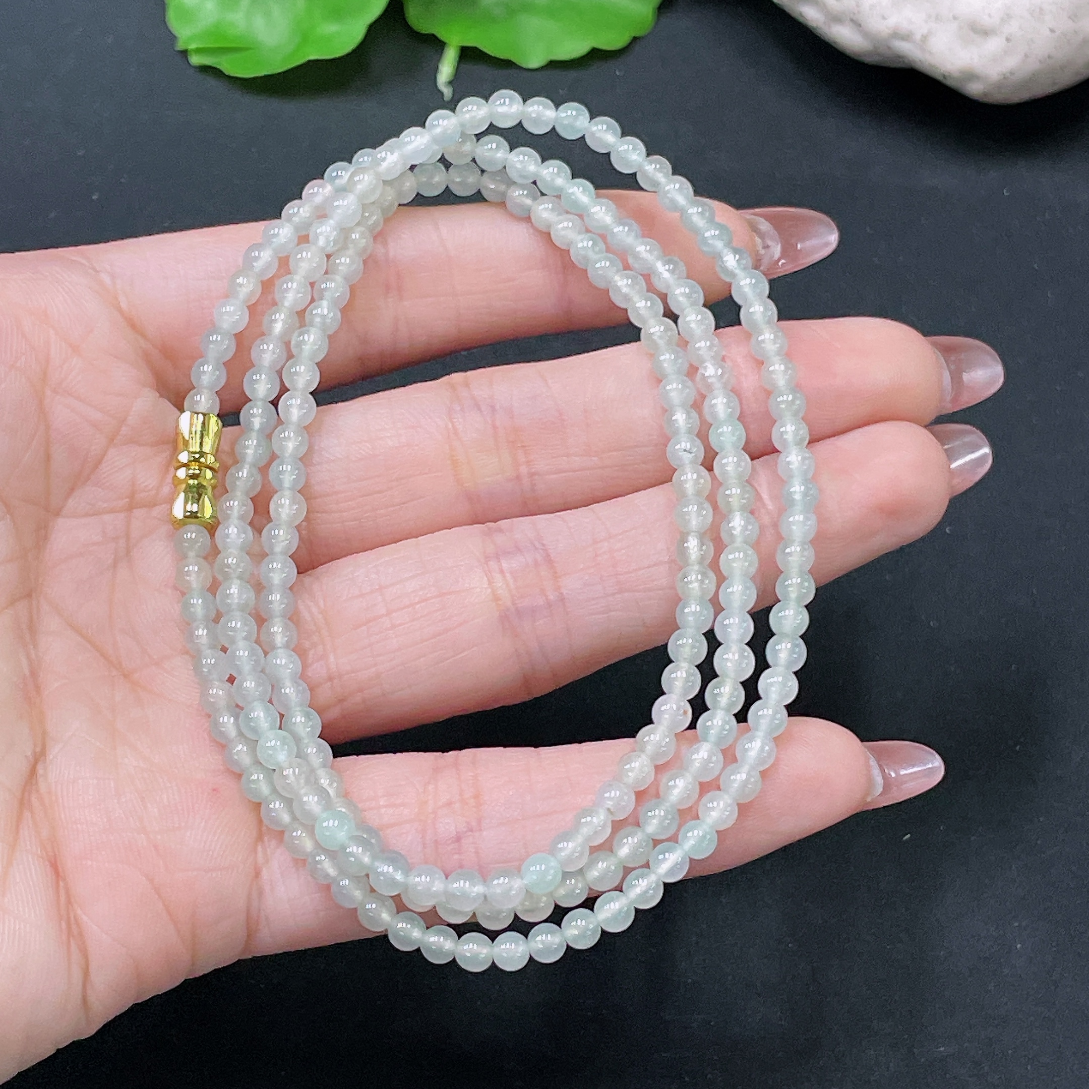 Jadeite Bead Necklace Approx. 3.5mm Non-Gold Total Weight Approx. 15.28g
