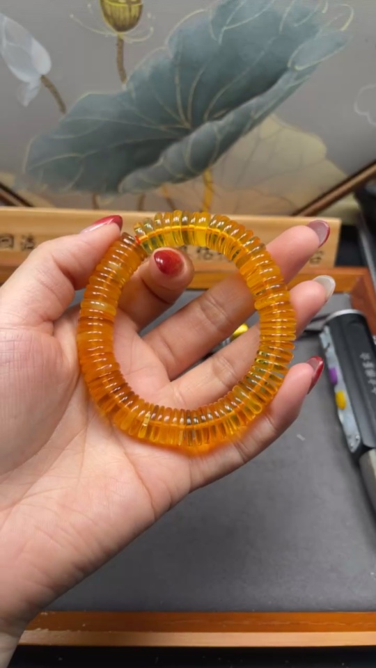 Amber Beeswax Bracelet, Total Weight Approx. 18.01g, Size About 11.2mm