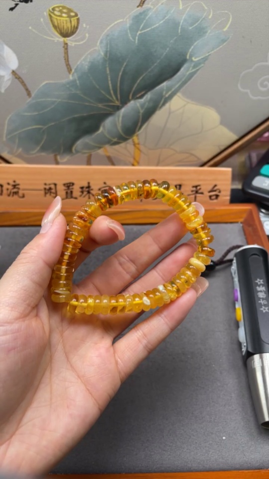 Amber Beeswax Bracelet Total weight about 12.28g Size about 9.1mm