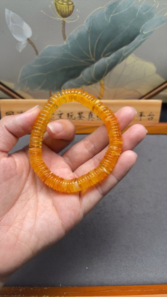 Amber Beeswax Bracelet, Total Weight Approx. 14g, Size About 9.9mm