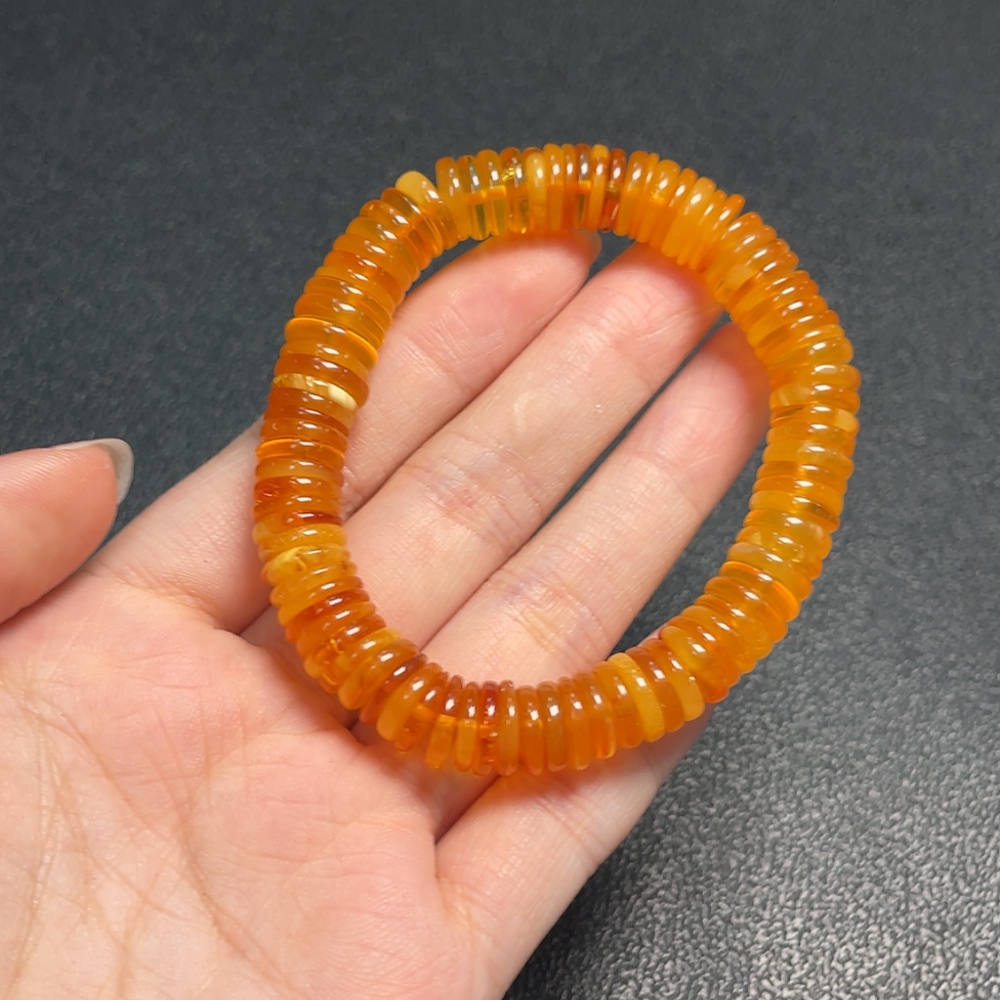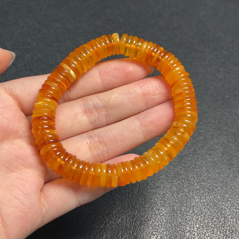 Amber Beeswax Bracelet, Total Weight Approx. 13.70g, Size About 9.9mm