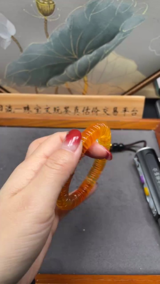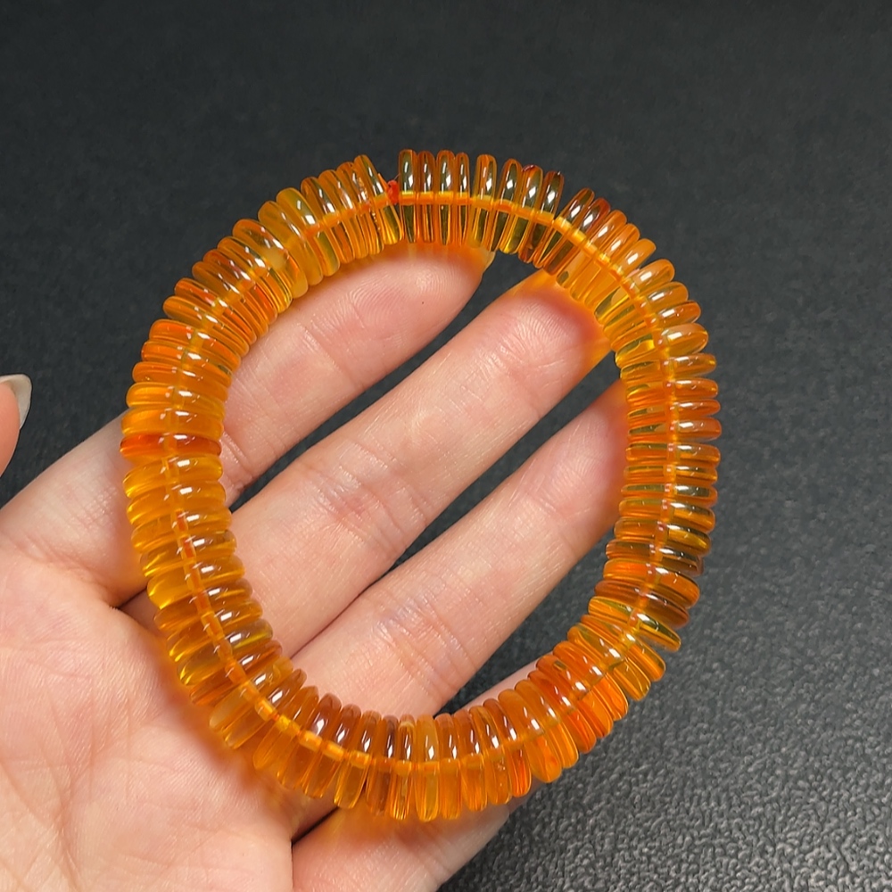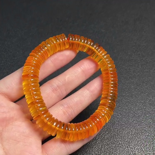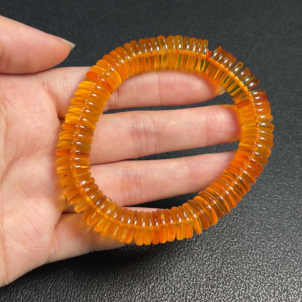Amber and beeswax bracelet, total weight about 18.11g, bead size about 11.1mm