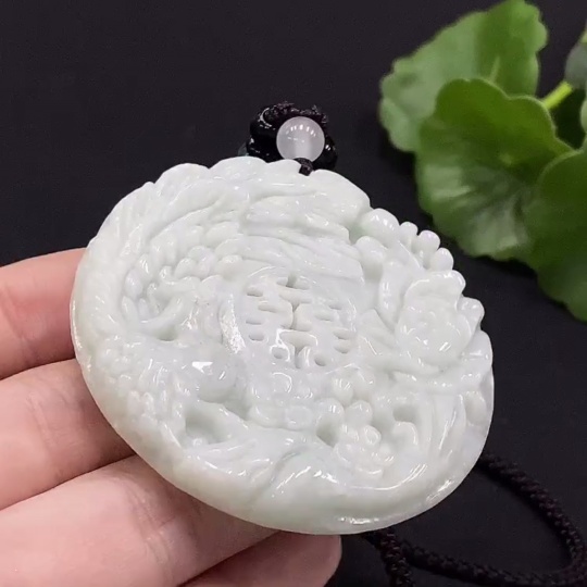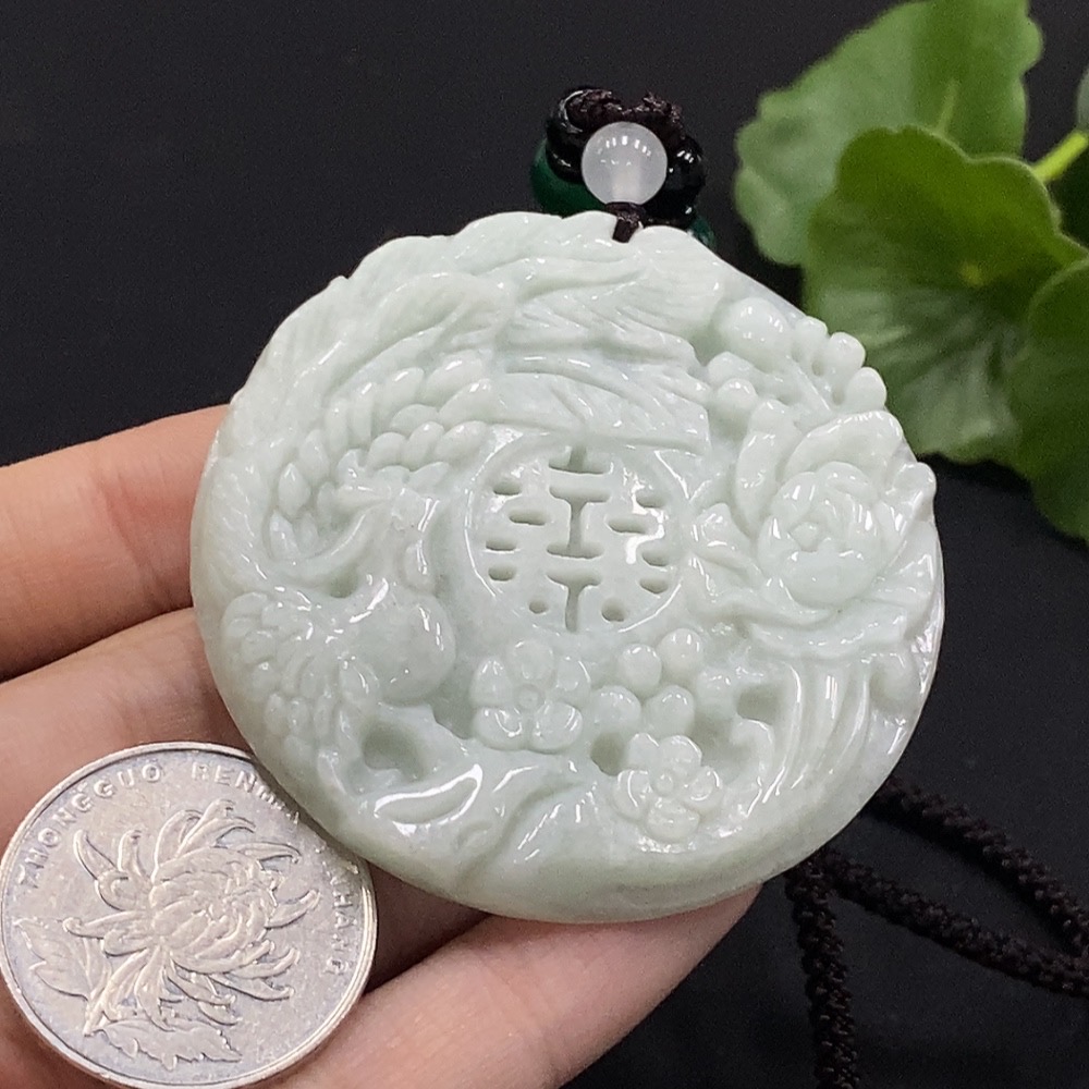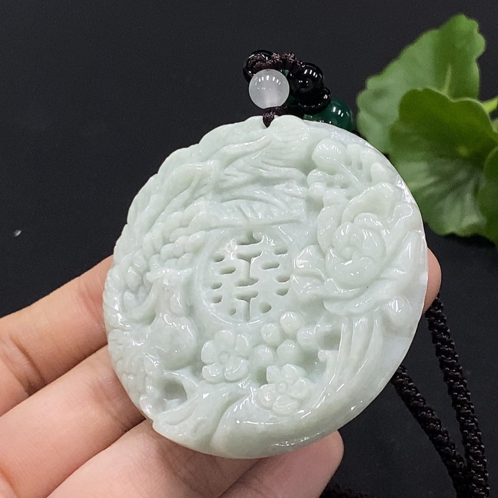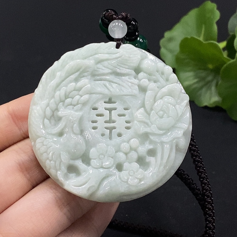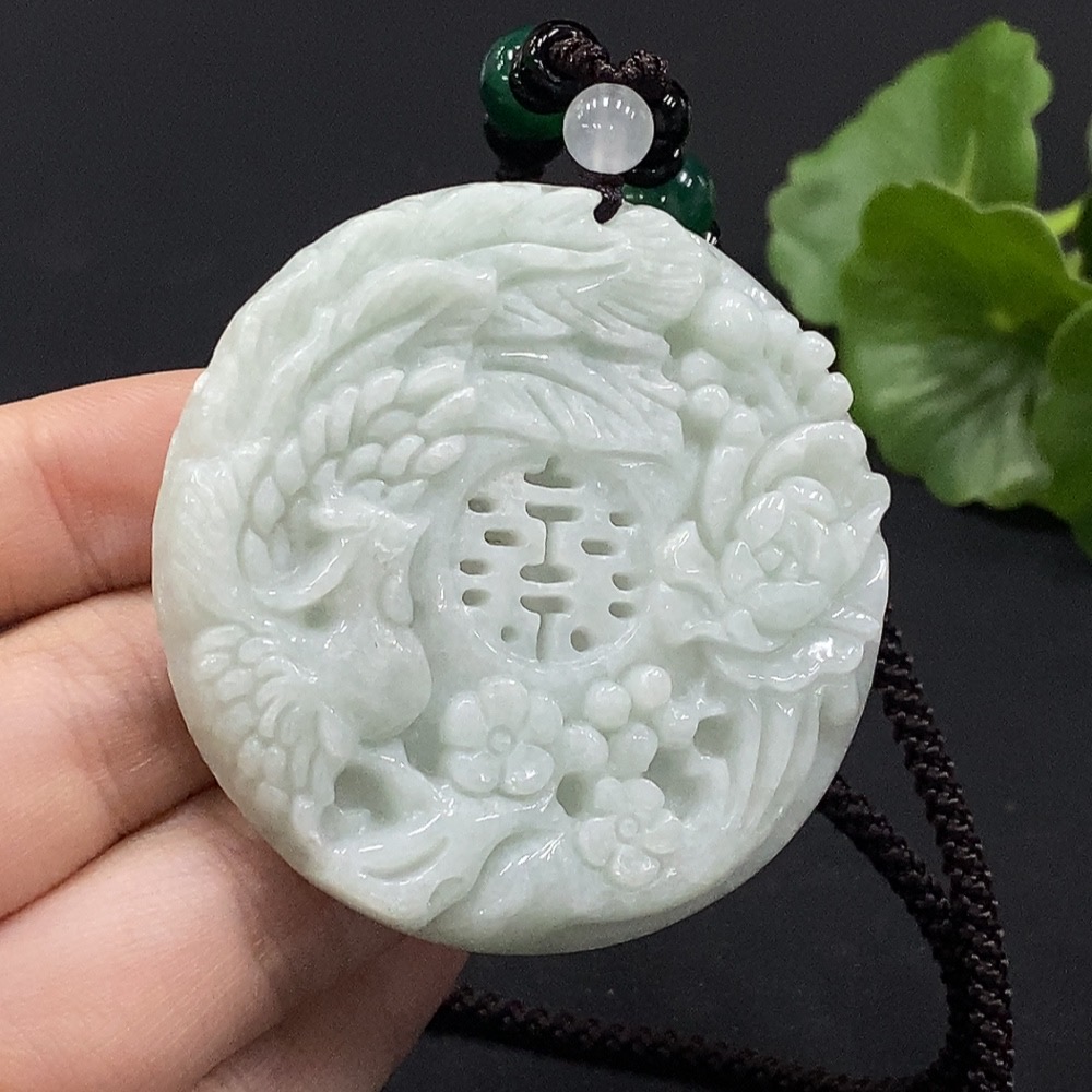 Jadeite Phoenix and Peony Pendant