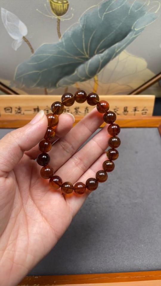 Amber and Beeswax Bracelet, Total Weight Approx. 9.77g, Size About 9.4mm
