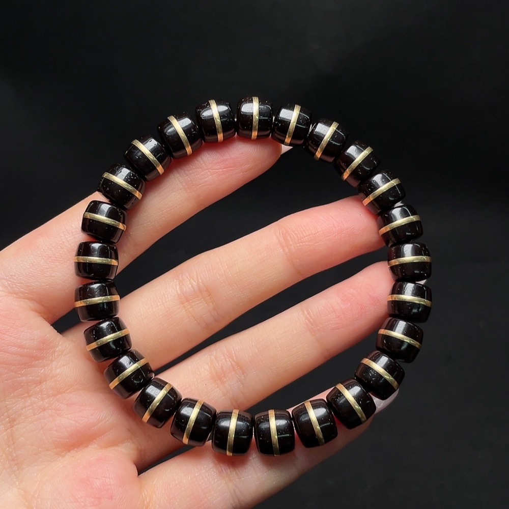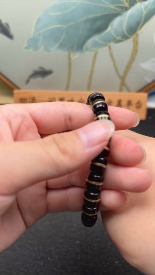 Coconut shell bead bracelet, total weight approx. 25.8g, size around 9mm