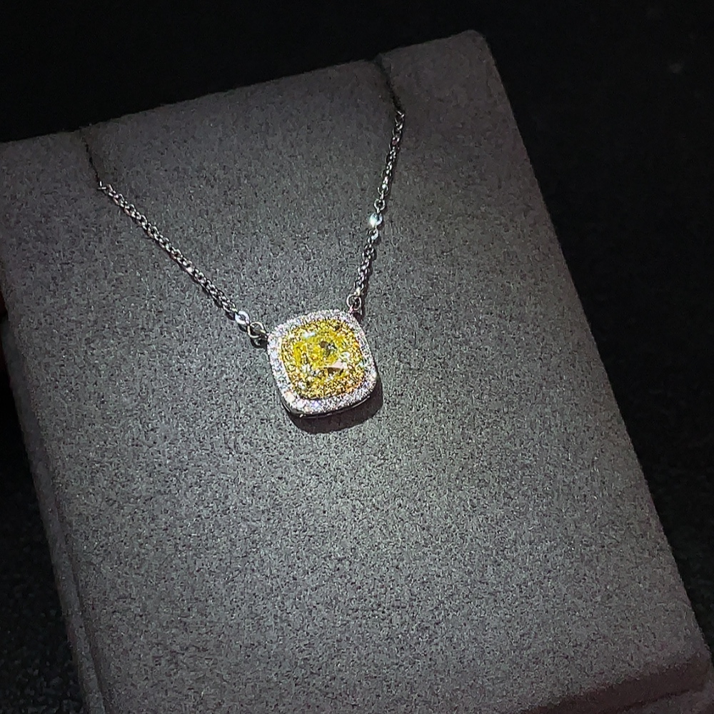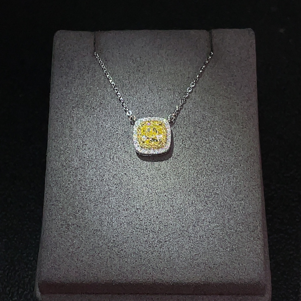 Diamond Necklace 18K Gold Color Origin Undetermined Bottom Color Lining Yellow Accent Stones Natural Origin Uncertain Total Weight Approx. 3.44g Markings D1.013ct d0.249ct