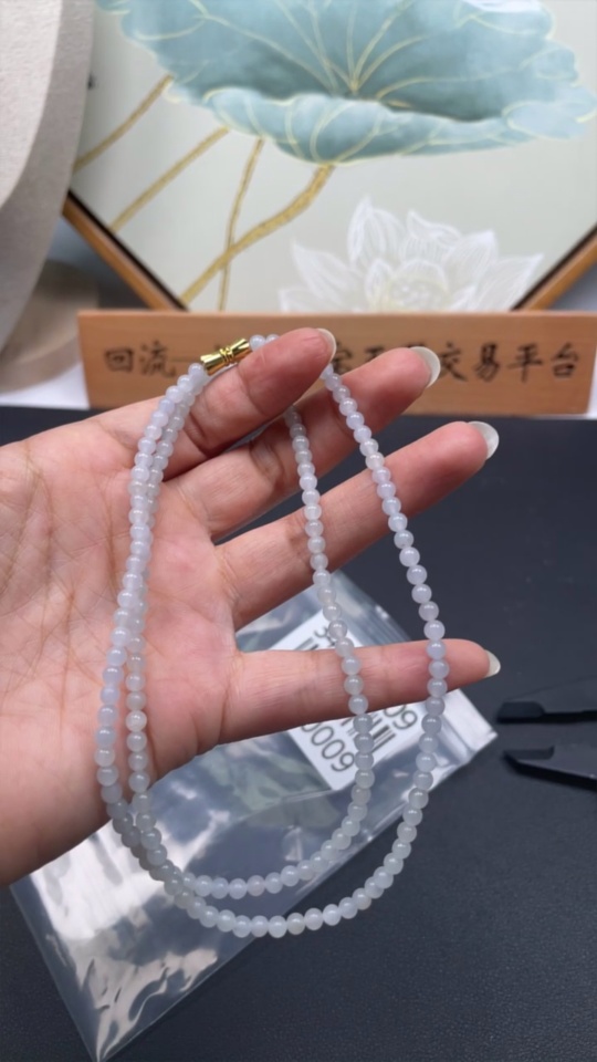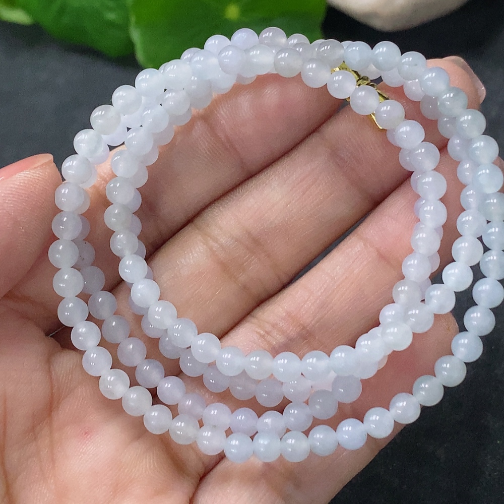 Jadeite Bead Necklace Approx. 3.8mm Non-Gold Total Weight Approx. 15.84g