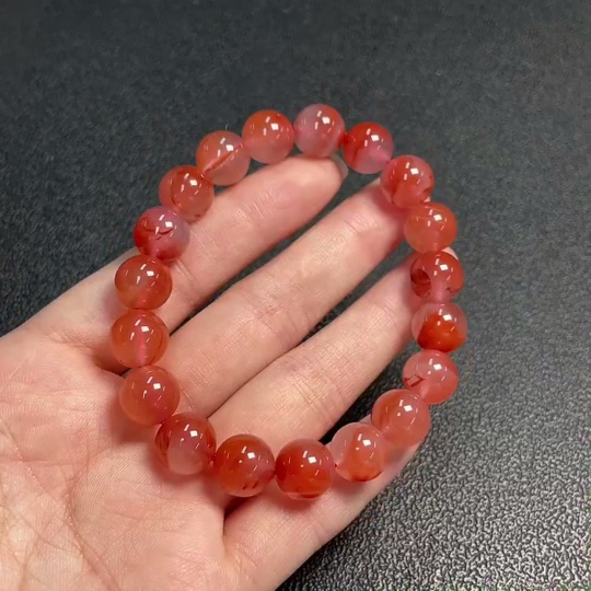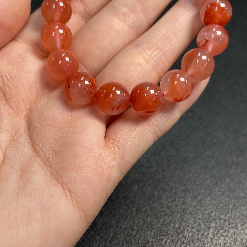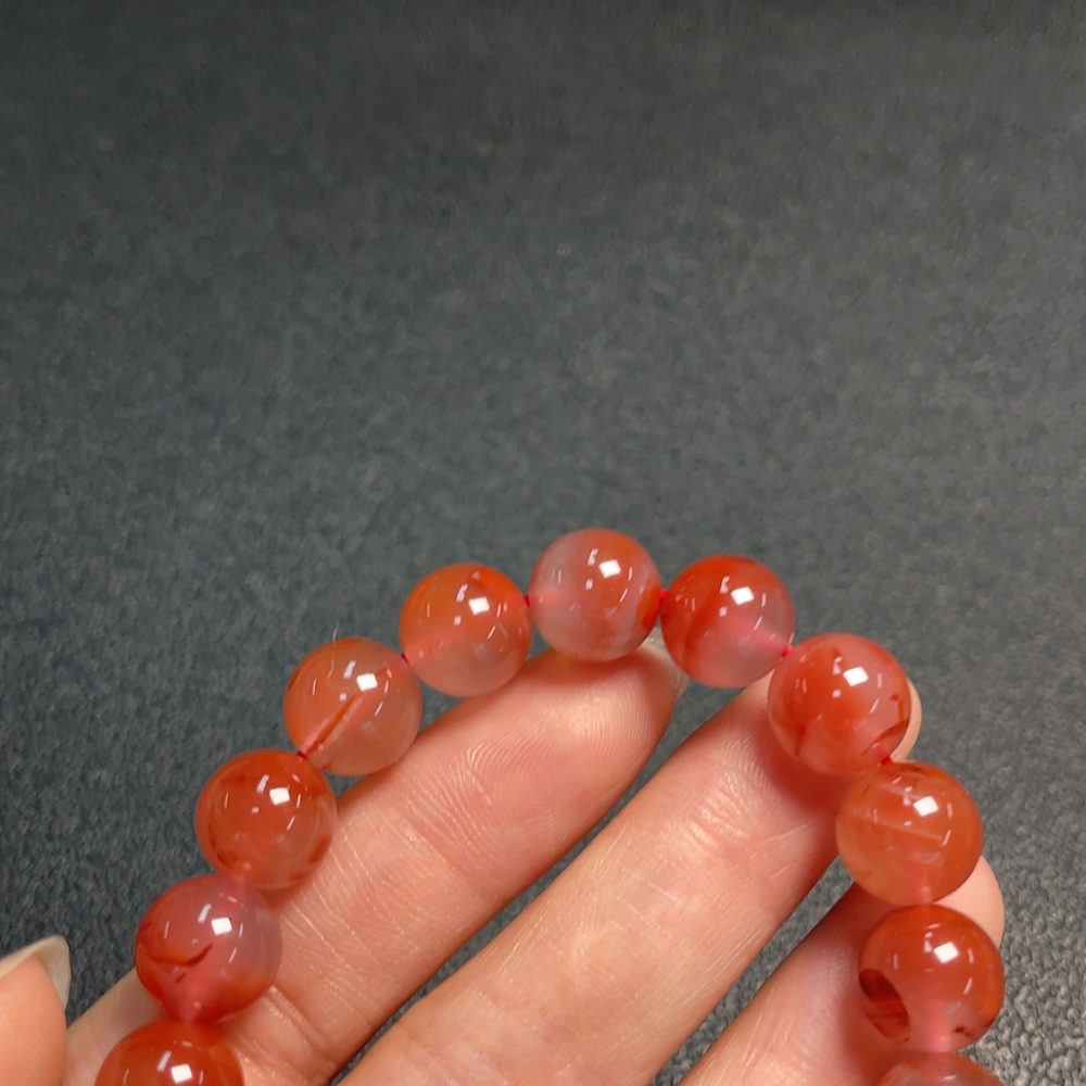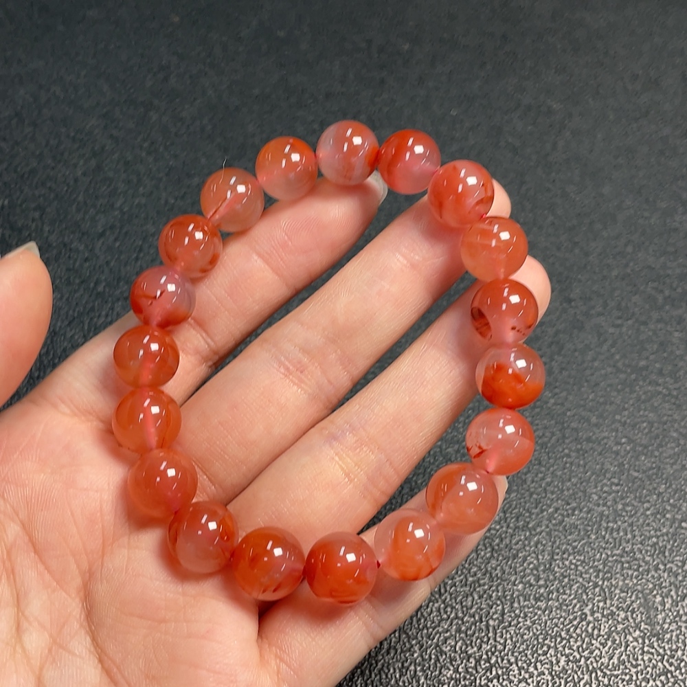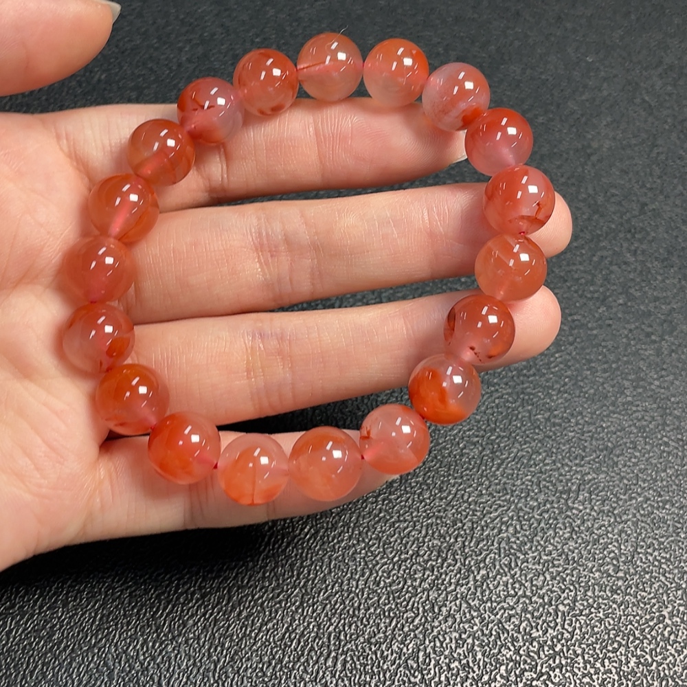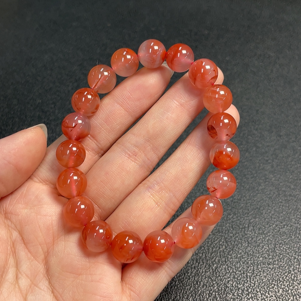 Red Agate Bracelet with Visible Organic Matter, Total Weight Approx. 31.58g, Size About 10.6mm