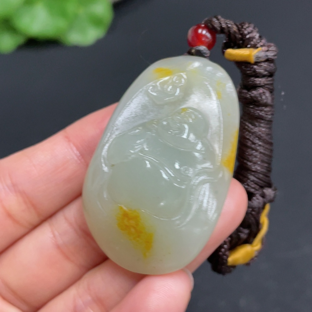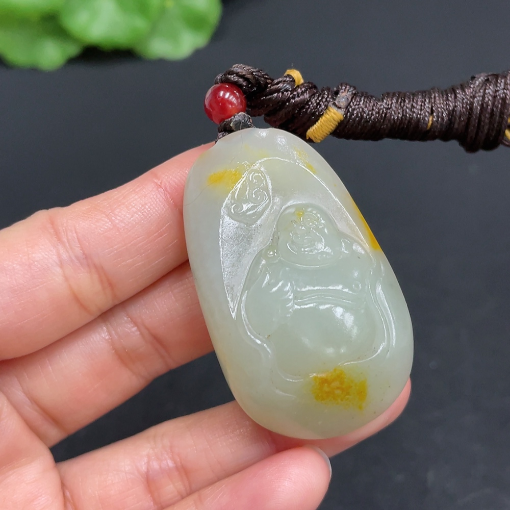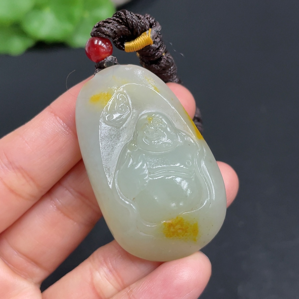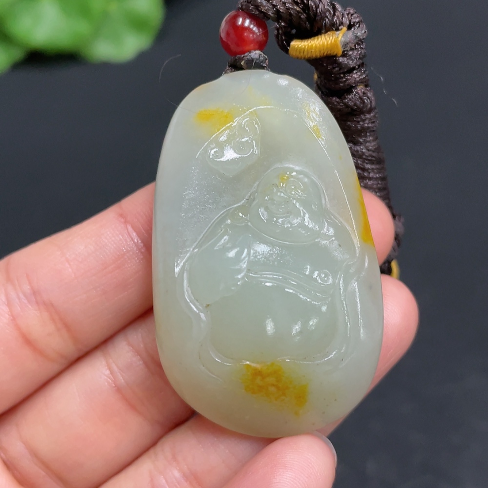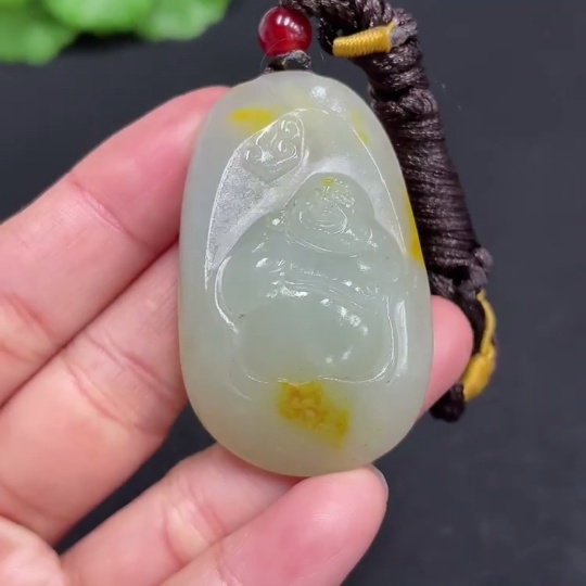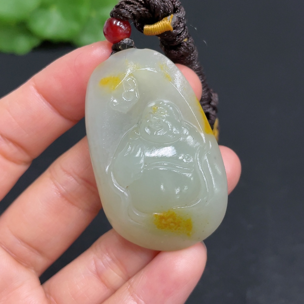 Hetian Jade Pendant - Buddha, Total Weight (Including Rope): Approx. 28g, Undetermined Skin Color Origin, Matching Beads Not Hetian Jade