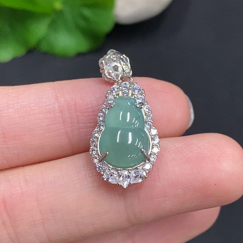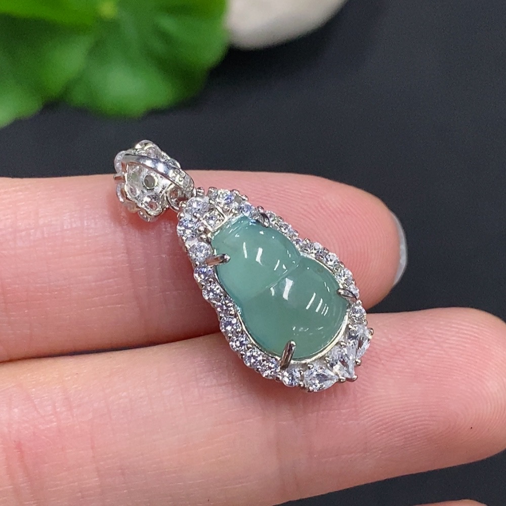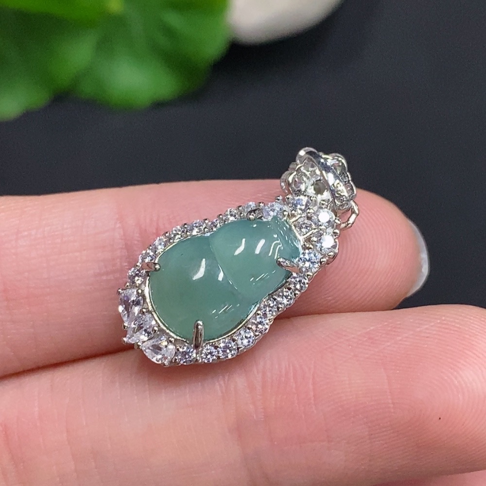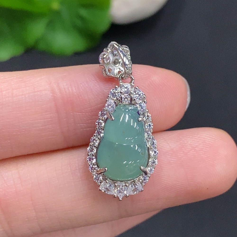 Jadeite Gourd Inlaid Pendant Non-Gold Inlaid Total Weight Approximately 2.5g