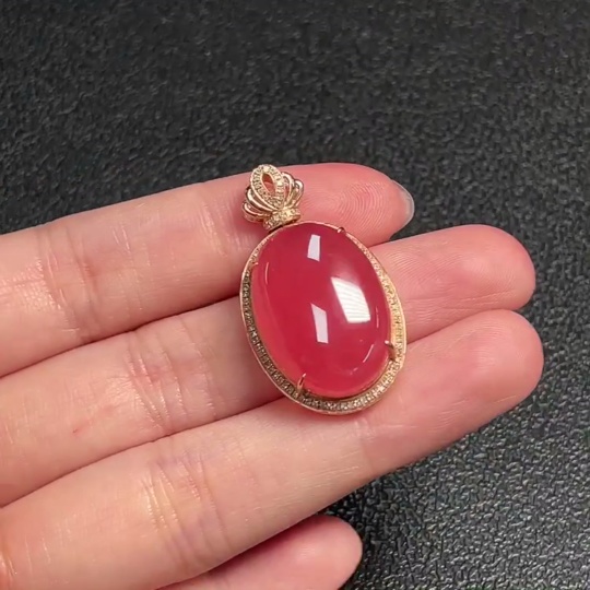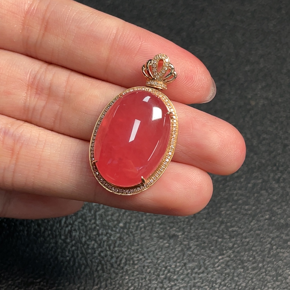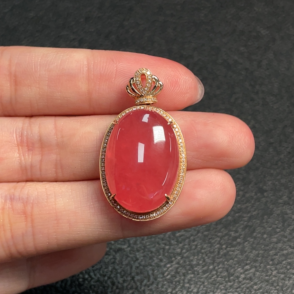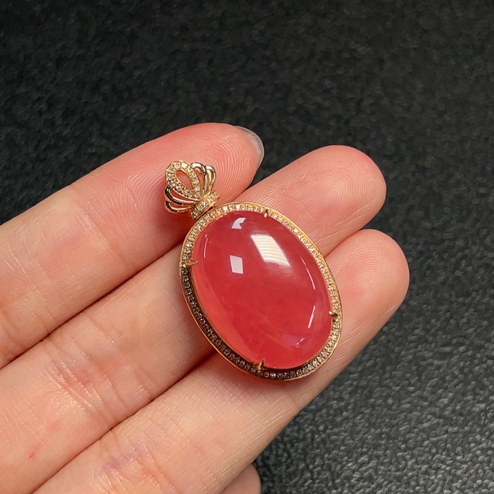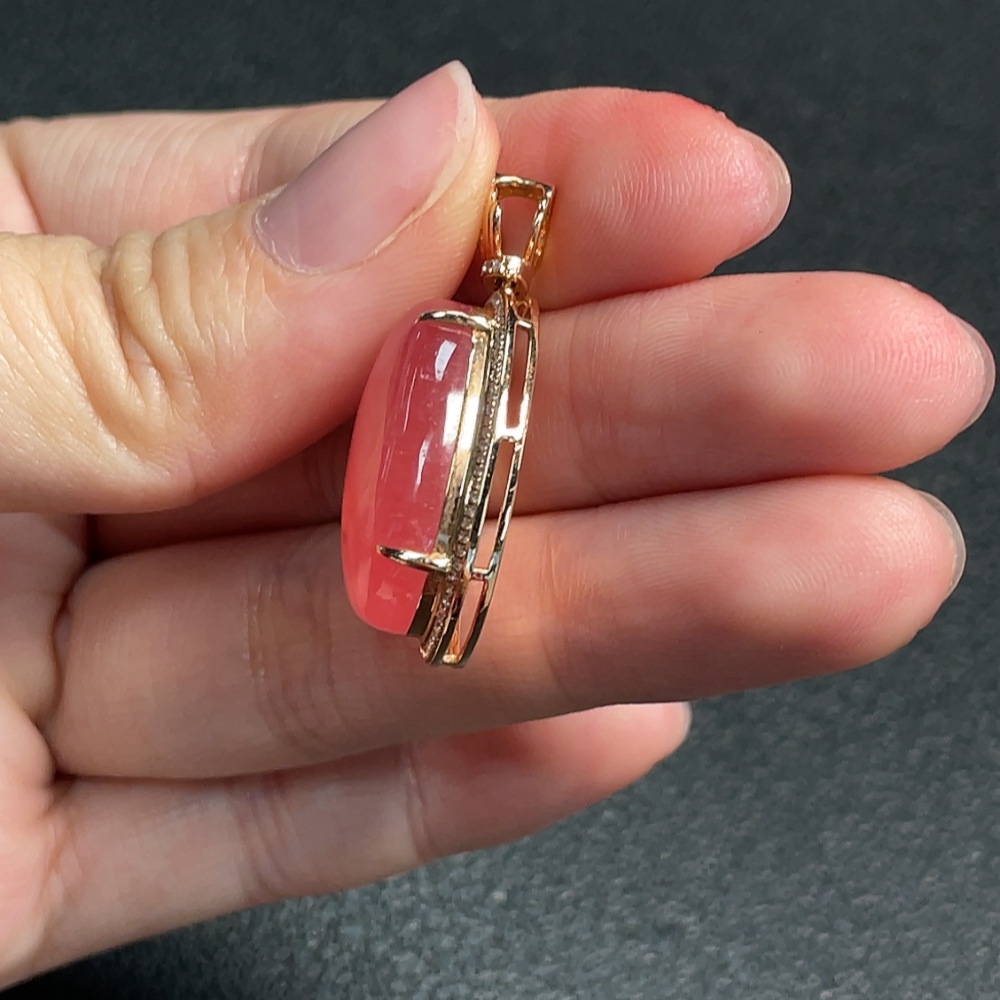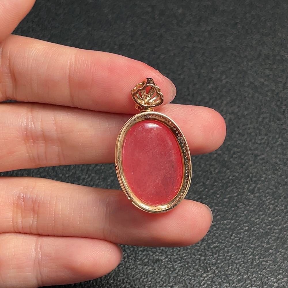 Rhodochrosite Pendant 18K with Diamond Accents, Total Weight Approximately 7g