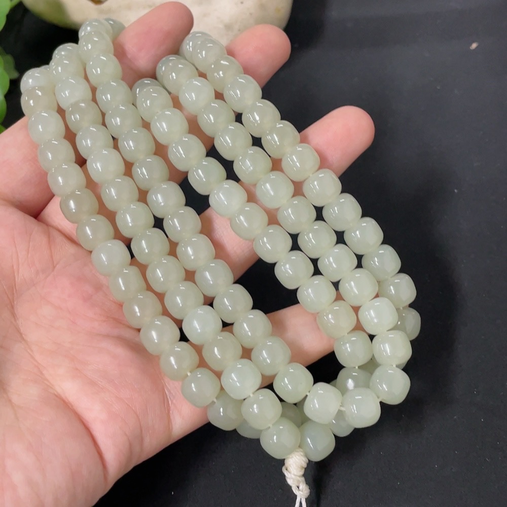 Hetian Jade Bead Necklace, Approx. 8mm, Total Weight About 94g