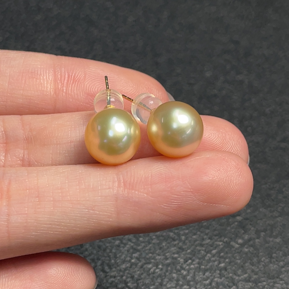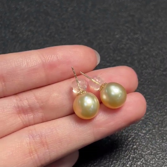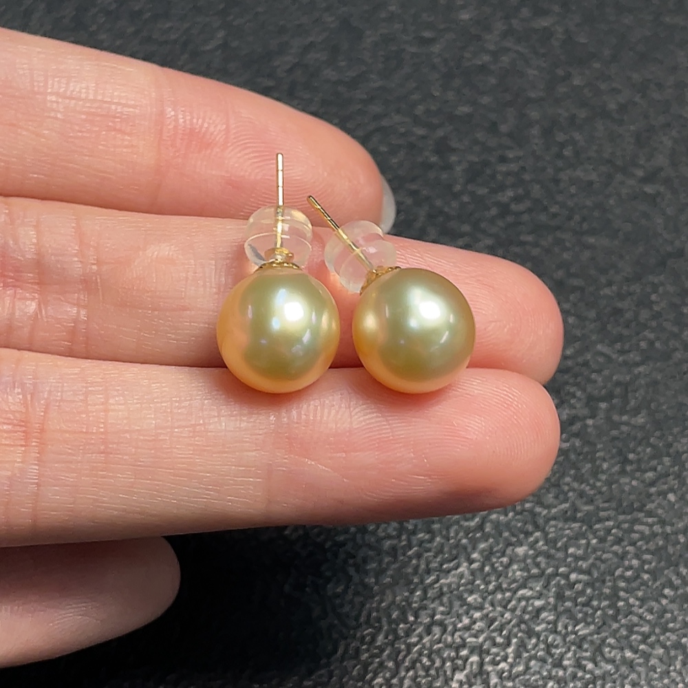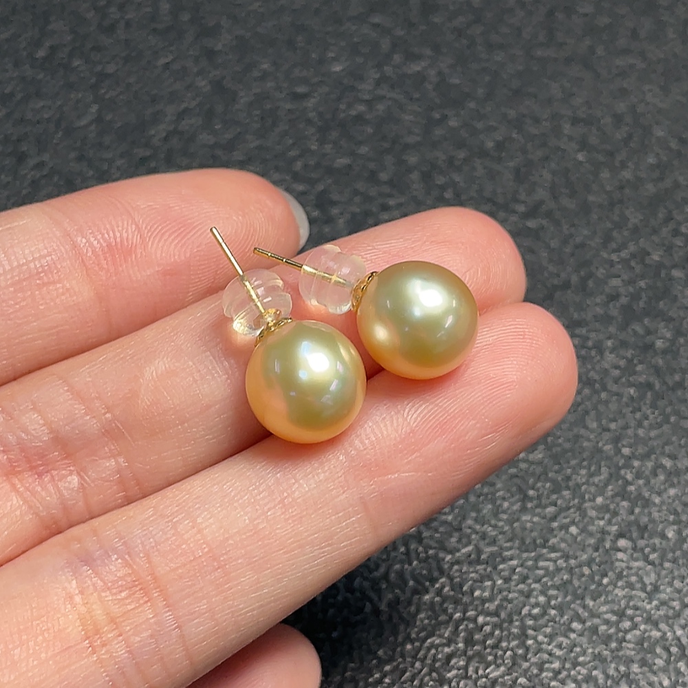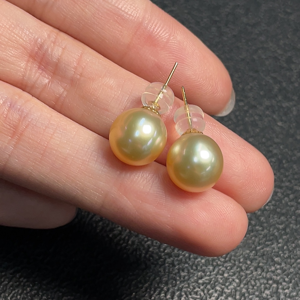 18k seawater pearl earrings, color origin undetermined, total weight approximately 3.17g, size about 9.9mm