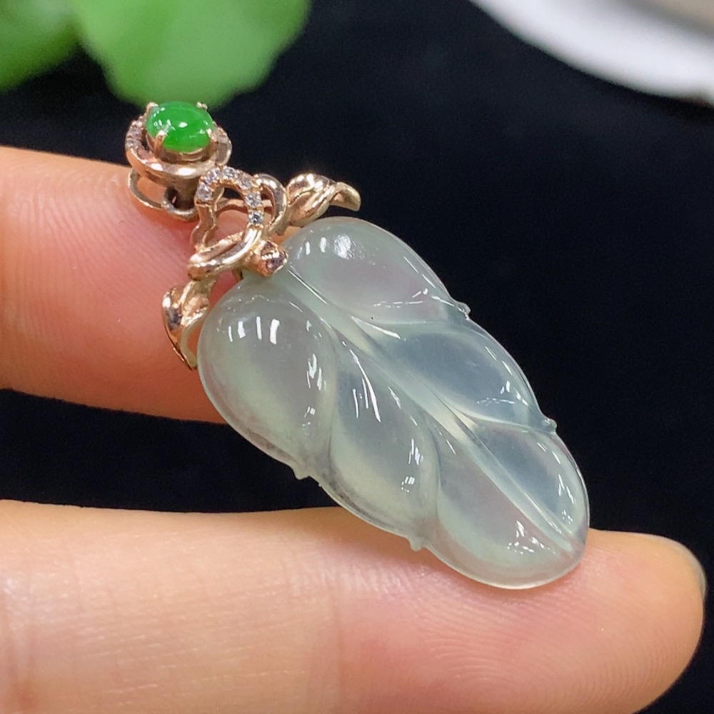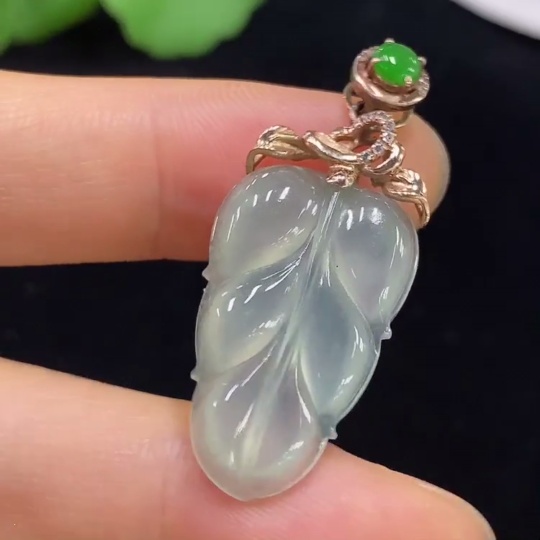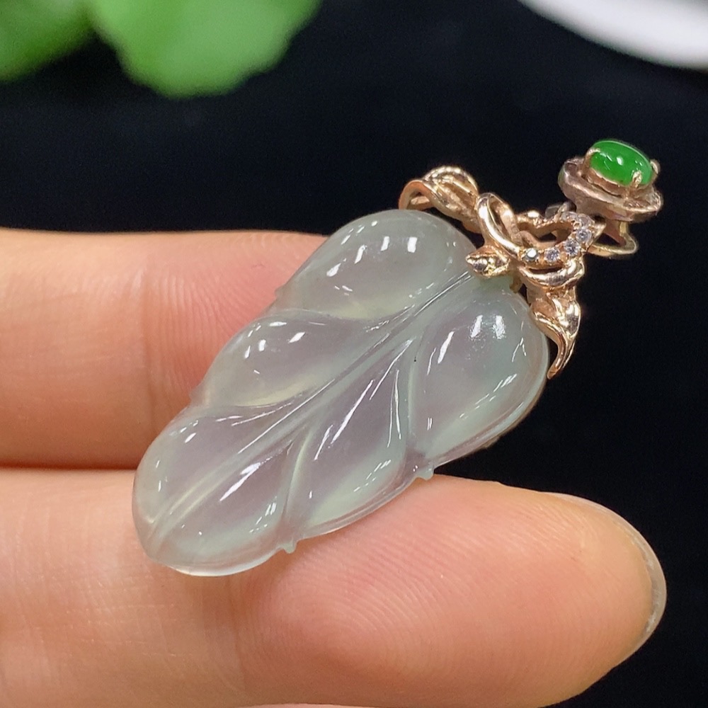 Jadeite Leaf Pendant AU50% Total Weight Approx. 3.91g Non-Diamond