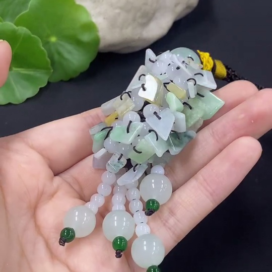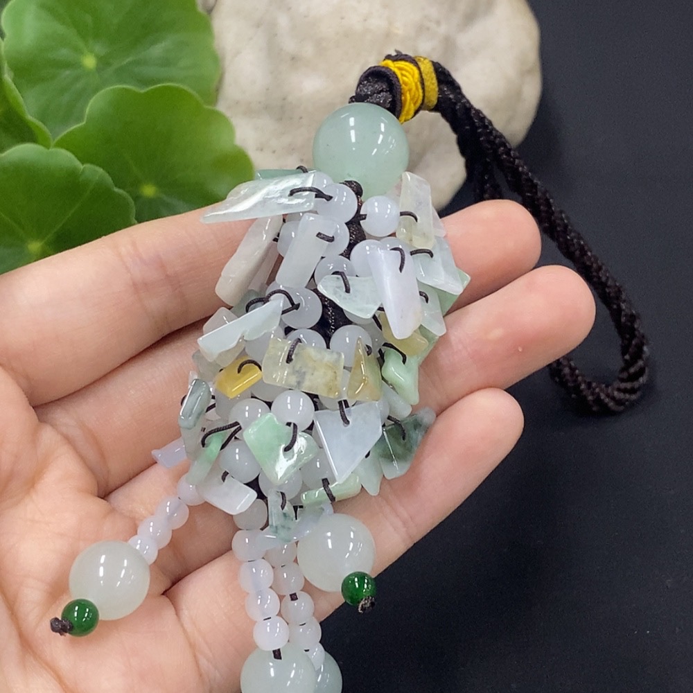 Jadeite Pendant with Non-A Grade Beads, Inclusions Present, Total Weight Approximately 36.29g