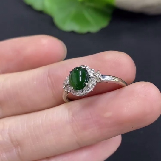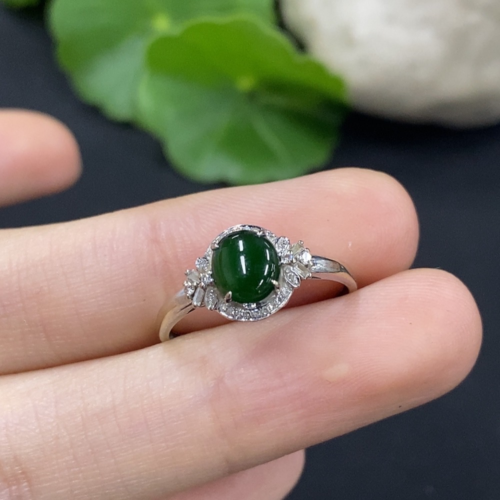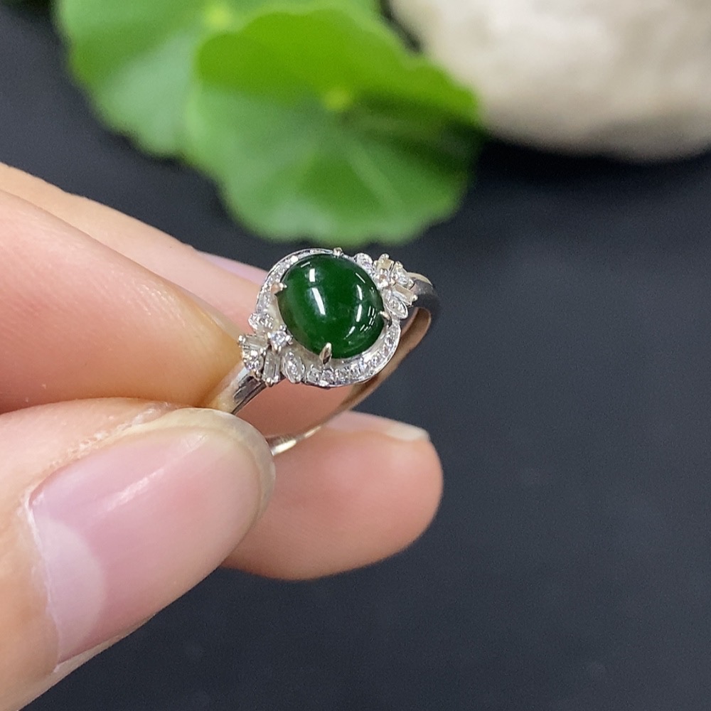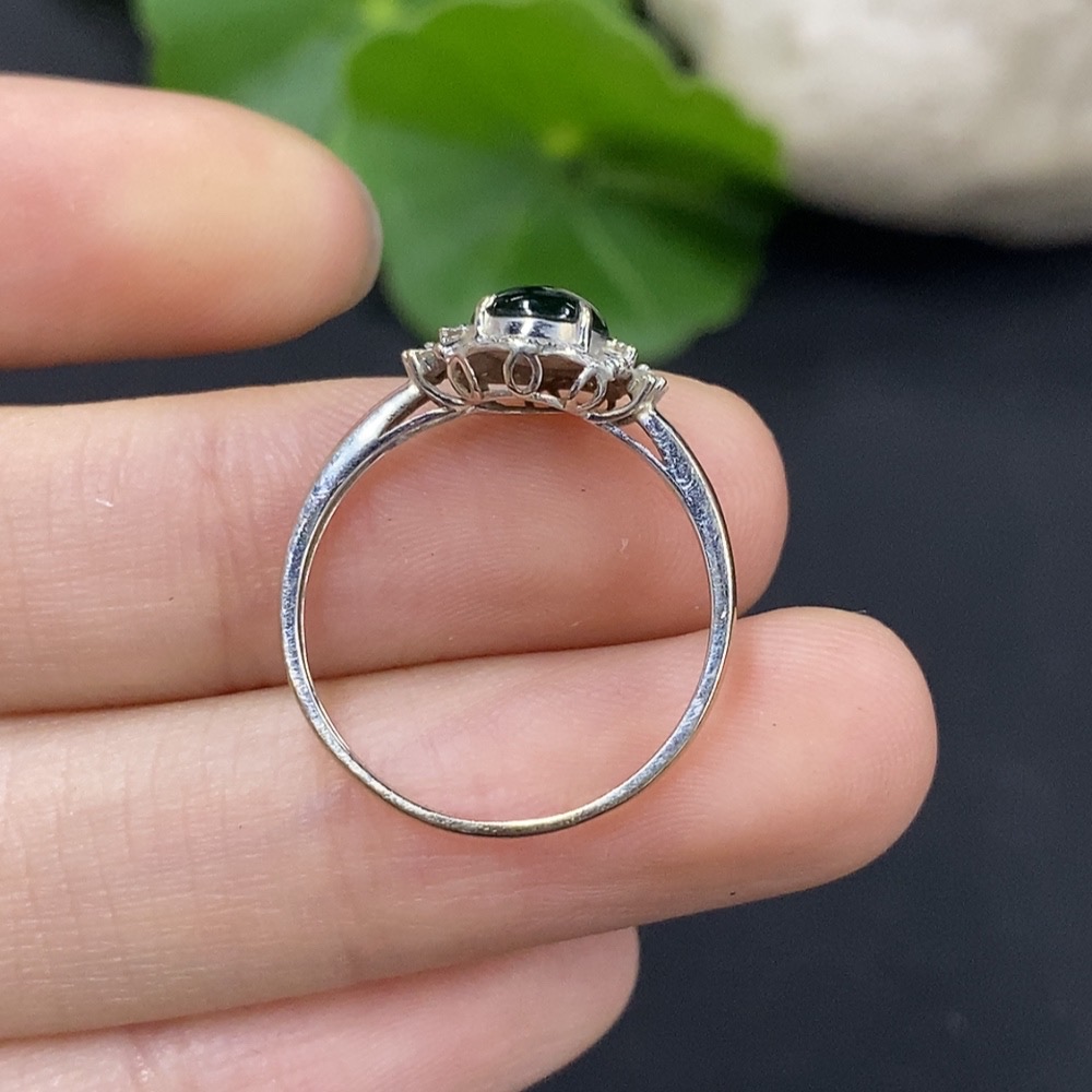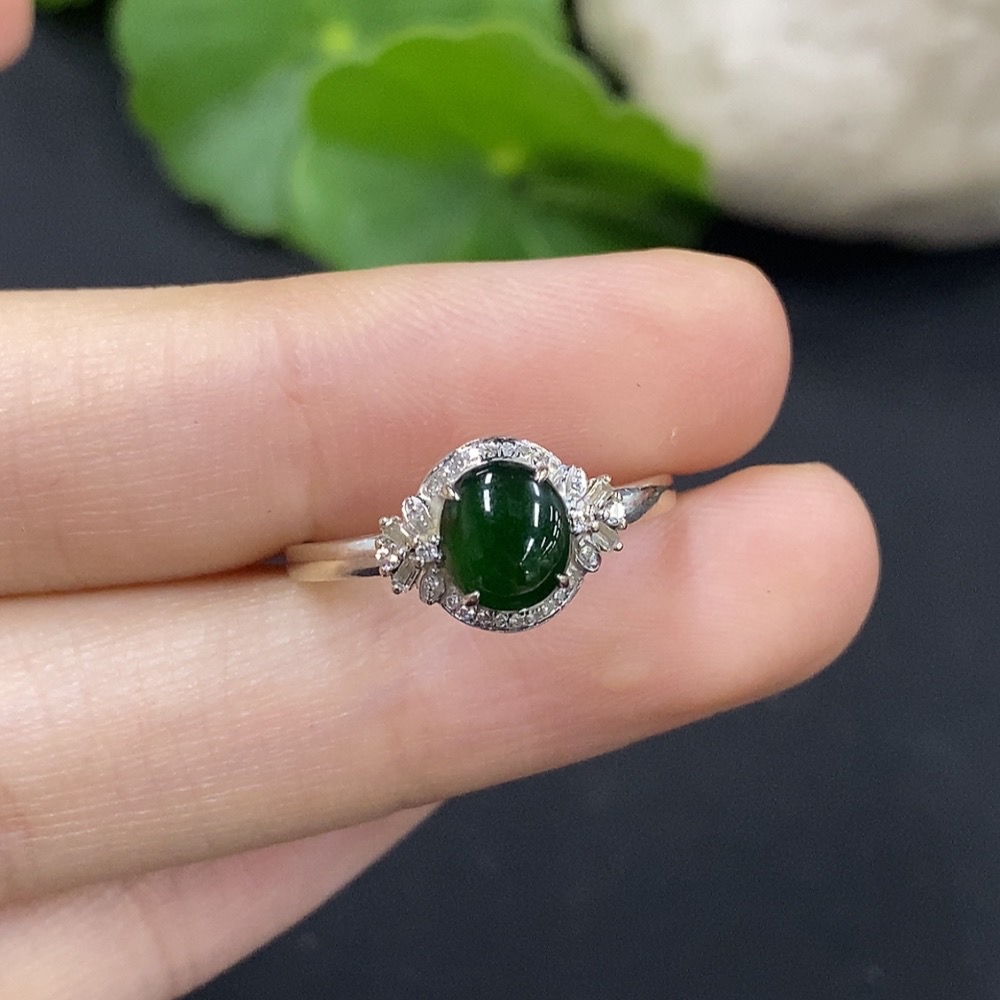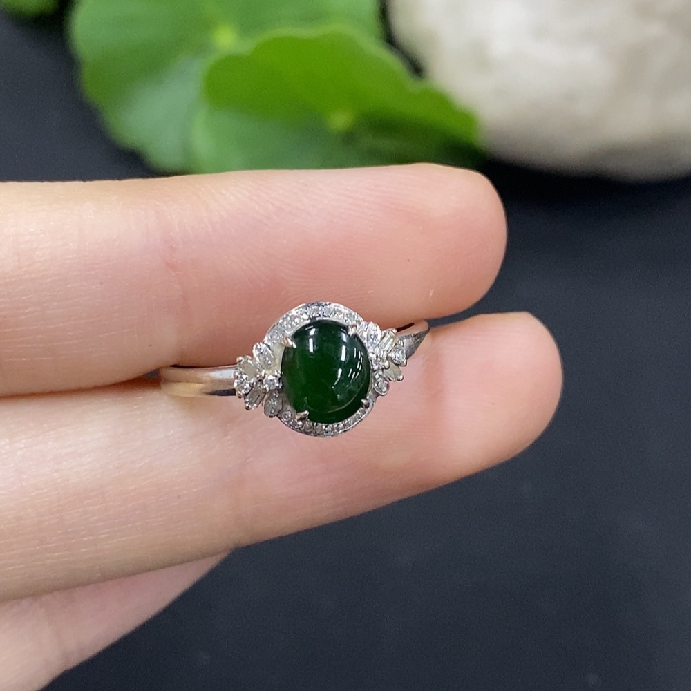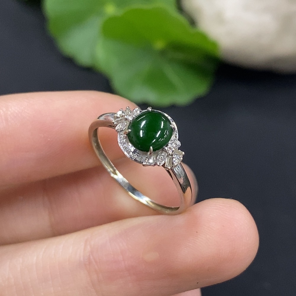 Jadeite Cabochon Ring with 18K Gold and Diamond Accents, Size 14, Total Weight Approximately 1.27g