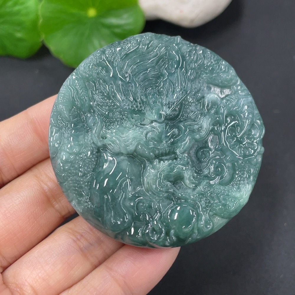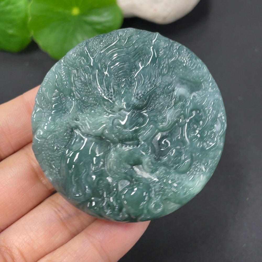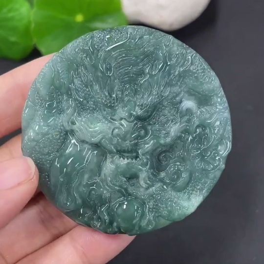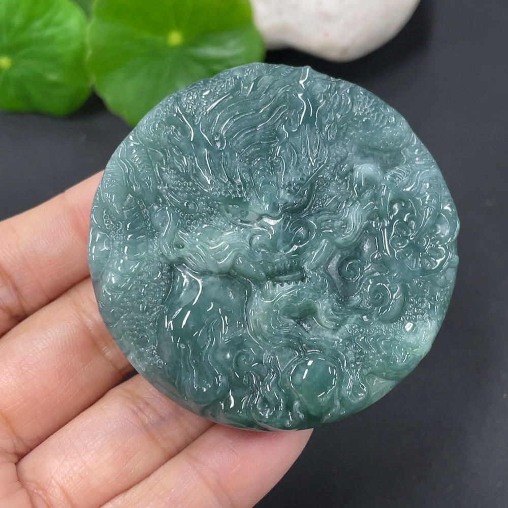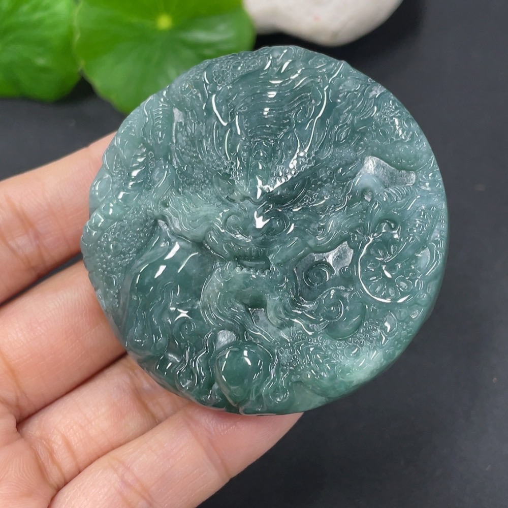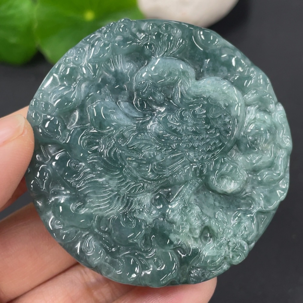 Jadeite Pendant Dragon and Phoenix Bringing Prosperity Total Weight Approx. 60.5g